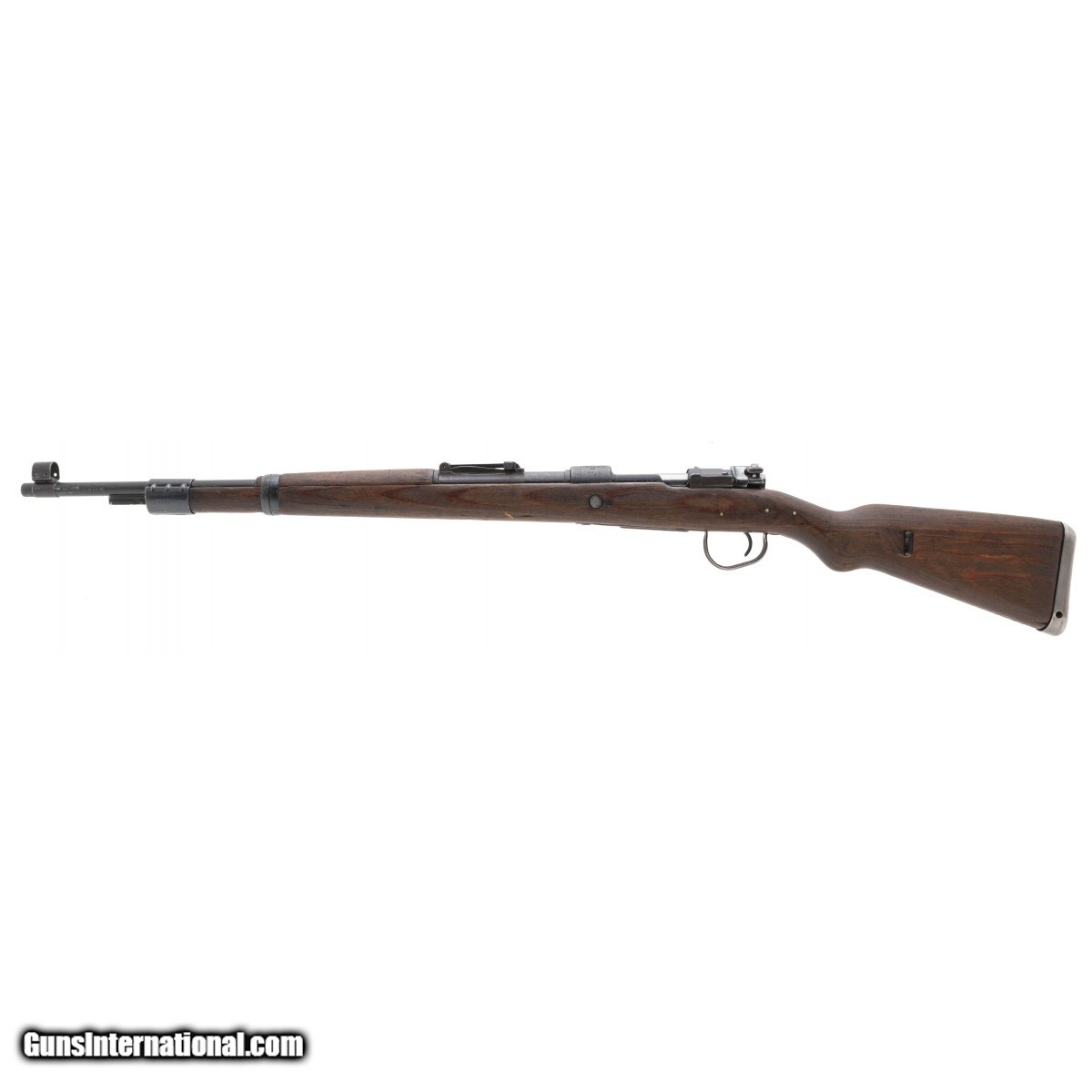 Czechoslovakian Vz.24 rifle that was converted to 7.62x51mm NATO by Israel. Barrel is 24' length and the bore is in good condition. Front side hood in place but cleaning rod is absent. Kriegsmodell stock in good shape with repairs around the recoil lug and brass reinforcing pins around the trigger group. Century import mark on barrel. Overall very good condition.