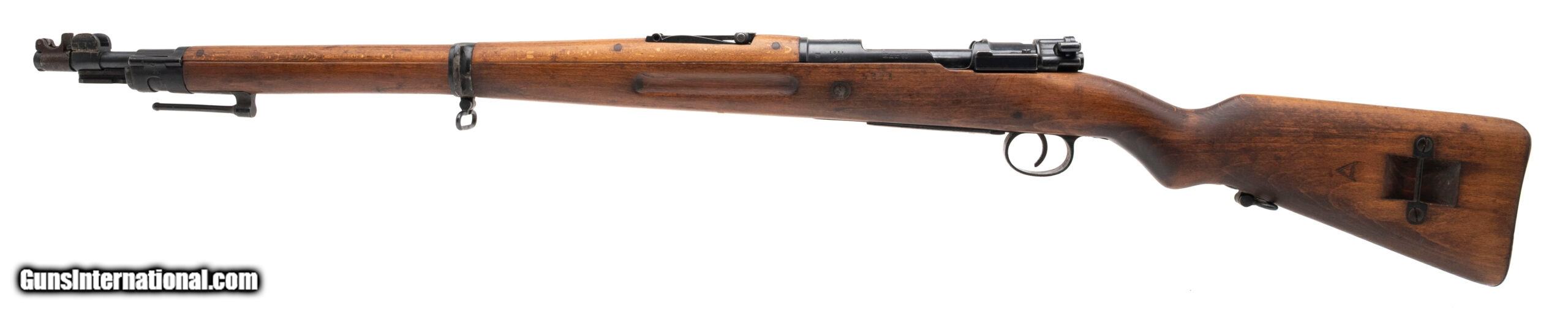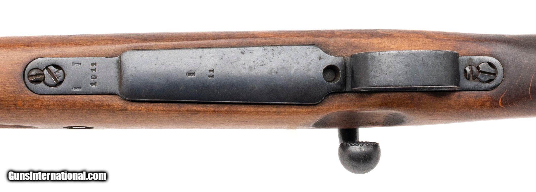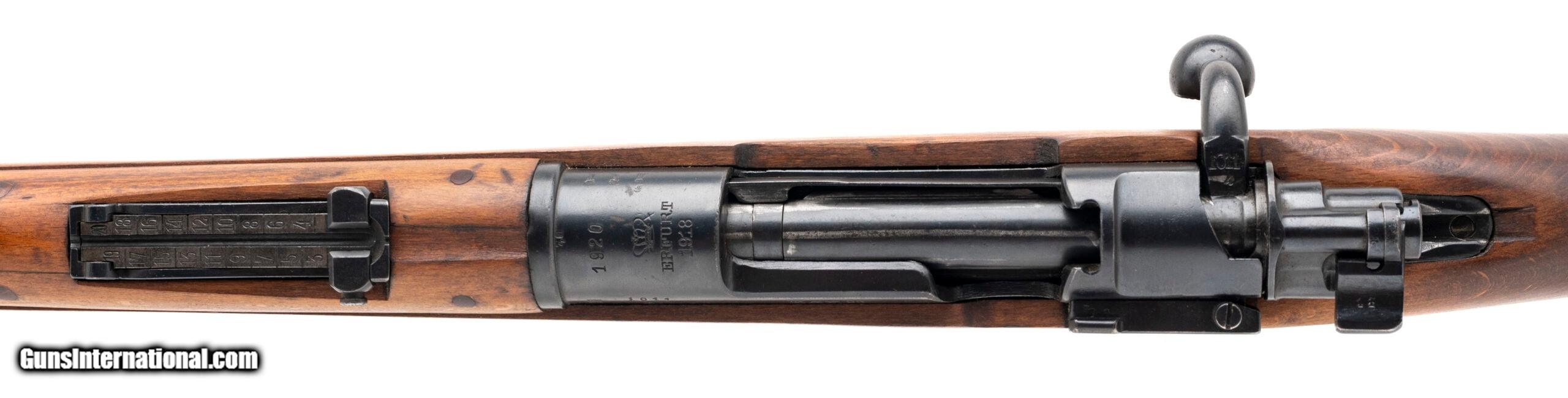 Description: "Serial No. 1011d, manufactured in 1918, 8mm Mauser, 23¾" round barrel. Serial numbers on the bolt and floor plate are matching; the barrel bands and stacking rod are non-matching. Receiver is double-dated “1918 / 1920," the later marking denoting reissue to German military stocks following the Treaty of Versailles. Rifle has been refinished and remains in very good overall condition. Action is smooth and functions correctly. A tidy, historically interesting example of a post-war reissued Erfurt K98, showing both original wartime manufacture and subsequent interwar service modification. Curio/Relic: Yes Price: $1,695.00 Contact Seller |