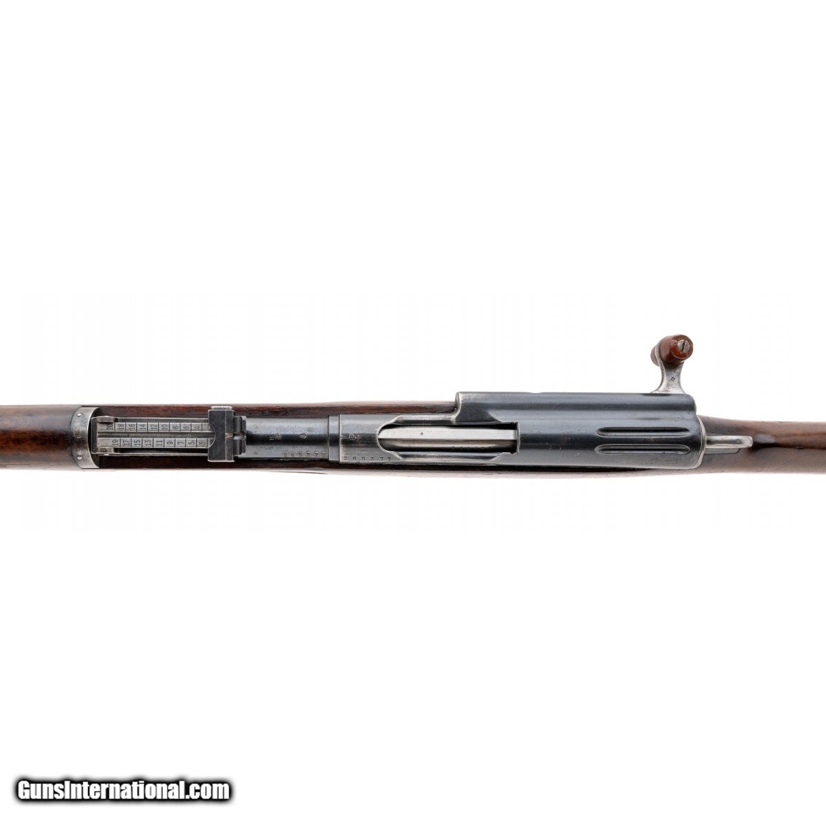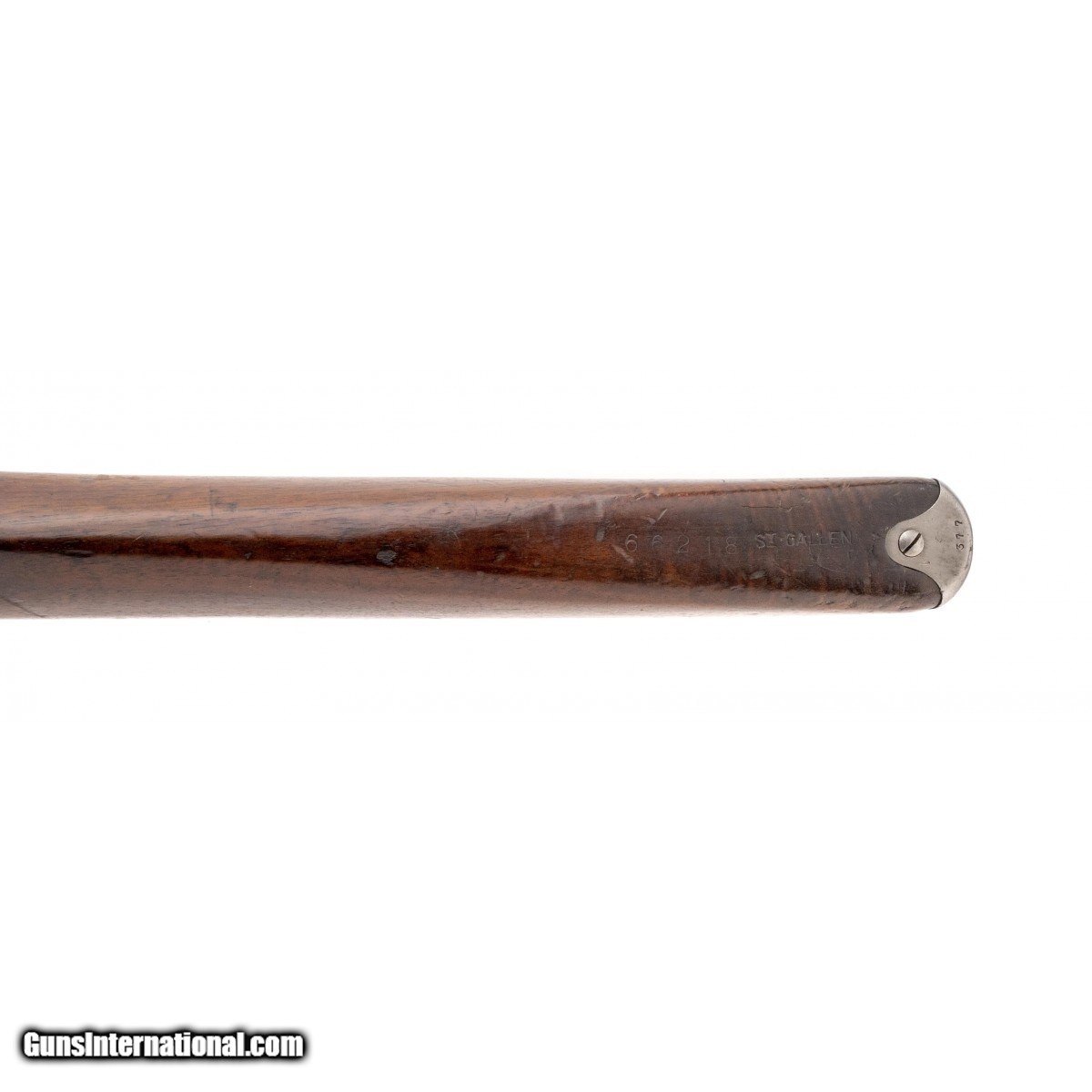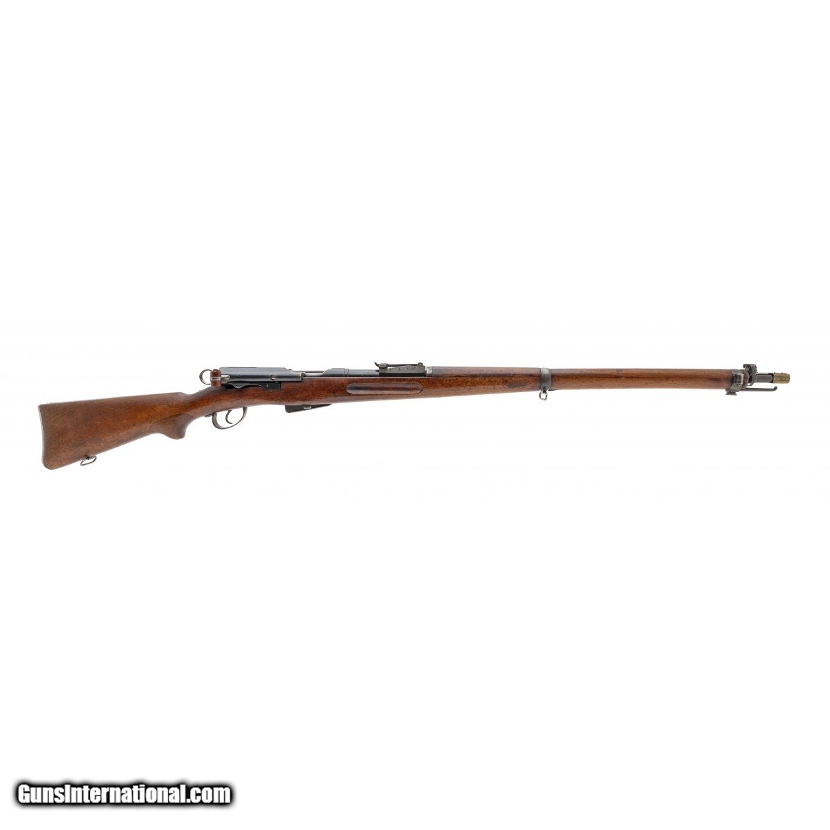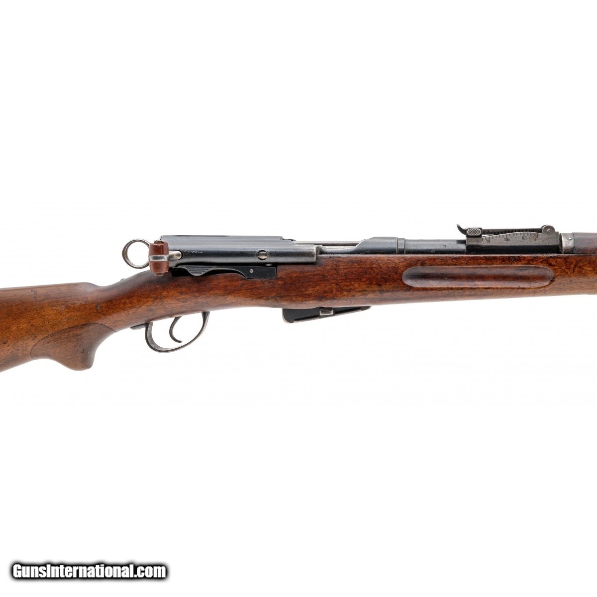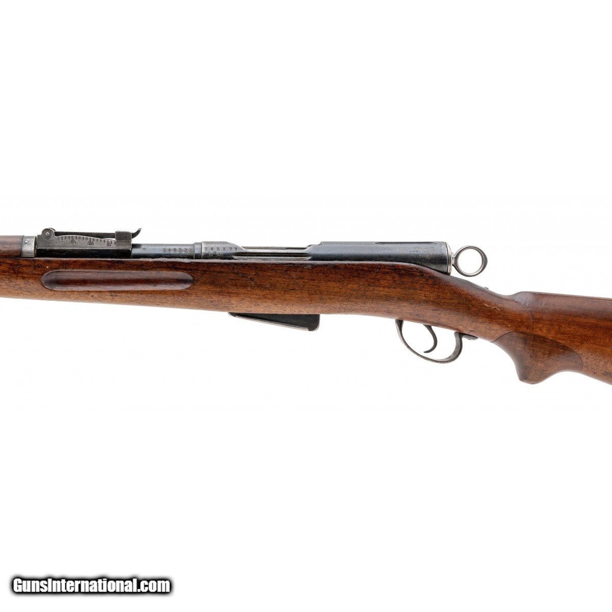 Description: " SN:265377. Manufacture circa 1900, 7.5x55mm with a 30.7"" barrel . Bore is in excellent condition. Swiss made straight pull rifle with adjustable rear sight, wooden stock and detachable magazine. Overall condition is very good. (Consignment) SOLD |