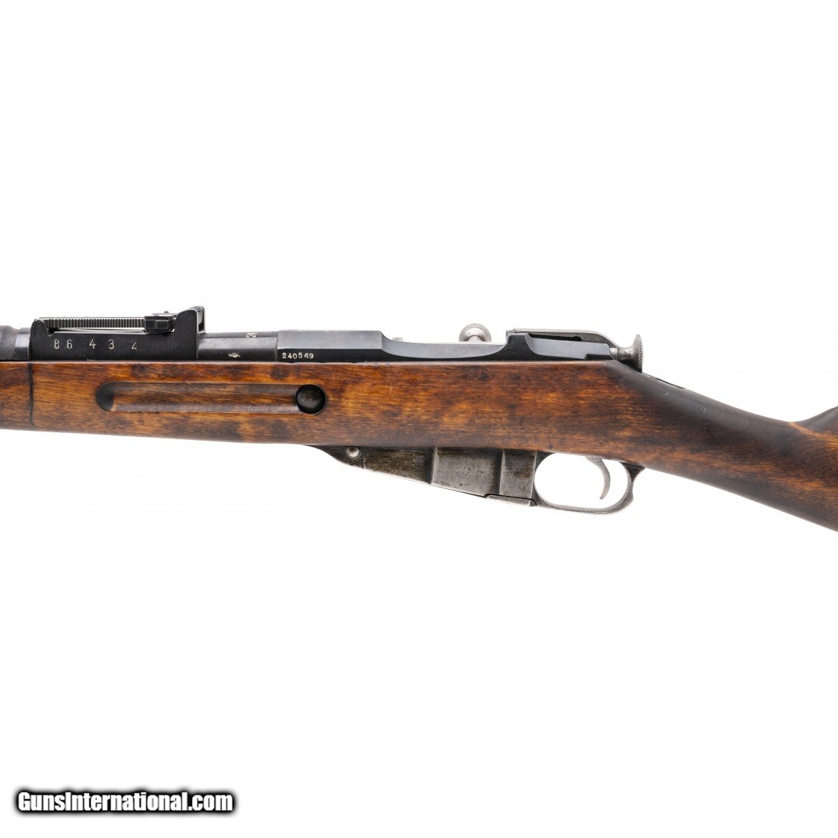 Serial No. 240569, made in 1943, 7.62x54R, 27"" round import marked barrel. Overall very good condition with light wear noted. Bore is bright and shiny with handsome rifling noted. Serial numbers are non-matching, stock has crips cartouche stamped on the right side with light handling wear noted. Action is smooth and functions correctly.