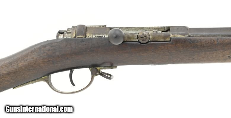 Description: "German Model 71 Mauser rifle made by Amberg Royal Armory. Overall length is approximately 52½". The 33½" round 11mm Mauser barrel has an excellent bore. All the metal has a smooth brown patina. Stock is good with no cracks or chips, and has the nicks and dings to be expected of an issued rifle. All the numbers on the action and receiver match. The action functions correctly. The butt plate tang is unit marked but they are indistinct (B/4*). This is a nice representative Model 71 at a reasonable price. SOLD |
