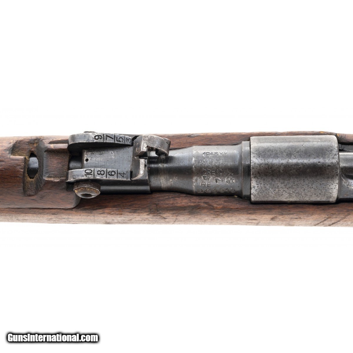 Italian Model 91/41 Carcano rifle made by Armaguerra Cremona in 1943. Barrel is 28' long with a frosty bore that does still have visible rifling. Metal parts in good condition with a consistent patina throughout and wood is also in good condition with handling marks and scuffs. Overall good/serviceable condition.