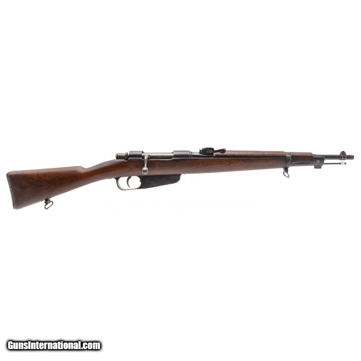 Description: " Serial No. 11916, made in 1929, 6.5 carcano, 18"" round barrel. Bore is bright and shiny with strong rifling. Original finish is starting to thin and turn to a grey patina. Serial numbers that are marked are matching. Stock is very good with usage wear noted. Upper handguard is slightly loose. Action is smooth and functions correctly. SOLD Curio/Relic: Yes |