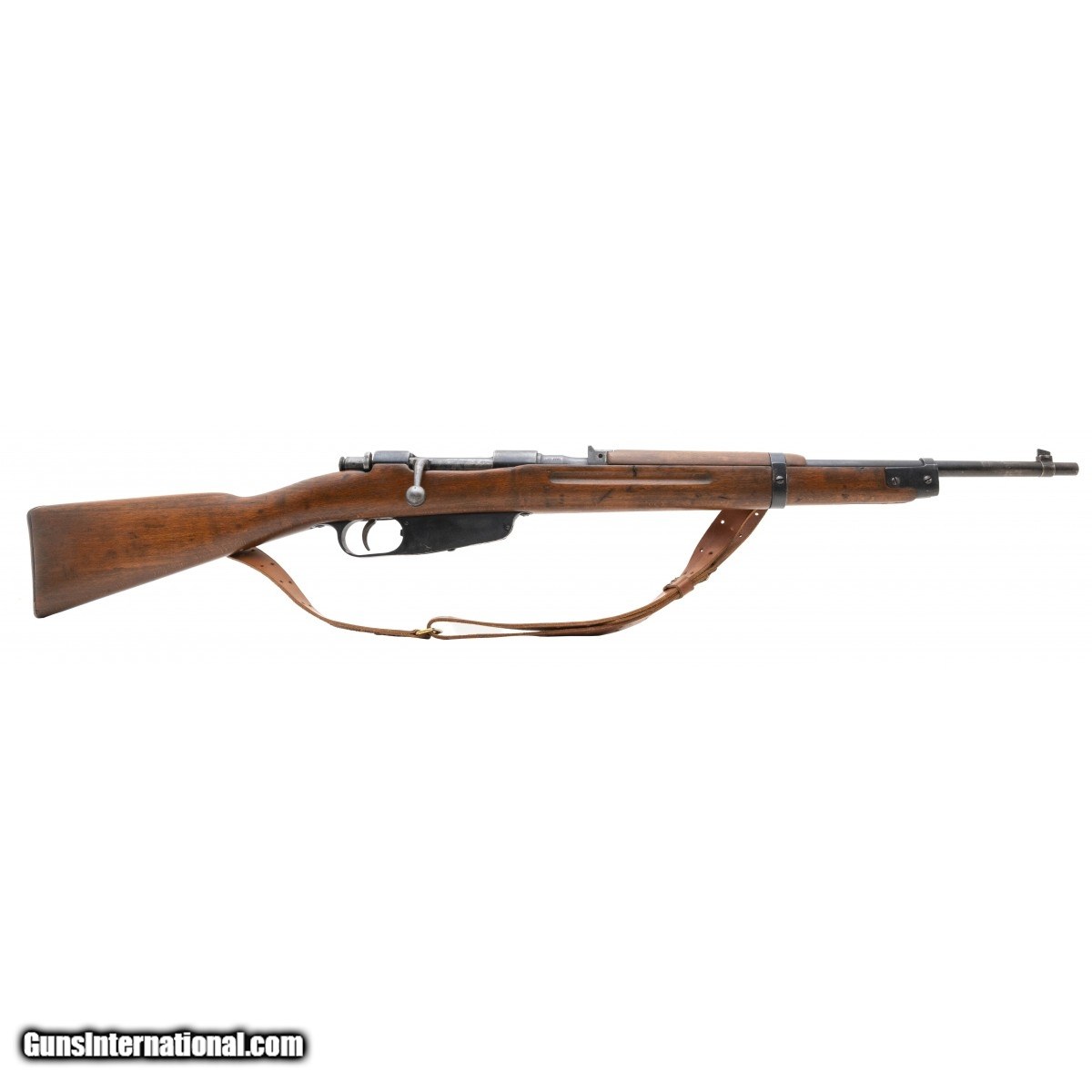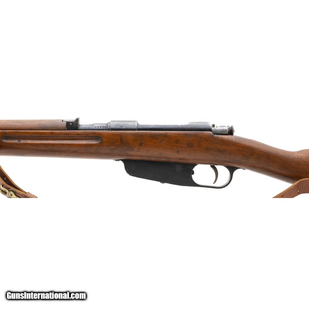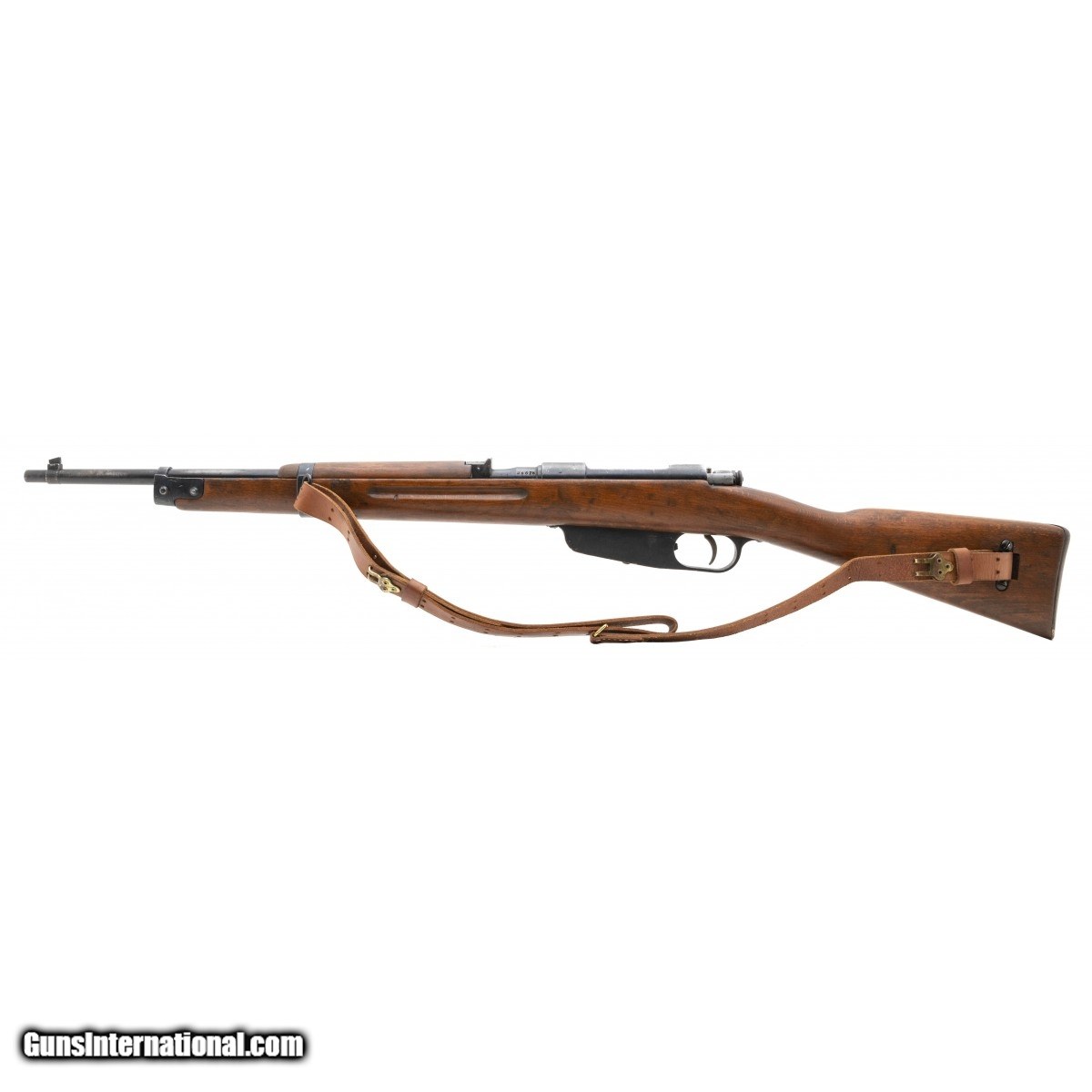 Italian 1891/38 Carcano carbine chambered for the 7.35x51 cartridge that was made by Terni Arsenal in 1939. Barrel is 22' length with an excellent bore. Comes with a leather sling and cleaning kit in the buttstock. Finnish import mark present. Gun is in overall good+ condition with handling marks in the wood.