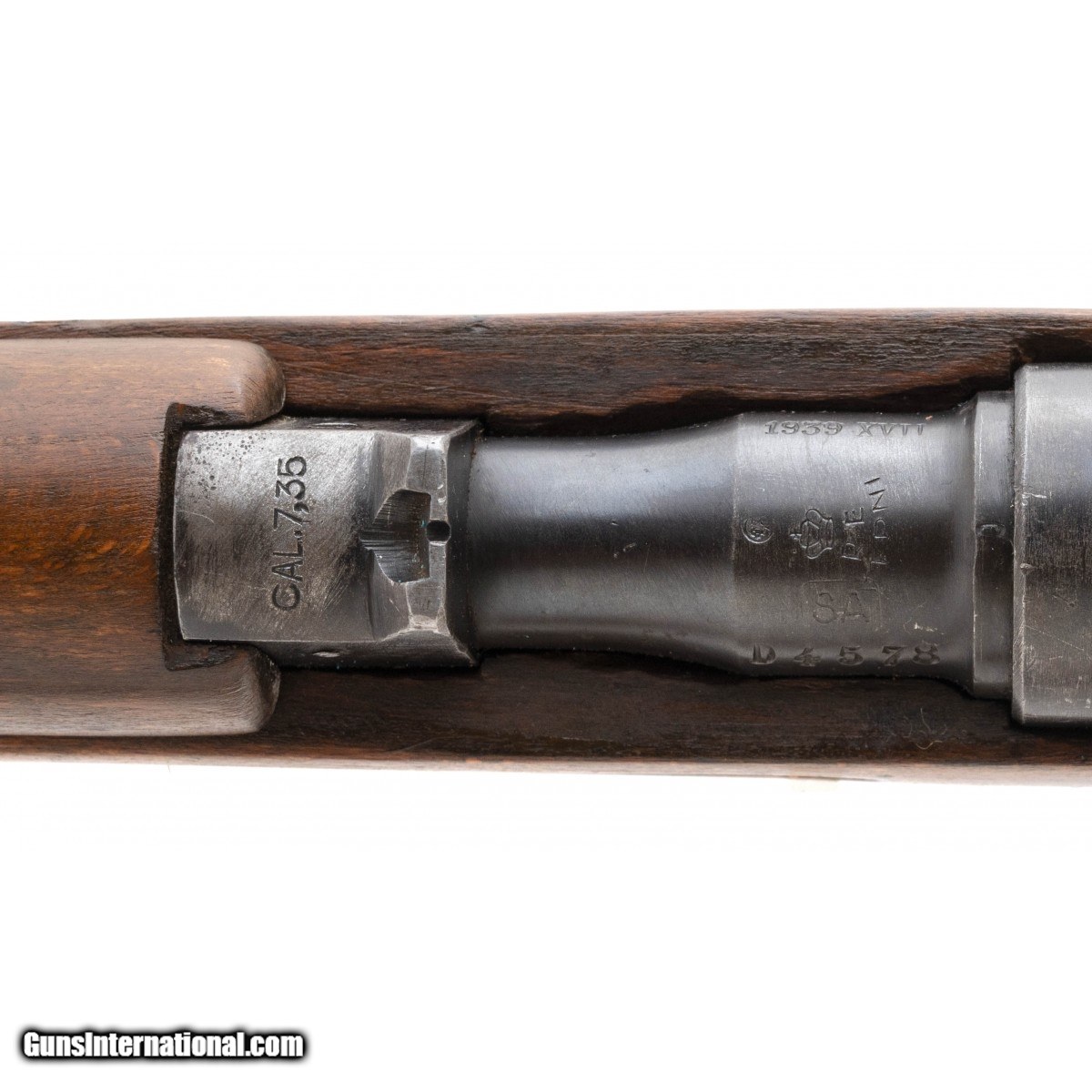 Description: " Italian 1891/38 Carcano carbine chambered for the 7.35x51 cartridge that was made by Terni Arsenal in 1939. Barrel is 22' length with an excellent bore. Comes with a leather sling and cleaning kit in the buttstock. Finnish import mark present. Gun is in overall good+ condition with handling marks in the wood. SOLD |
