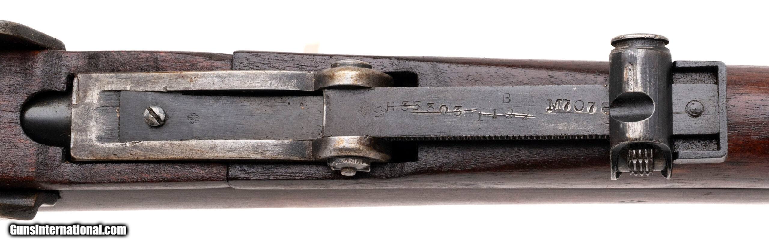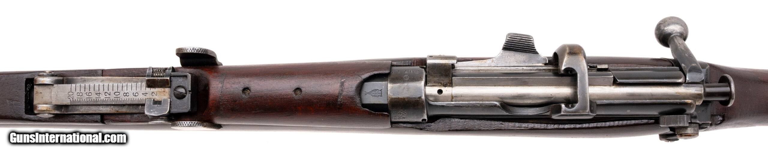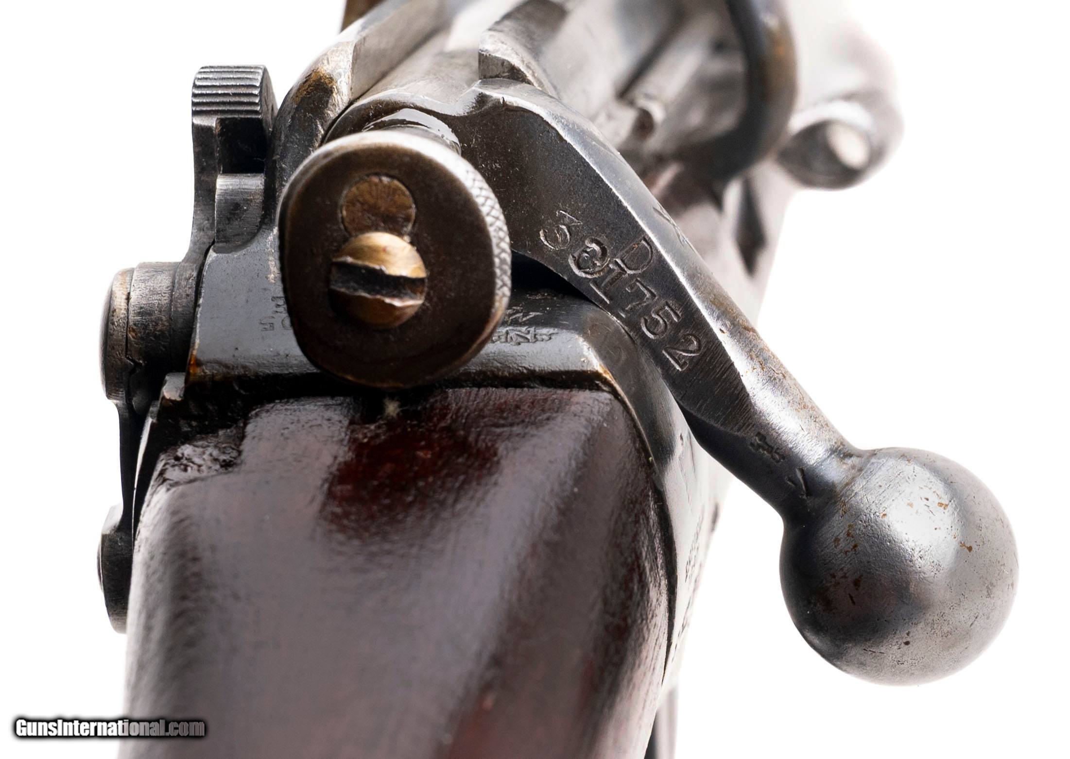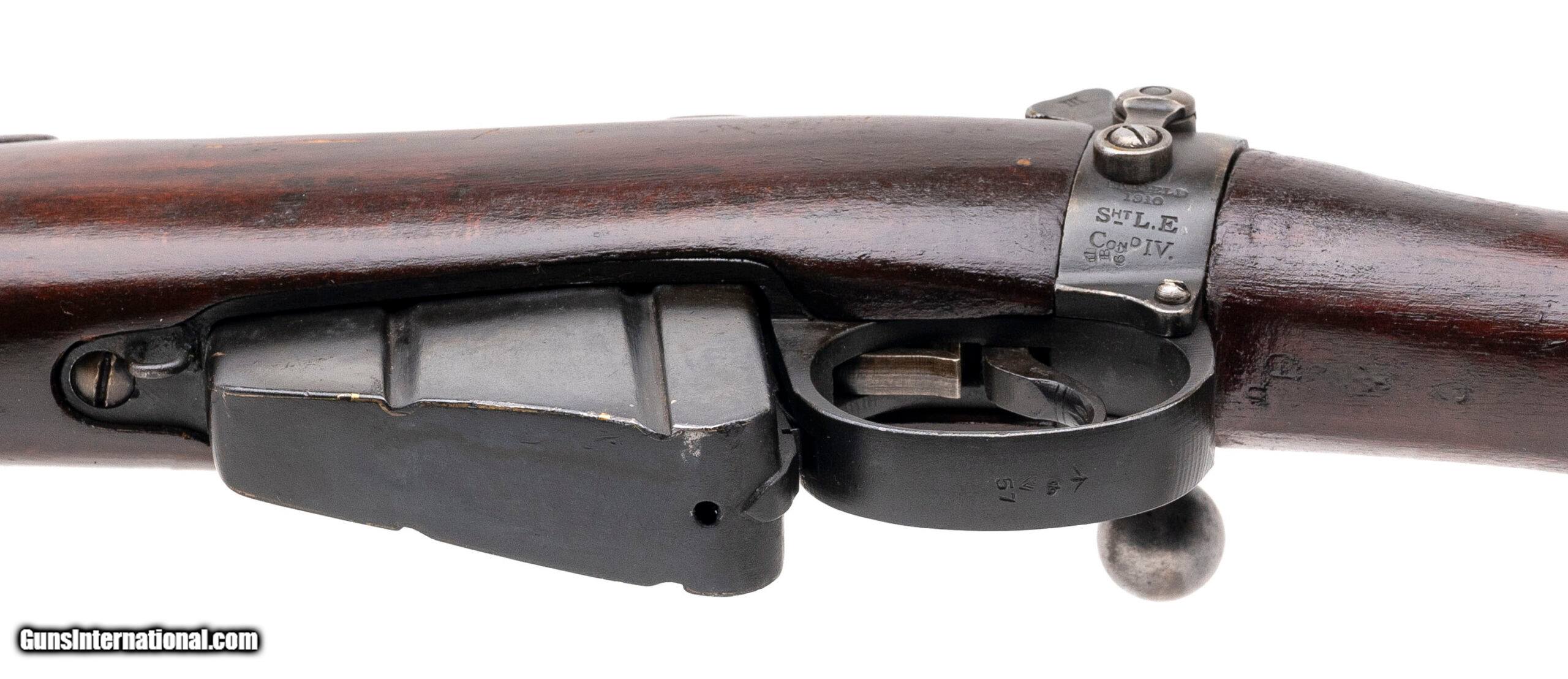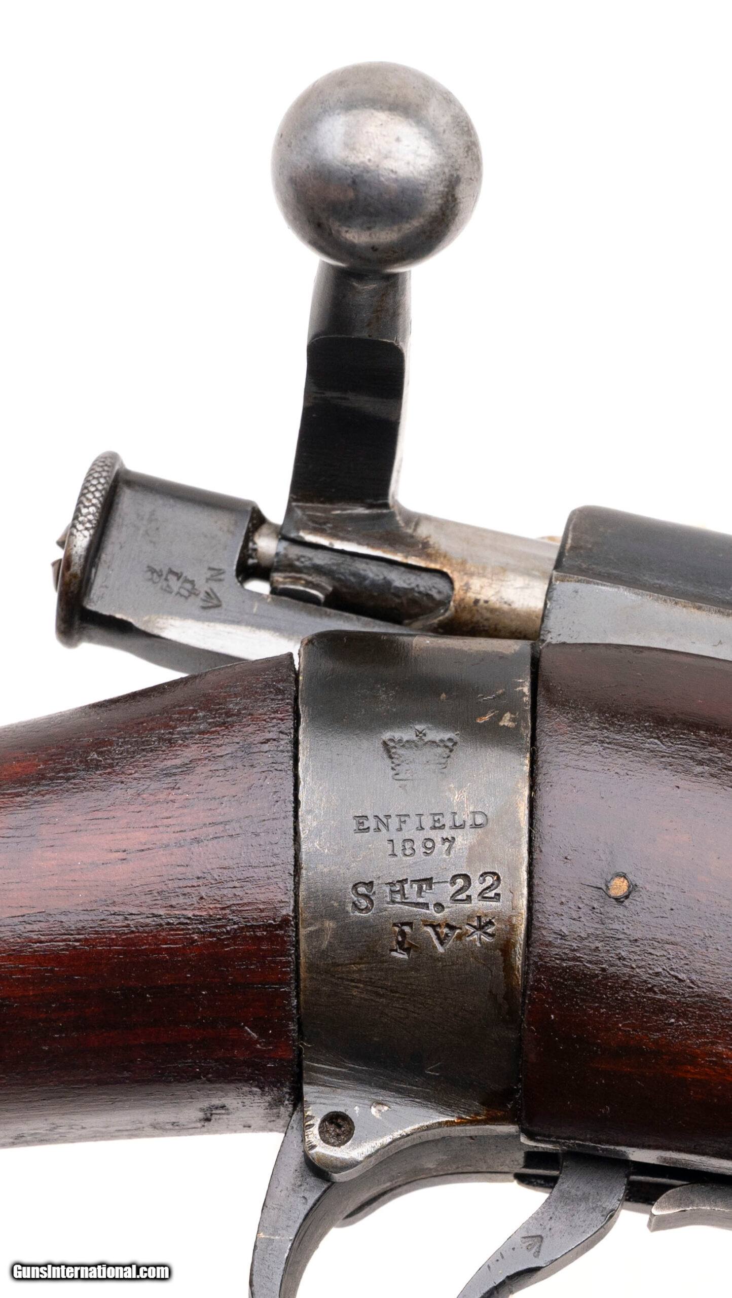 Description: "Serial No. D31752, originally manufactured by Enfield in 1897, later converted to S.M.L.E. configuration in 1910, and ultimately rebuilt as a .22 caliber training rifle by B.S.A. Co. prior to the Second World War. Chambered in .22 LR with a 25" round barrel, this rifle reflects the multi-stage evolution typical of British small-arms development as military forces transitioned older long-rifle patterns into specialized training arms. The rifle remains in very good overall condition with matching serial numbers and an excellent bore that retains sharp, clean rifling—indicative of limited and careful instructional use. The stock shows light handling impressions consistent with service as a training rifle rather than front-line deployment. Markings on the socket cup and receiver are clear and historically significant: the right-side reads “Crown / Enfield / 1897 / SHT.22 / IV*," while the left side is marked “Enfield / 1910 / Sht L.E. / COND IV." The receiver bears the B.S.A. logo, confirming its final conversion to .22 training configuration. Magazine internals have been removed as designed for this model, and the action is smooth and functions correctly. Price: $1,995.00 Contact Seller |
