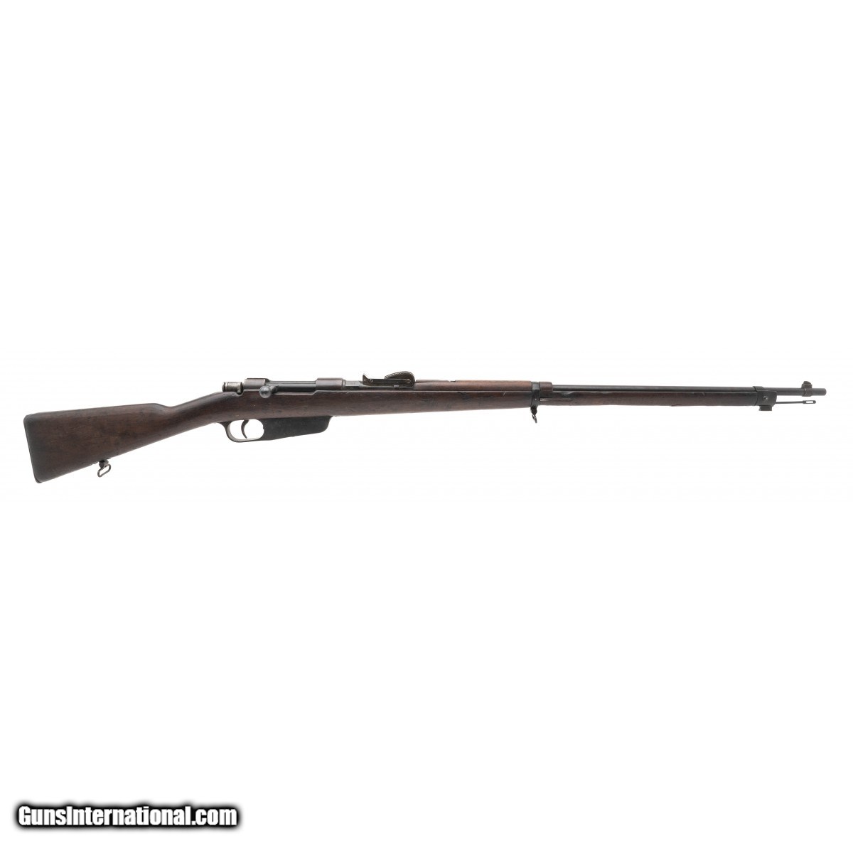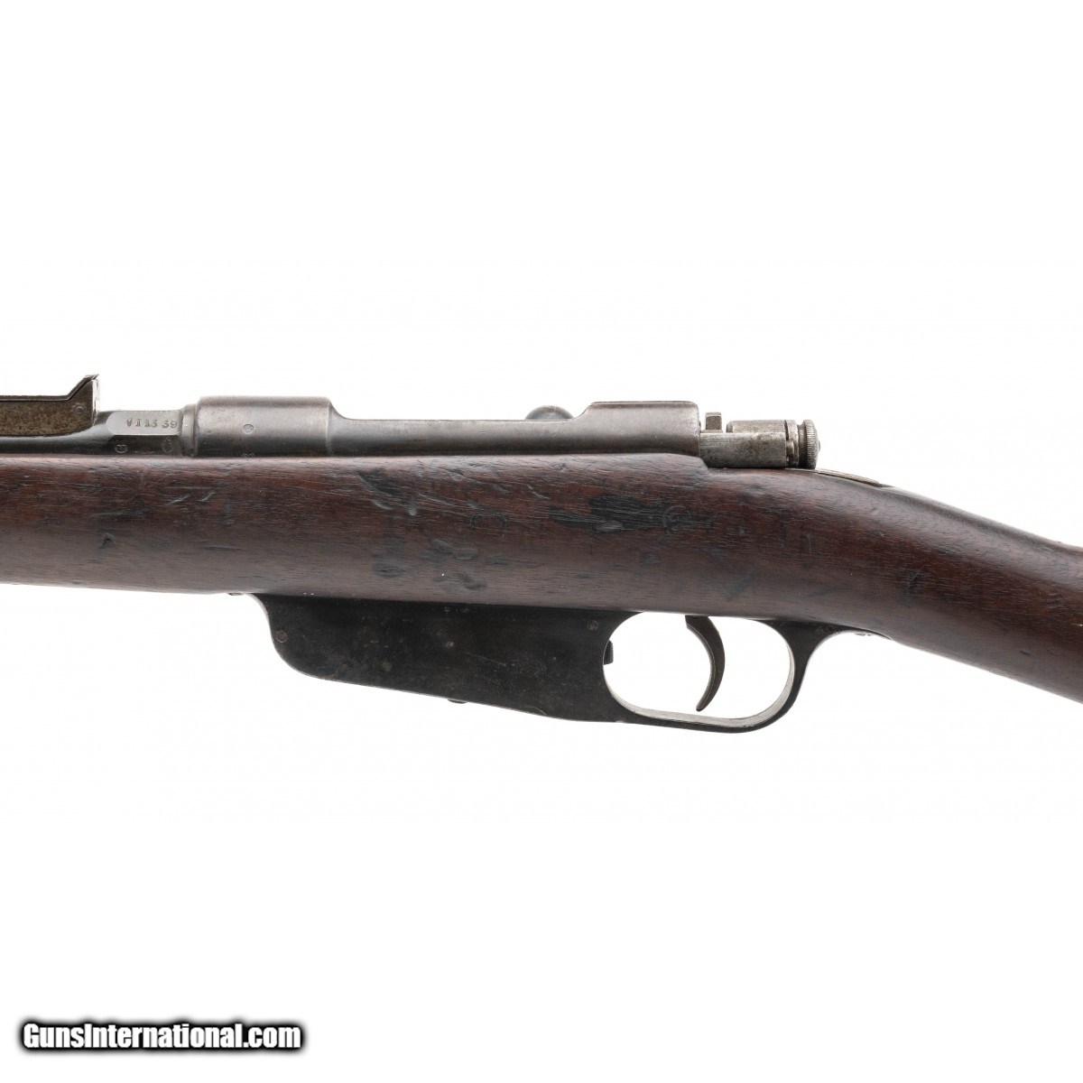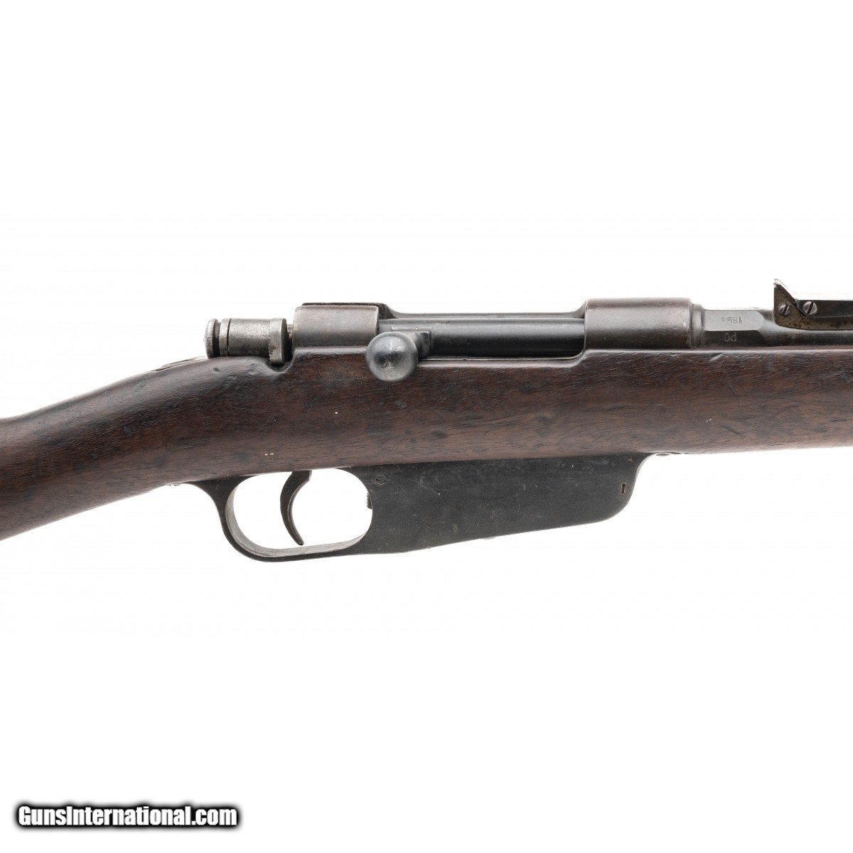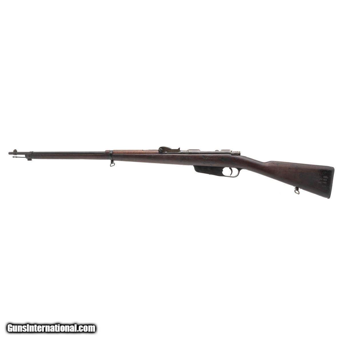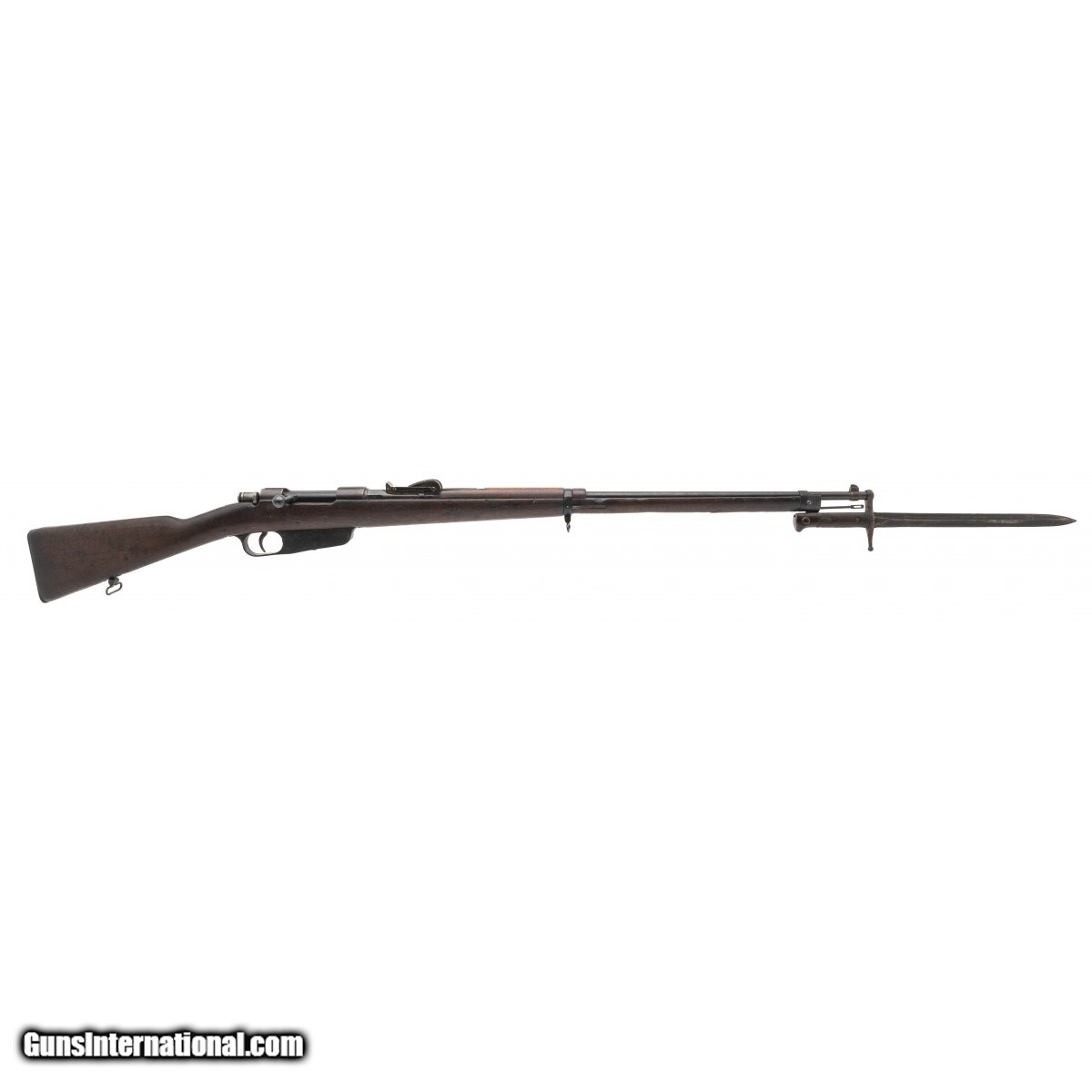 SN: VI1339. Made by the Torino Arsenal in 1894 with a 31.5-inch barrel that is chambered for the 6.5x52mm rifle cartridge. Overall good condition with a light patina across all metal parts. The stock has an abundance of the kind of dents & dings one would expect out of a military service rifle that survived a couple of wars, but it is otherwise solid & serviceable. The original handguard was replaced during a service life extension program arsenal rebuild & the receiver is marked ""TUBATA"" which means that it was re-sleeved using the Salerno process during the same rebuild. Rear sight assembly can still be adjusted for battle sight & adjust sight range. Comes with a 16-inch Model 1891 bayonet in fair condition with metal scabbard. This is an overall good example of a World War I-era 1891 Carcano rifle.
