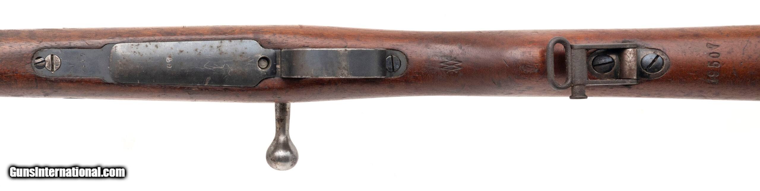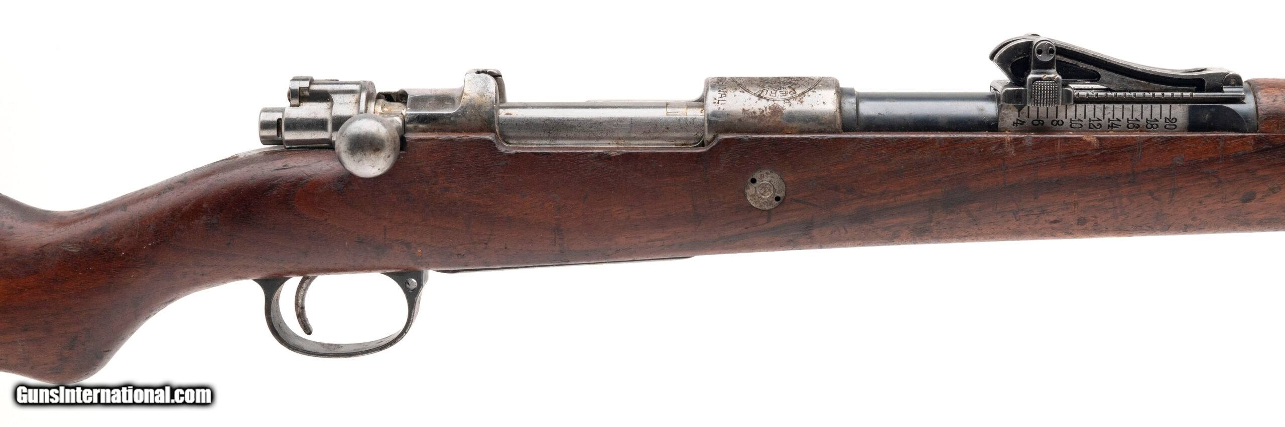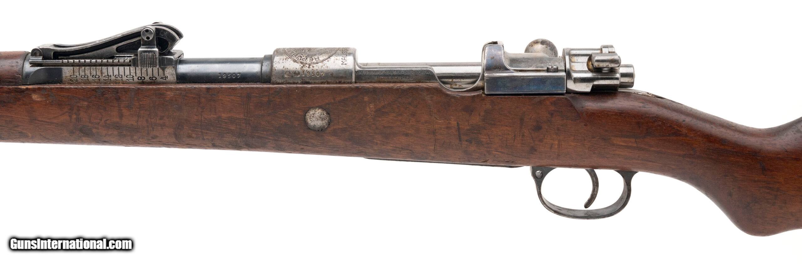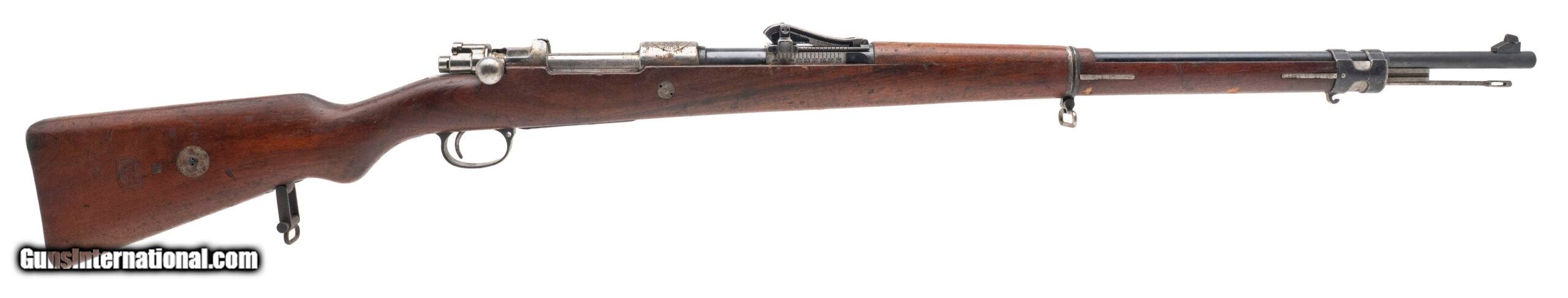 Description: "Serial No. 19507, manufactured circa 1910–1914, 7.65x53mm, 28.5" round barrel. This Peruvian M1909 Mauser is a licensed copy of the German Gewehr 98, produced by Mauser Oberndorf specifically for the Peruvian military. The receiver is crisply marked ""Republica del Peru"" over the Peruvian crest, followed by ""Mauser Original"", a hallmark of its early contract origin. All visible serial numbers are matching, with light surface oxidation noted on the receiver. The blued finish has aged gracefully, showing an even tone. The hardwood stock shows expected light handling impressions but remains structurally sound and well-preserved. The action is smooth and functions correctly. This is a fine representative of South American Mauser exports of early 20th-century military arms. Curio/Relic: Yes Price: $1,195.00 Contact Seller |
