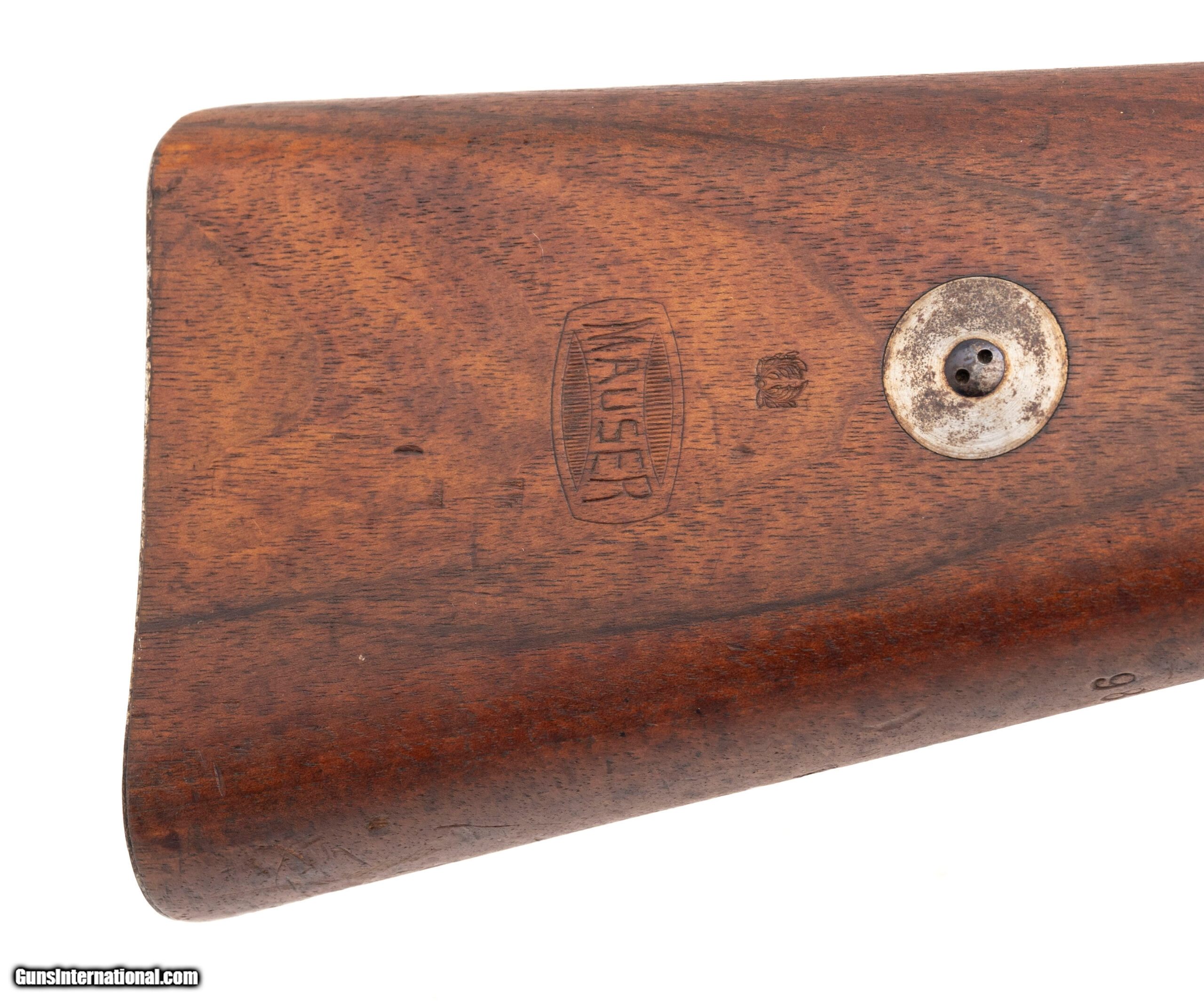 Description: "Serial No. 9864, manufactured circa 1910–1914, 7.65x53mm, 28.5" round barrel. This Peruvian M1909 Mauser is a licensed copy of the German Gewehr 98, produced by Mauser Oberndorf specifically for the Peruvian military. The receiver is crisply marked ""Republica del Peru"" over the Peruvian crest, followed by ""Mauser Original"", a hallmark of its early contract origin. Serial numbers are matching except for the bolt, with light surface oxidation noted on the receiver. The blued finish is starting to thin, showing an even tone. The hardwood stock shows expected light handling impressions but remains structurally sound and well-preserved with a handsome Mauser cartouche visible. The action is smooth and functions correctly. This is a fine representative of South American Mauser exports of early 20th-century military arms. Curio/Relic: Yes Price: $1,295.00 Contact Seller |