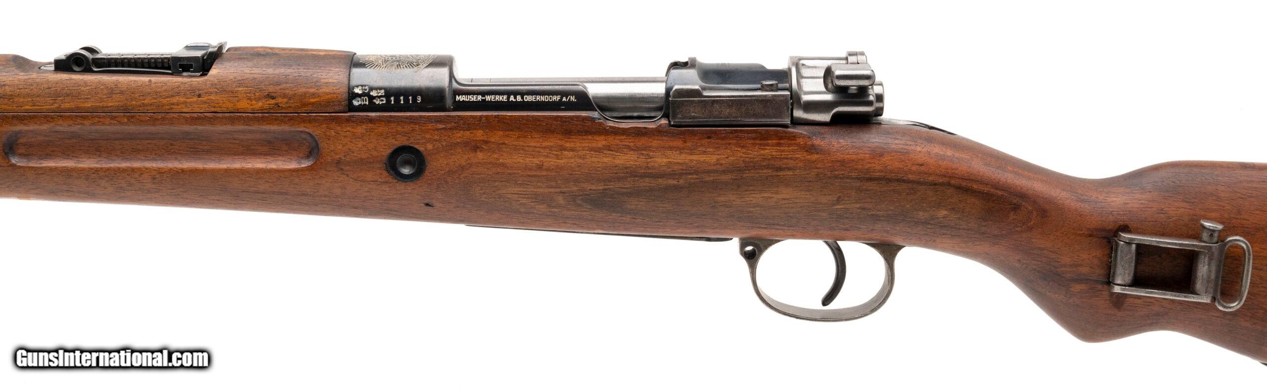 Description: "Serial No. 1119, made in 1935, chambered in 7x57mm, with a 22" round barrel. Metal surfaces show a transition to a light grey patina, while the receiver retains its vibrant blued finish and features a clearly visible Brazilian crest. Serial numbers are matching throughout. The stock is very good with minimal handling marks. Action is smooth and functions correctly. A fine example of an interwar South American contract Mauser, built to high German standards. Roughly only 1,000 of these were made. Curio/Relic: Yes Price: $1,295.00 Contact Seller |