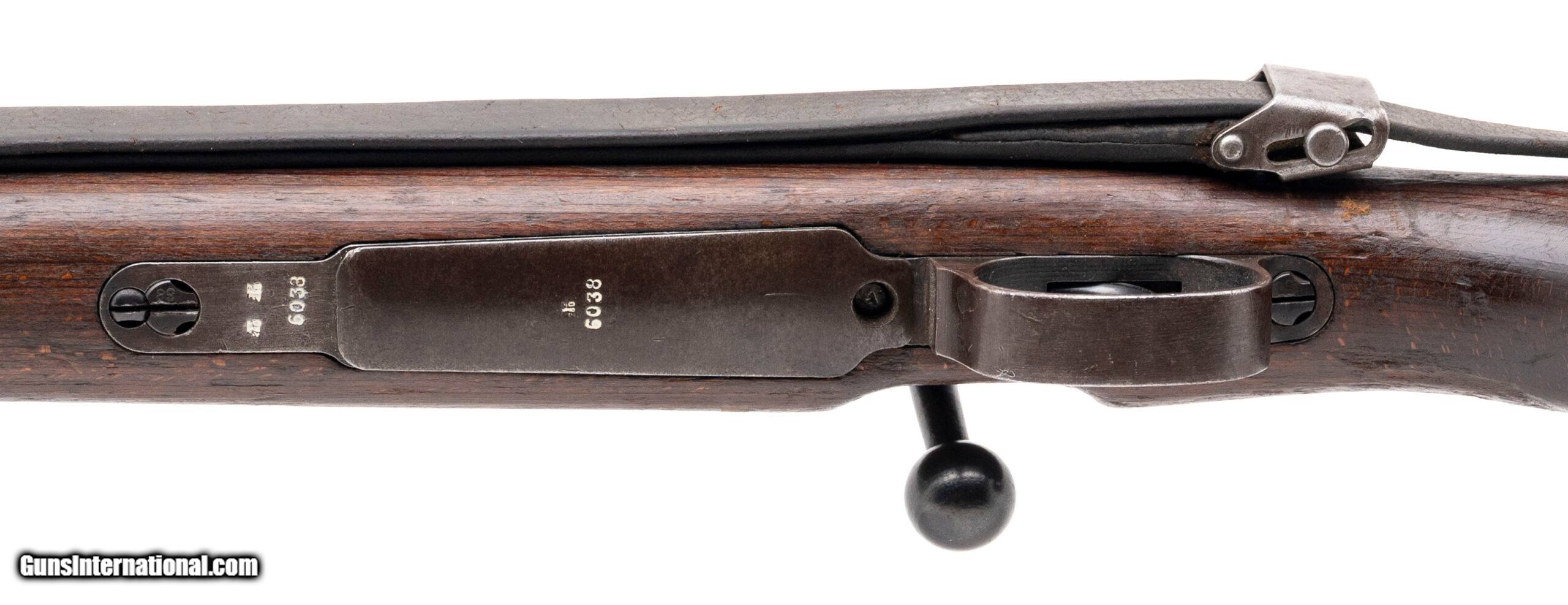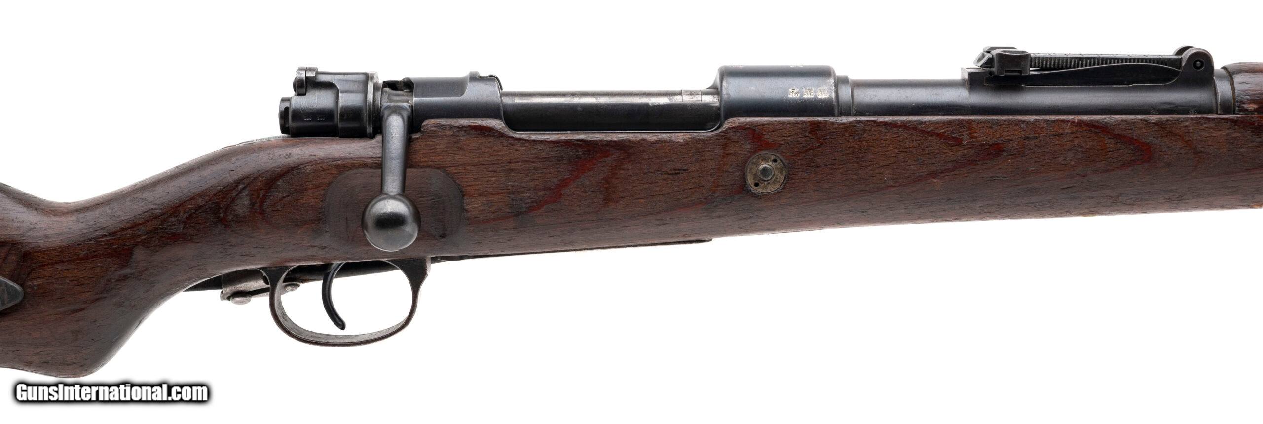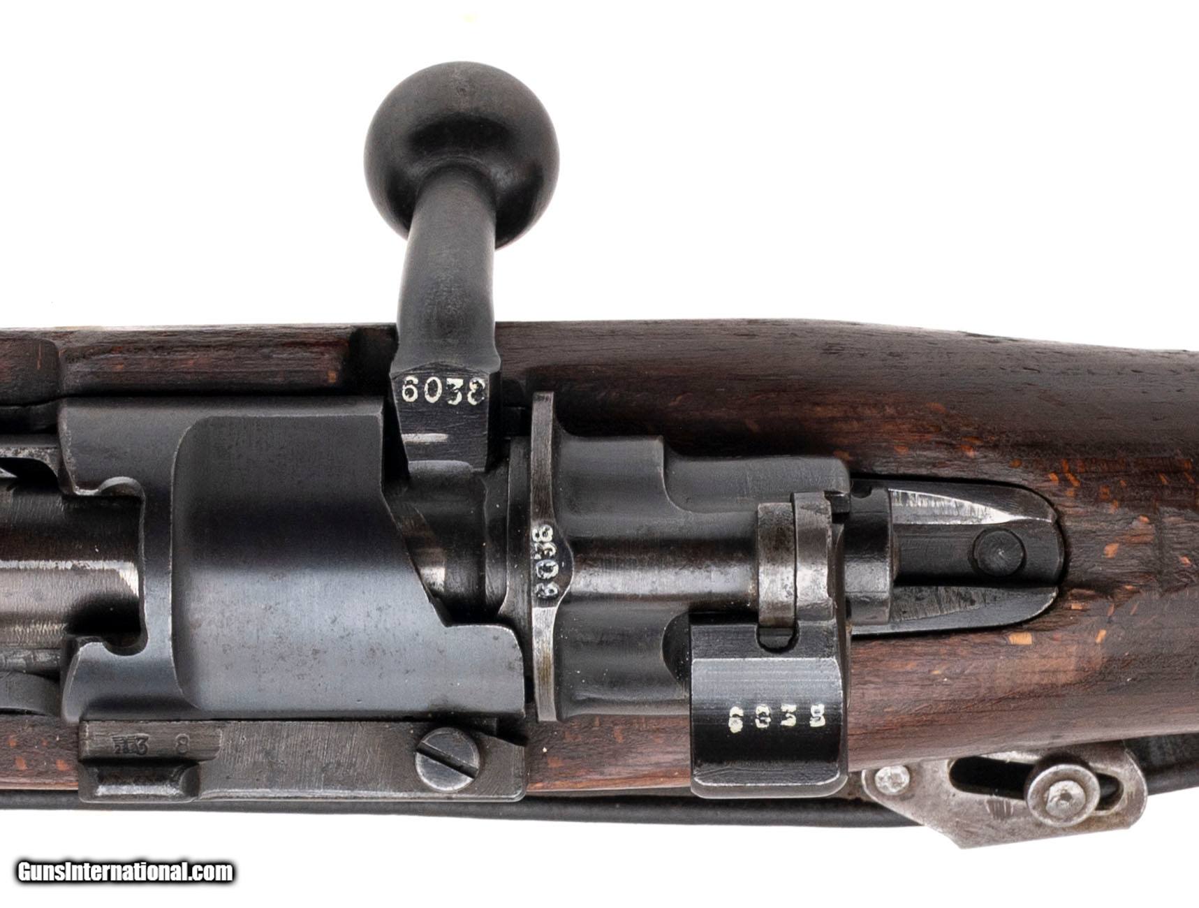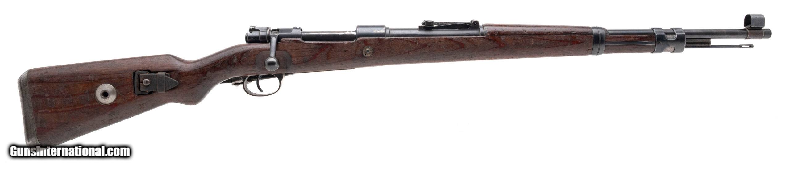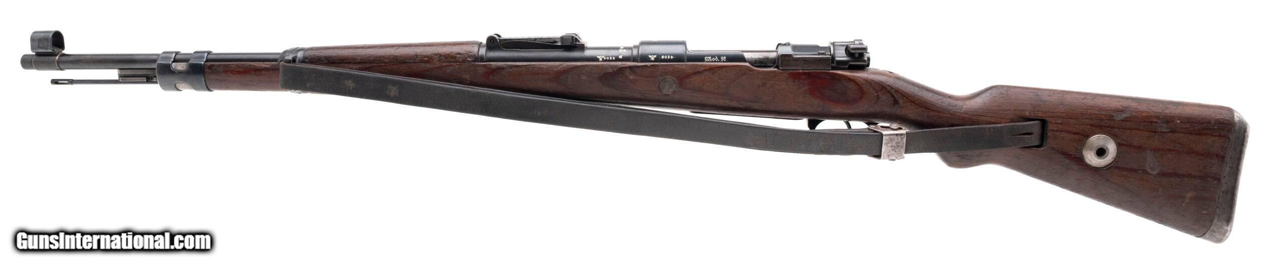 Description: "Serial No. 6038, manufactured in 1941, 8mm, 24" round barrel. Rifle remains in very good overall condition, with matching serial numbers throughout. The original blue finish is beginning to thin to a brown/plum patina, primarily along the barrel and high edges, while factory markings and Waffenamts remain sharp and well-defined. The hardwood stock is in excellent structural condition, displaying light handling impressions and visible cartouches, consistent with careful wartime service use. Action is smooth and functions correctly. Rifle comes with its original stock. A handsome and desirable example of an “AX 41" code Mauser K98, manufactured by Erma (Erfurter Maschinenfabrik) during the early years of WWII production, before production switched to MP40’s Curio/Relic: Yes Price: $3,295.00 Contact Seller |