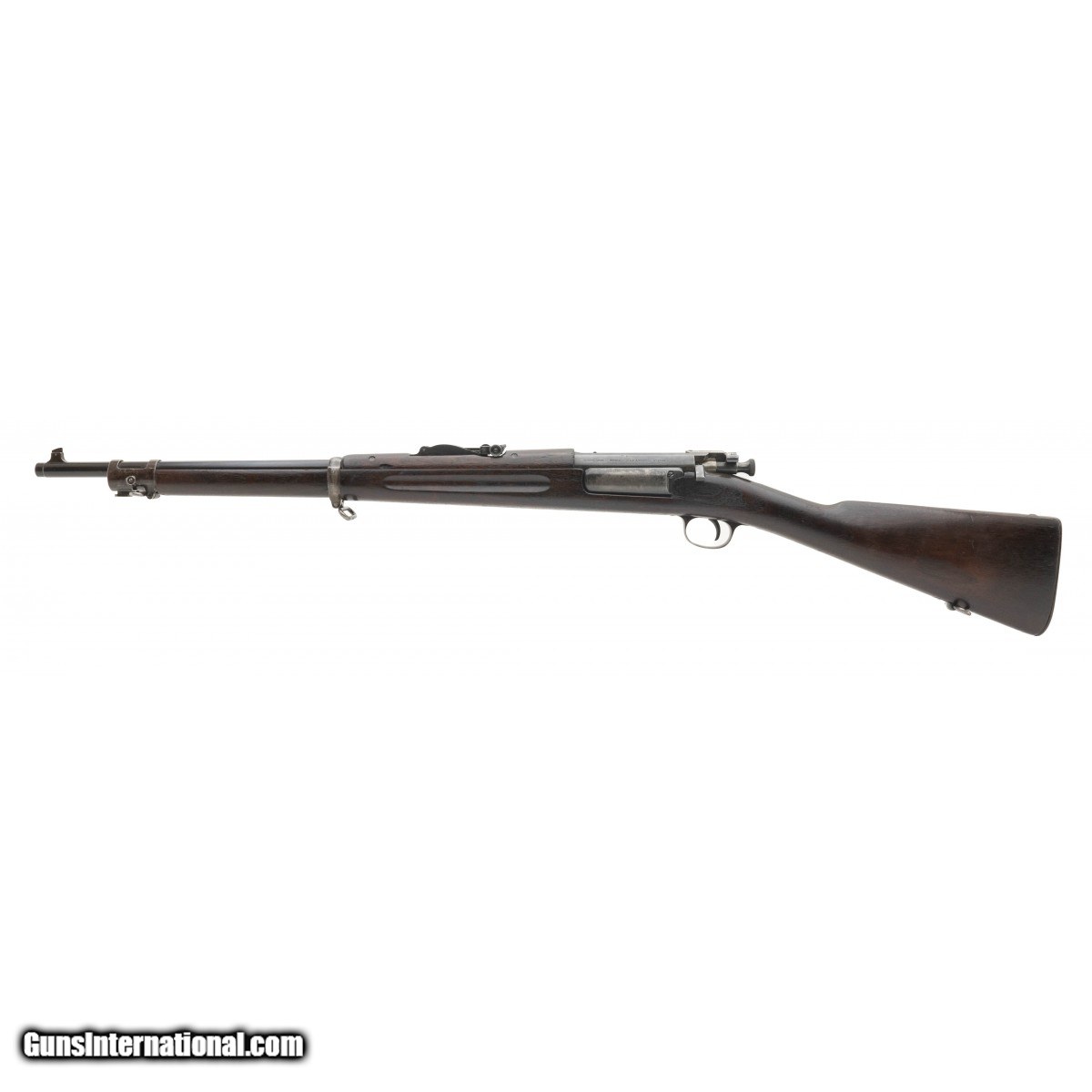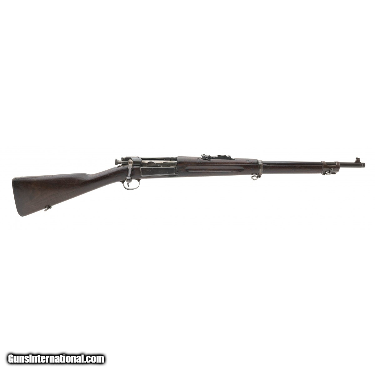 Description: " The Springfield, Manila, and Rock Island Arsenals altered approx. 8,000 30 U.S. caliber (30-40) Krag carbines (mostly 1899 Models like this one) to Constabulary configuration between 1906 and 1916. In addition to the Philippine Constabulary, these interesting guns were supplied to ROTC and other school units. The alteration consisted of placing the carbine in a shortened (by 8"") Model 1898 rifle stock (which had to have the lightening cut in the barrel channel filled and the forend worked down for the front band), turning the carbine muzzle down to fit the Krag or Model 1905 bayonet, and reforming the front band to properly fit the barrel. This Krag Philippine Constabulary carbine is one of the very desirable ones that was altered by the Springfield Armory as evidenced by the very nice J.F.C. stock cartouche. It has a correctly altered stock, muzzle, and front band and is equipped with the Model 1902 rear sight. The rods and oiler are in the butt. The bore is excellent with bright, strong rifling. The metal is a pleasing blue-brown overall. The stock is fine with very light issue dents and dings, a strong cartouche, and no chips or cracks. The firing proof is light but visible. The action functions correctly. This is one of the nicest Phillipine Constabulary Krag carbines we have seen, especially for a Springfield-altered gun. Don't miss it! SOLD Curio/Relic: Yes |