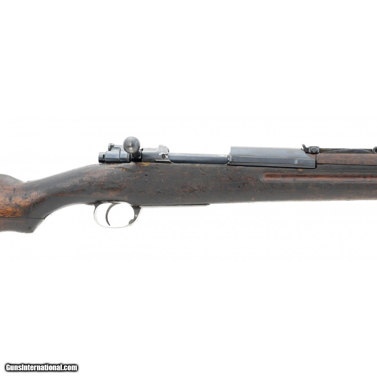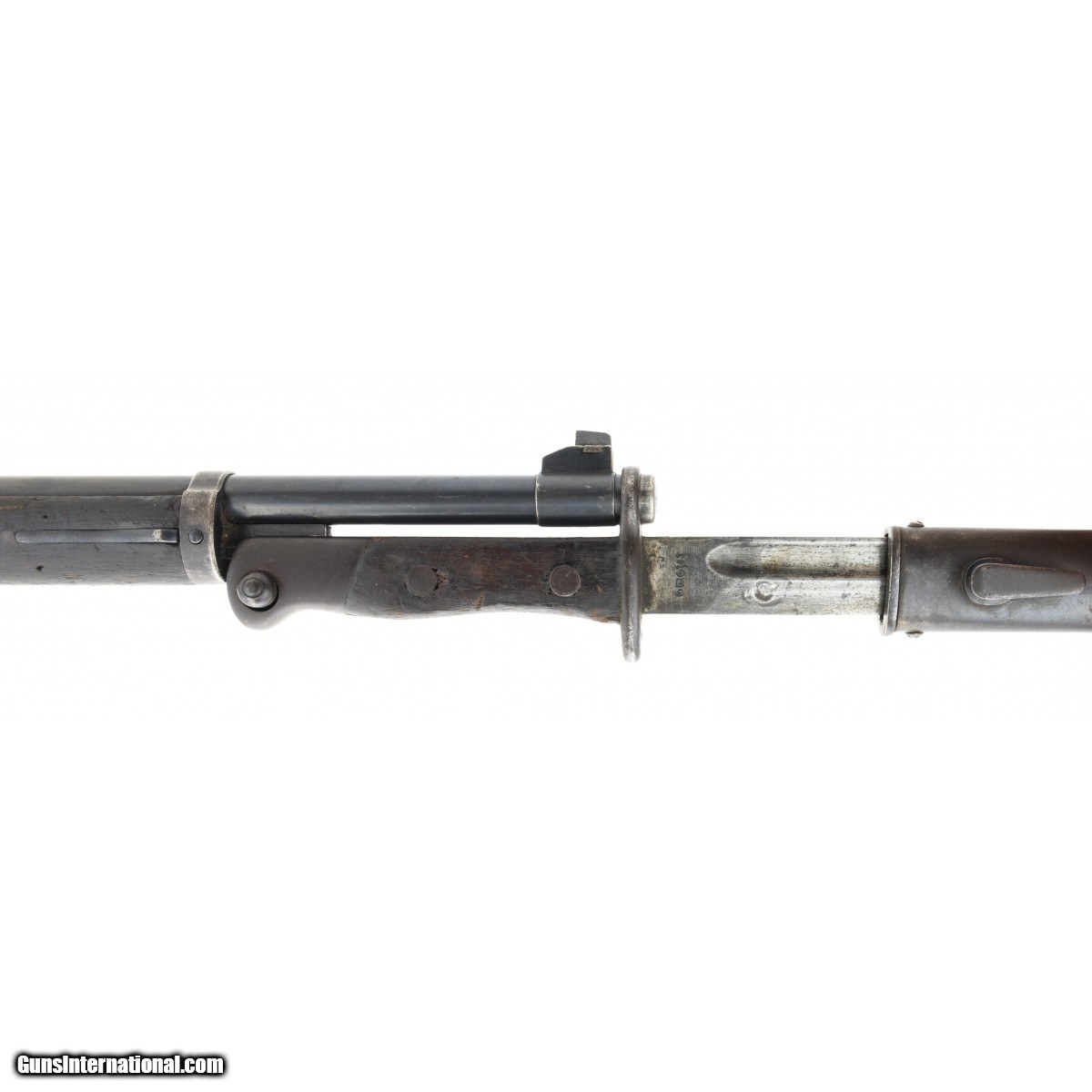 Description: " Thai contract military rifle made by the Kokura Arsenal. Rifle has the arsenal conversion to 8mmX52R caliber. Bore has strong rifling with frosting. Stock has ""combat wear"". Good overall condition with bayonet. SOLD Curio/Relic: Yes |