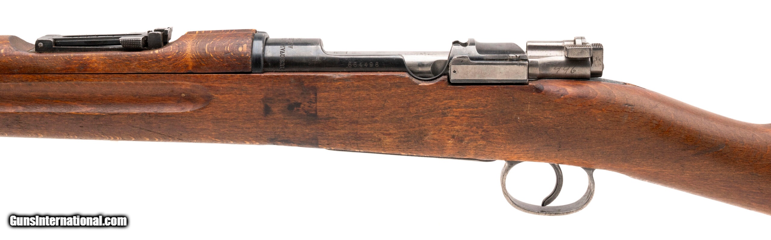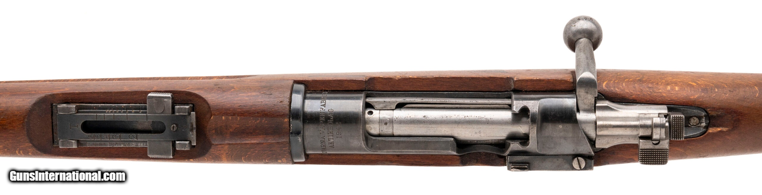 Description: "Serial No. 664496, made in 1942. Chambered in 6.5x55mm with a 24" round barrel that is threaded at the muzzle and import marked. Bore is bright and shiny with strong rifling. Metal has started to thin to a light grey patina. Bolt is matching to the receiver. Receiver markings are sharp. Stock shows minimal handling and storage marks. Action is smooth and functions properly. SOLD Curio/Relic: Yes |