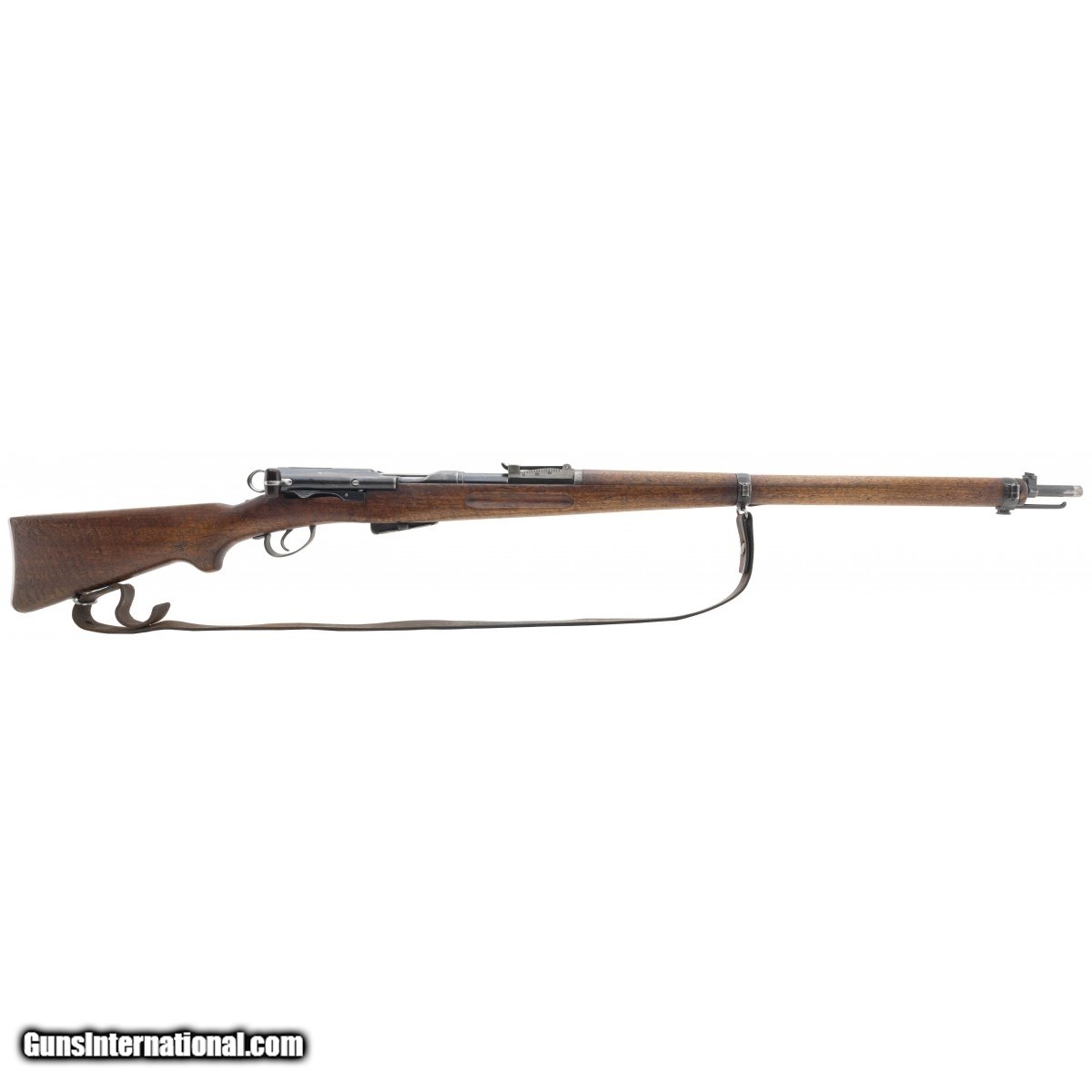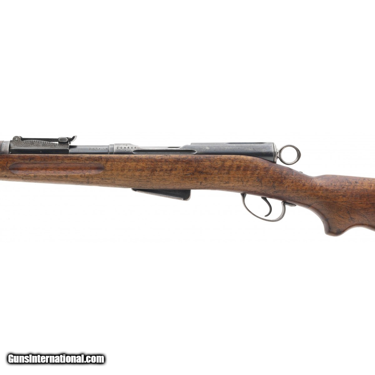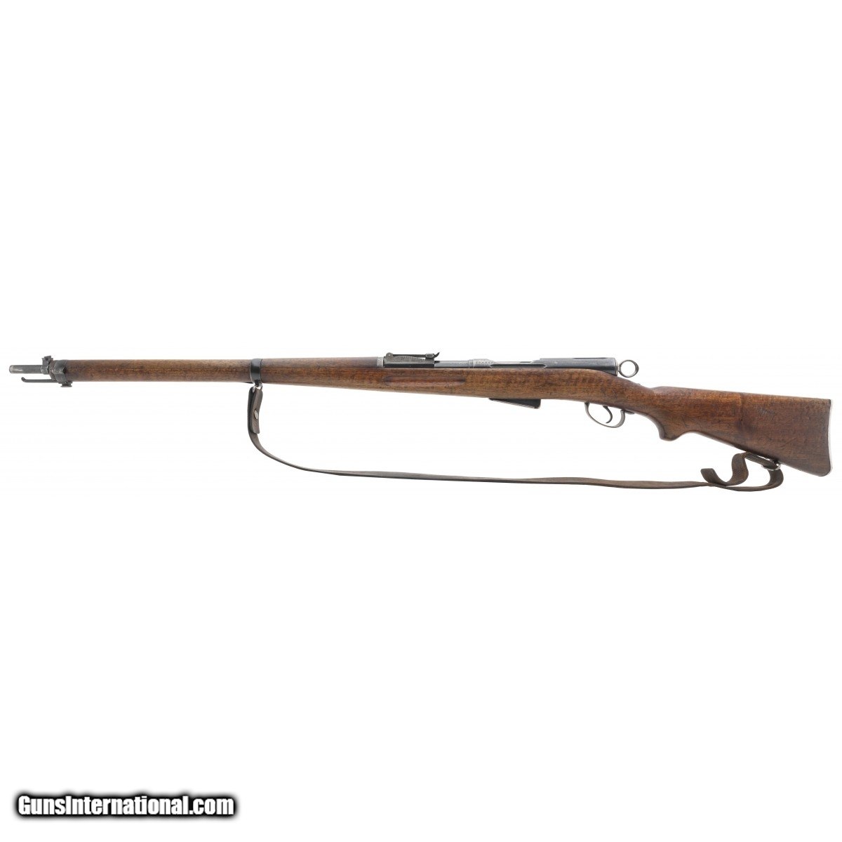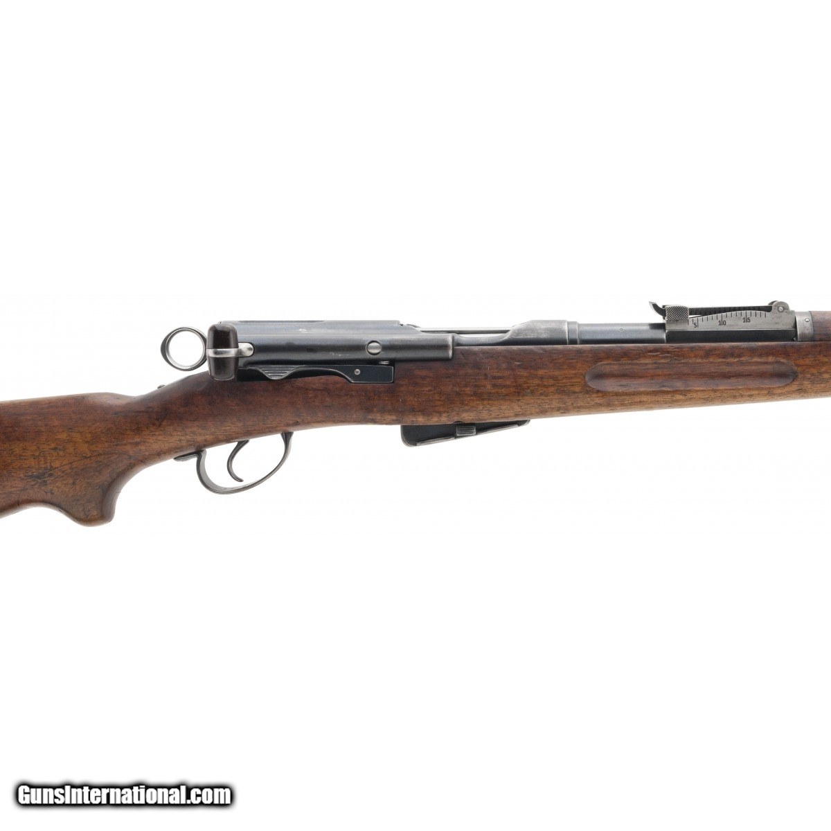 Description: " Serial No. 248646 chambered in 7.5 Swiss 31"" barrel Swiss K1911 straight pull bolt action rifle in overall good condition. Bore is bright and shiny with strong rifling. Bolt, receiver and magazine are matching. Stock and butt-plate do not. Wood shows dings,scratches and mars. Action functions correctly. SOLD Curio/Relic: Yes |
