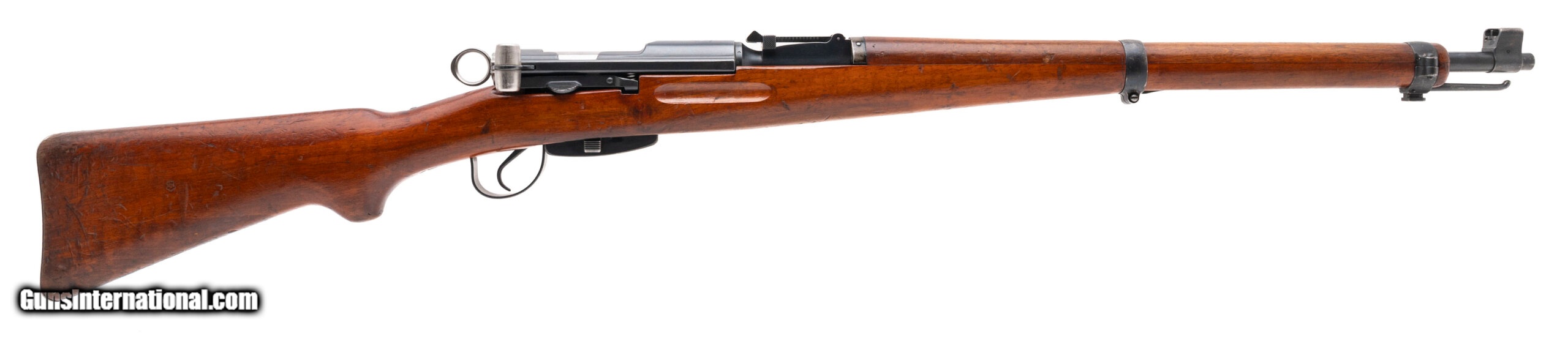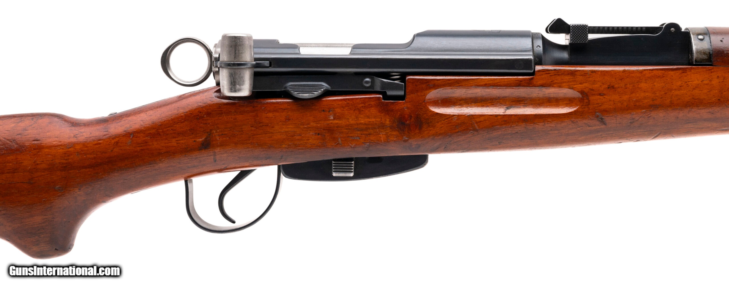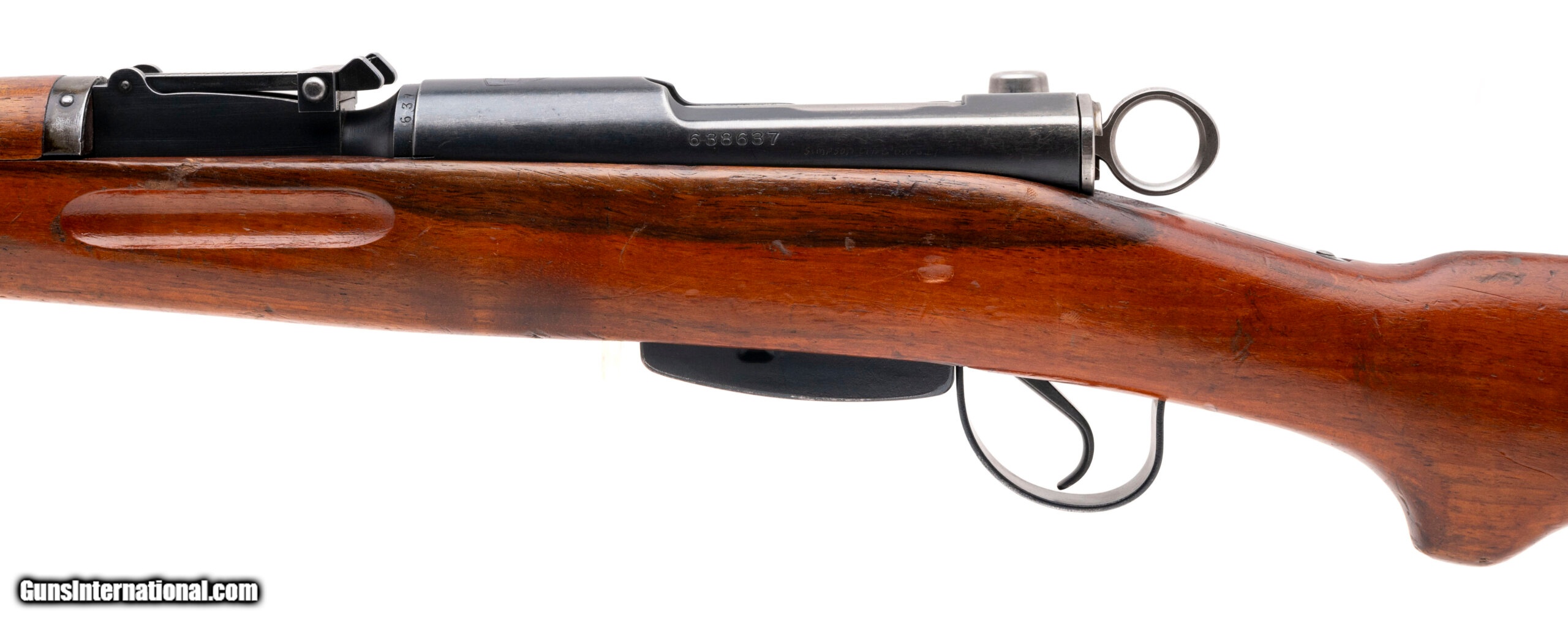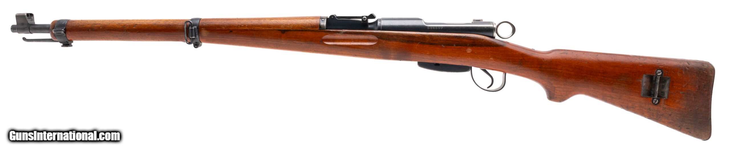Description: "Serial No. 638637, made in 1941, 7.5x55, 25.67" round barrel. Bore is bright and shiny with strong rifling noted. Serial numbers are matching, including the magazine, stock has expected handling and usage wear noted. Action is smooth and functions correctly. SOLD Curio/Relic: Yes |