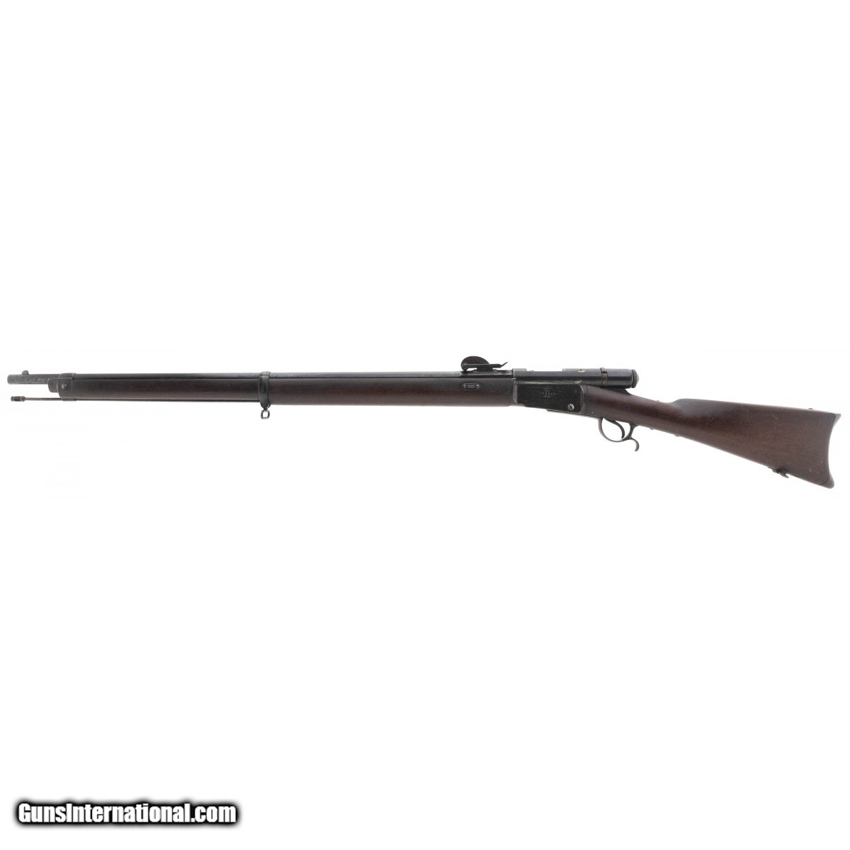 10.4X42Rmm Swiss rimfire (41 Swiss). Excellent bore. Rod has slight bend at end. Action functions correctly. Mostly blue turning brown in some areas. Very good wood. Action functions correctly.