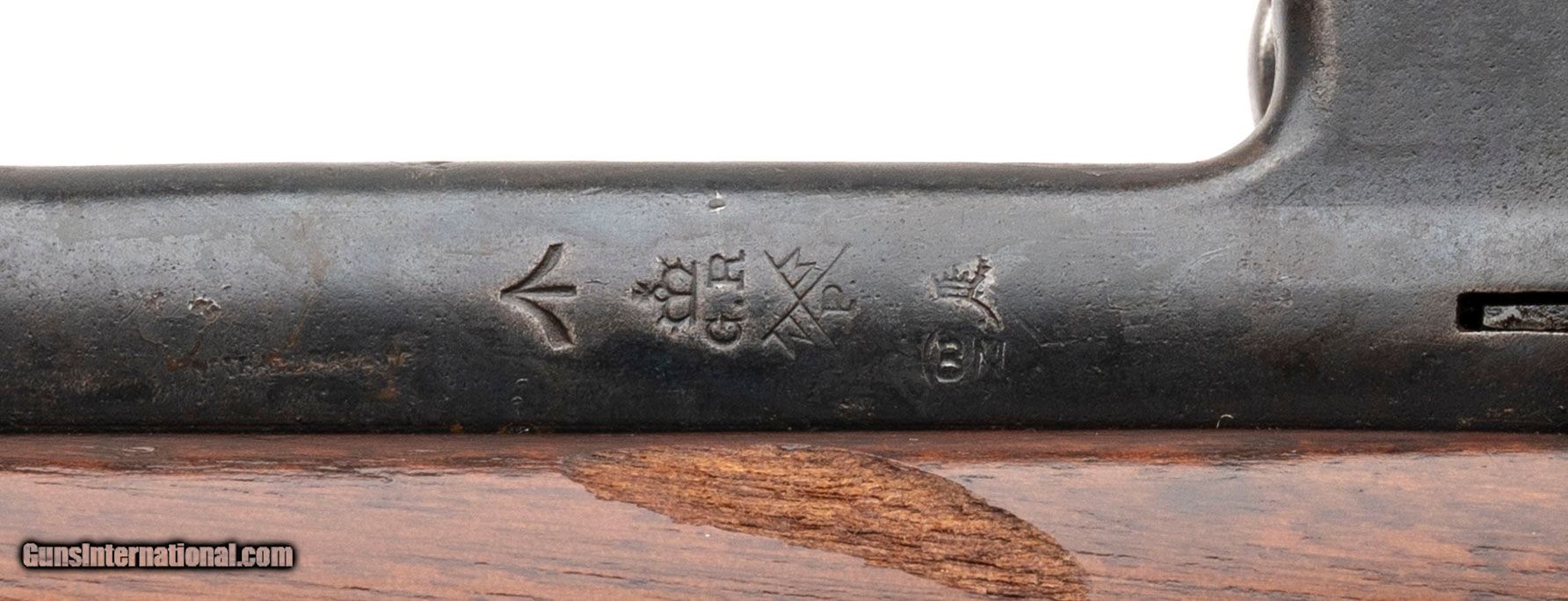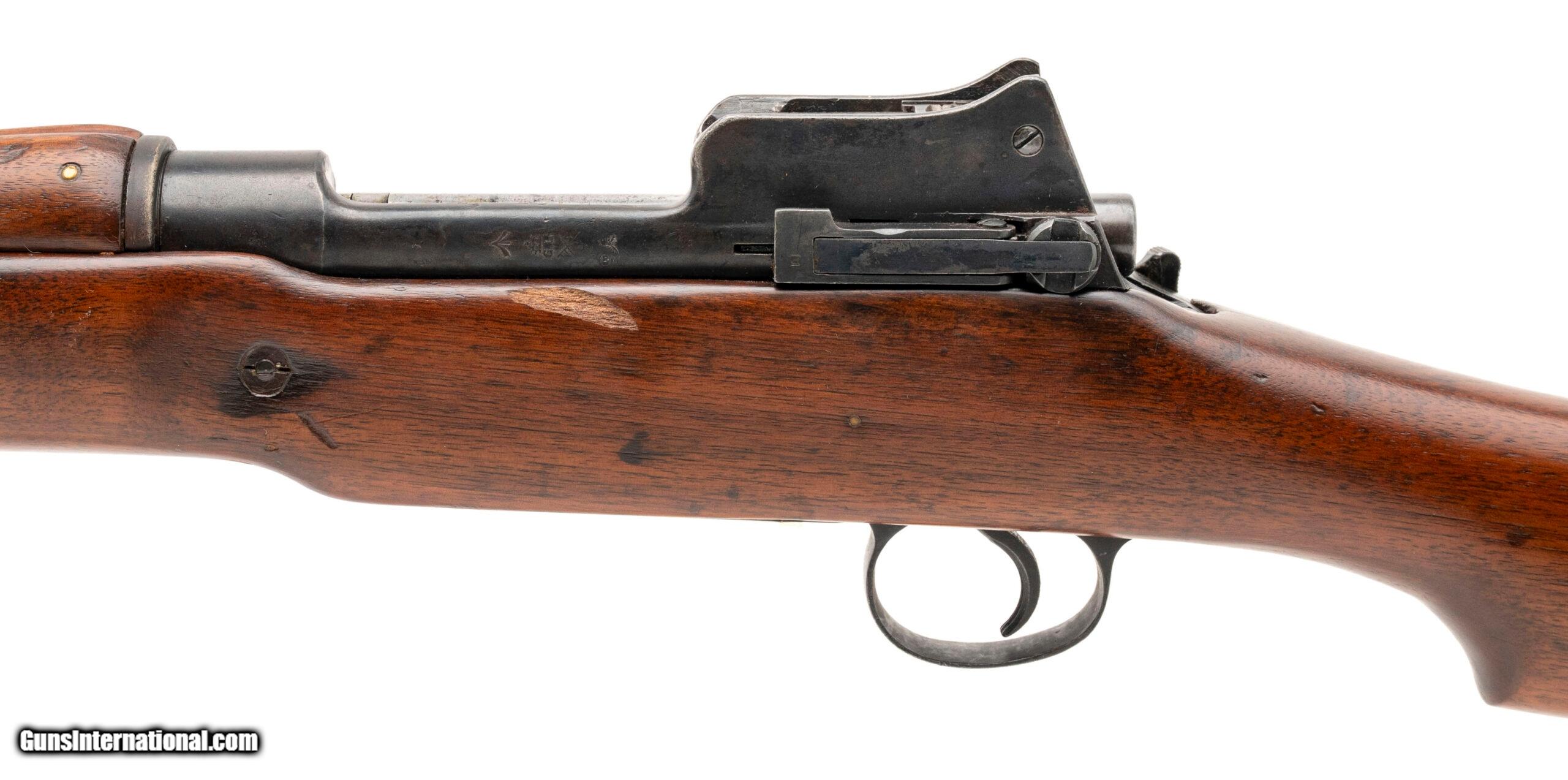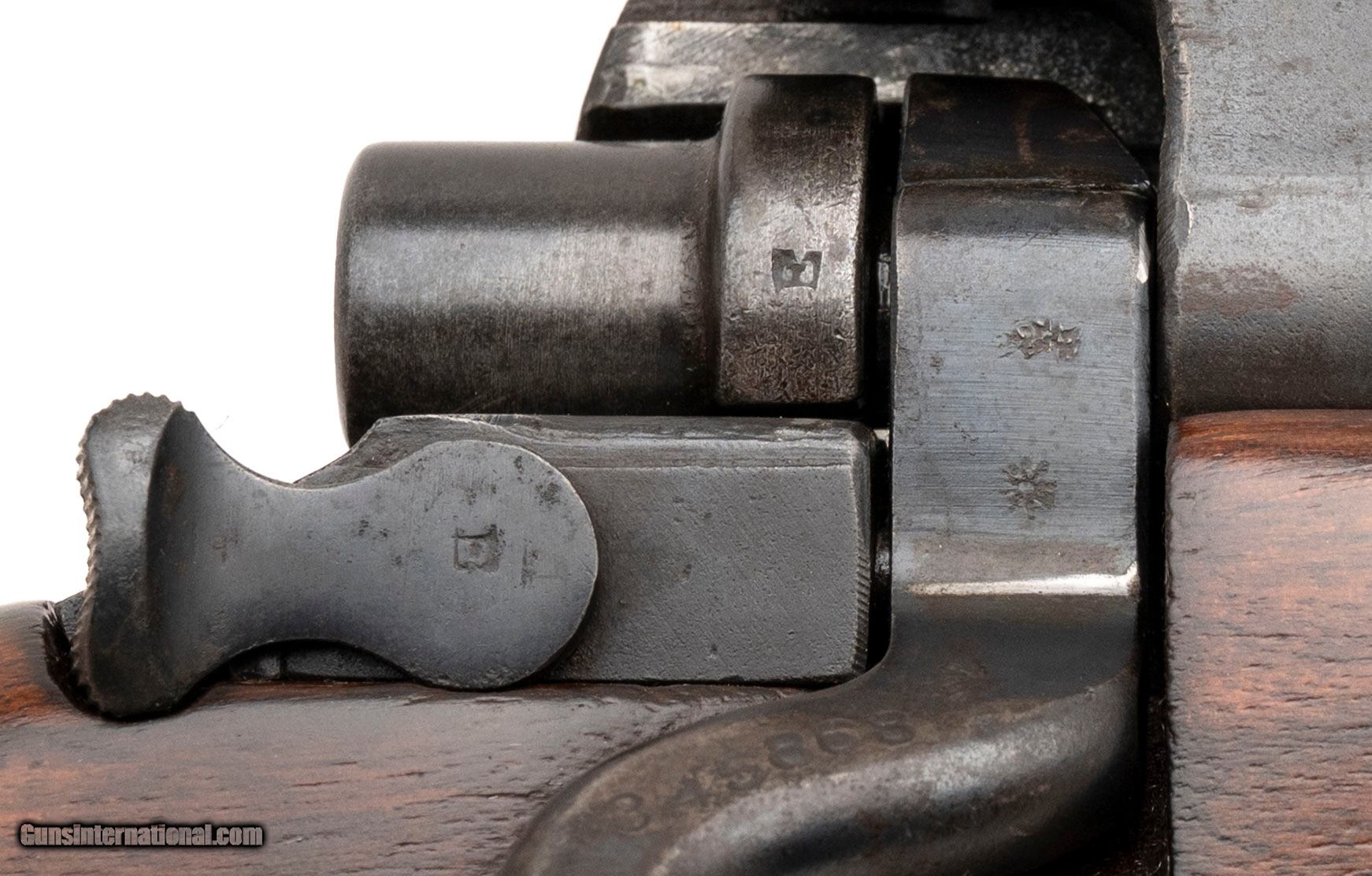 Description: "Serial No. 345868, manufactured circa 1916–1917, chambered in .303 British with a 26" round barrel. This rifle bears British proof marks and the Broad Arrow on the right side of the receiver, indicating official military acceptance. The bolt is matching, and the metal finish has thinned to a smooth grey patina consistent with service use and age. The stock has been lightly refurbished, likely during an interwar arsenal overhaul, and the volley sights have been removed, a common modification as the tactical utility of these sights became obsolete. Mechanically sound, the action is smooth and functions correctly, making this a solid and representative example of the Pattern 1914 rifle, which would later evolve into the U.S. Model 1917 Enfield. Curio/Relic: Yes Price: $1,195.00 Contact Seller |