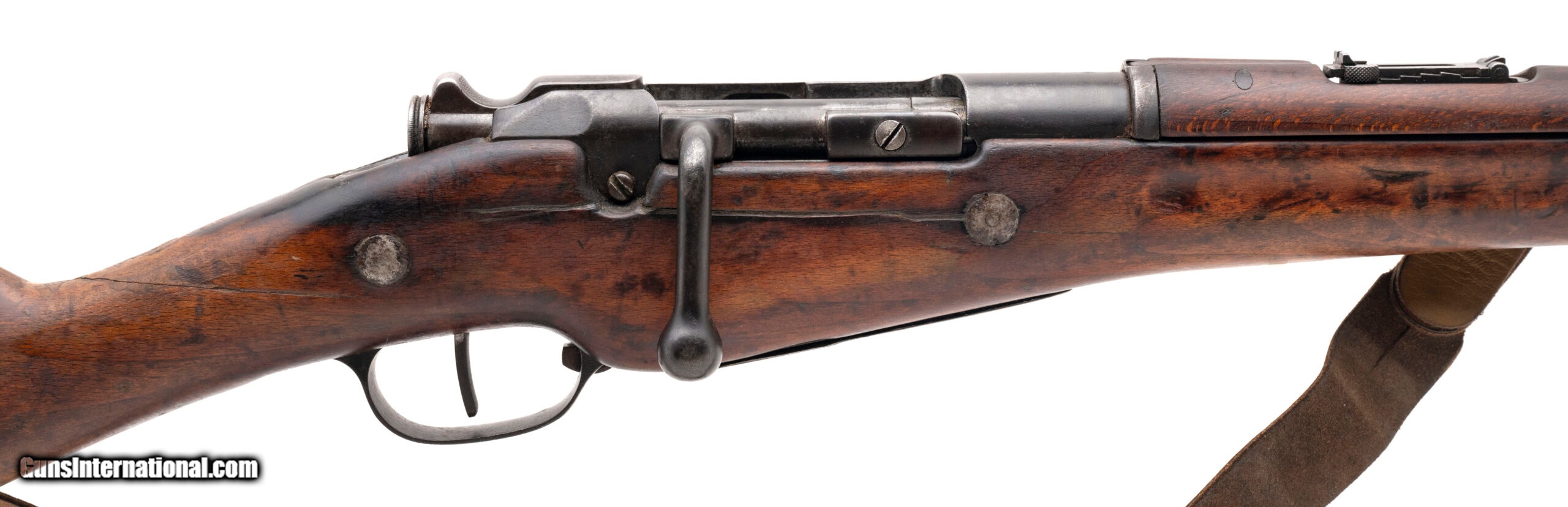 Description: "Serial No. B90001, circa 1914-1916, 8mm Lebel, 18 ½" round barrel. Bore is bright and shiny with strong rifling noted. Serial numbers are non-matching, finish is thinning to a plum/brown patina. Factory markings remain sharp. Stock has been lightly sanded with dings, scratches and marring noted. Action is smooth and functions correctly. SOLD |