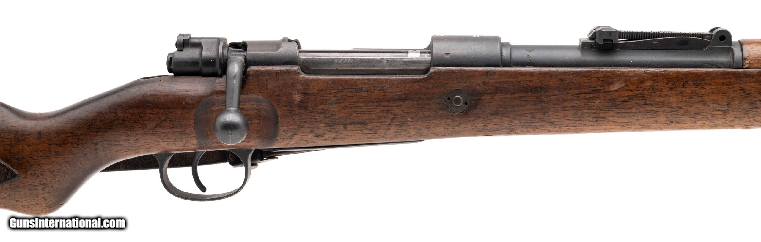 Description: "Serial No. 3044g, manufactured in 1942, 8mm Mauser, 24" round barrel. Serial numbers are matching throughout, except for the front barrel band. Rifle has been arsenal refinished, with factory markings sharp and clearly visible on the receiver and barrel. Stock has been lightly sanded, with Waffenamt inspection marks still visible. Rifle comes with its original sling. Action is smooth and functions correctly. A well-presented example of a bnz 42–coded K98k, produced by Steyr-Daimler-Puch, retaining its correct wartime features and markings. Curio/Relic: Yes Price: $1,495.00 Contact Seller |