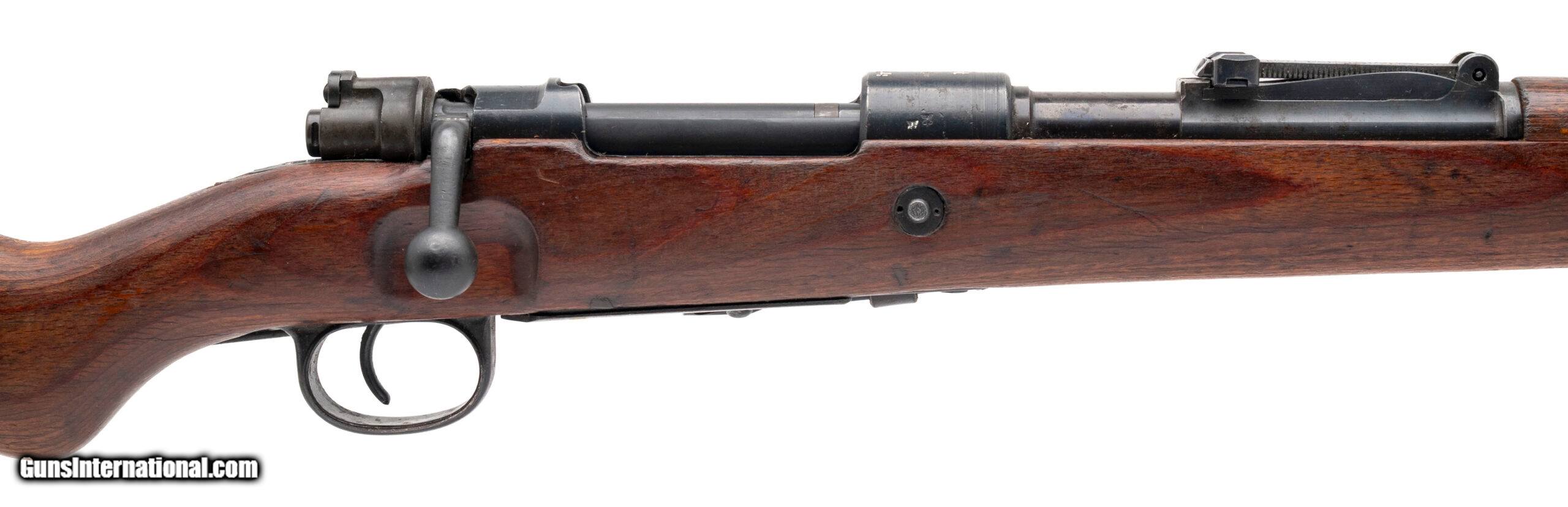Description: "Serial No. 4510au, manufactured in 1944 at the Waffenwerke Brünn (Brno) arsenal, under the German ordnance code “DOT", chambered in 8mm Mauser with a 24-inch round barrel. Serial numbers are matching throughout, with the exception of the stock, which is a correct-type field replacement. The metal retains 85–90% of the original blued finish, showing light brown surface patina and honest service wear. The stock remains in very good condition, showing only light handling impressions, and the upper handguard bears the “DOT" marking. Action is smooth and functions correctly. Rifle includes an original wartime sling. This example is a representative mid- to late-war Brno-produced K98k. Curio/Relic: Yes Price: $2,495.00 Contact Seller |