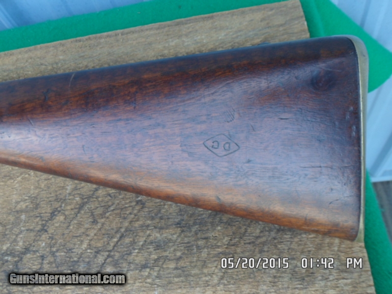 Description: 1862 ENFIELD SNIDER MK III CONVERSION LONG RIFLE..577 CALIBER ,36 5/8" RIFLED BARREL WITH VERY GOOD BORE AND ORIGINAL LADDER TYPE REAR SIGHT AND ORIG.FRONT SIGHT.SIDELOCK MARKED WITH 1862 OVER ENFIELD AND V.R. UNDER CROWN.A LOT OF BRITISH PROOF MARKS ON BARREL AND RECEIVER.ORIGINAL WALNUT STOCK IN VERY GOOD CONDITION(NO CRACK OR CHIPS) WITH A NICE R.M OVER W.D. OVER ENFIELD CARTOUCHE ON RIGHT SIDE AND DC IN DIAMOND CARTOUCHE ON LEFT SIDE OF STOCK,ORIGINAL BUTT PLATE MARKED WITH A 7 OVER 257 REGIMENT MARK IN BRASS PLATE. GUN S/N 0696 .A VERY NICE MK III SNIDER CONVERSION TO SHOOT OR FOR YOUR COLLECTION. 1295.00 PLUS 40.00 SHIPPING.CALL DANNY AT 828-698-8804 IF NEEDED.GOD BLESS! SOLD |