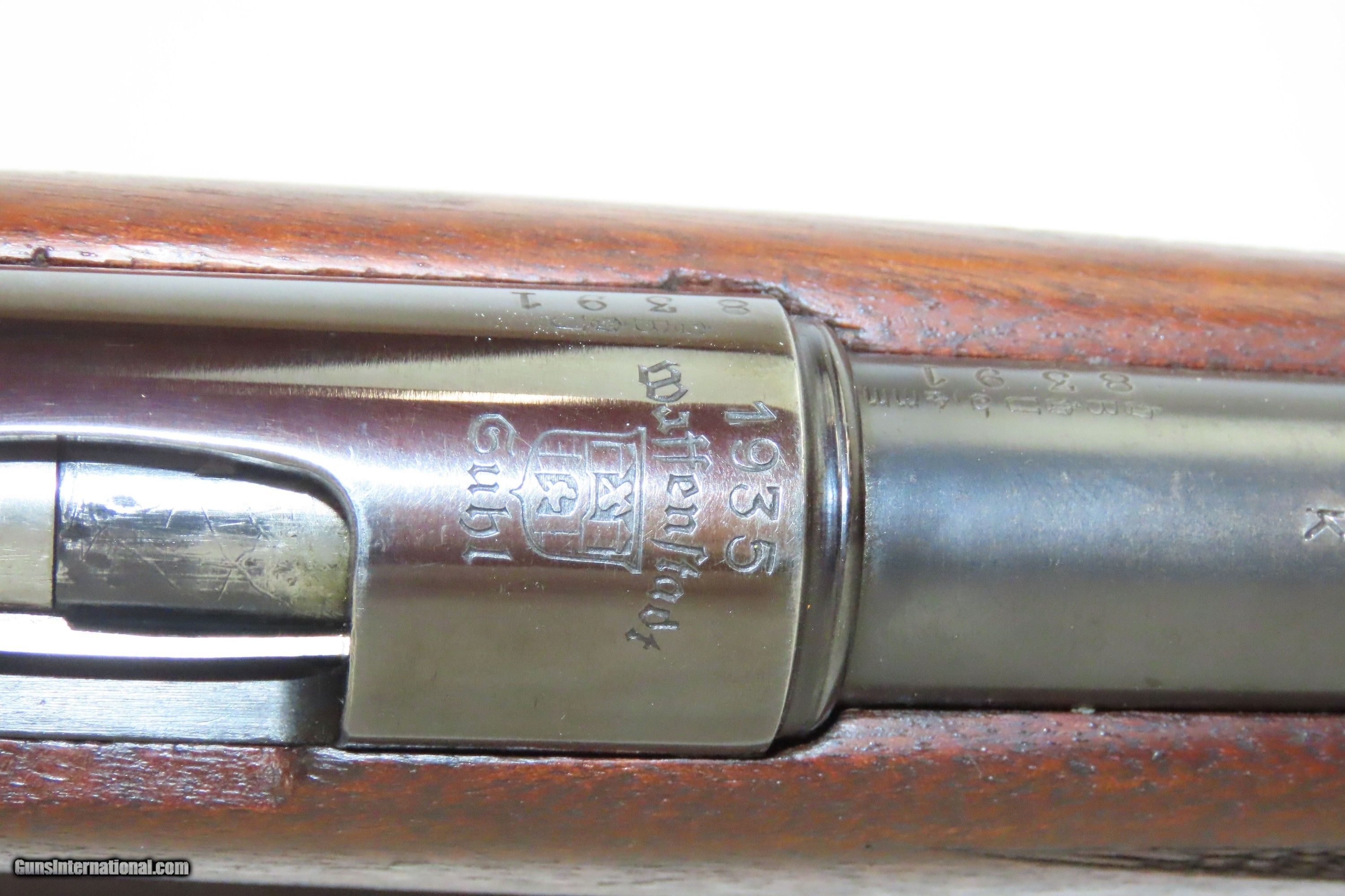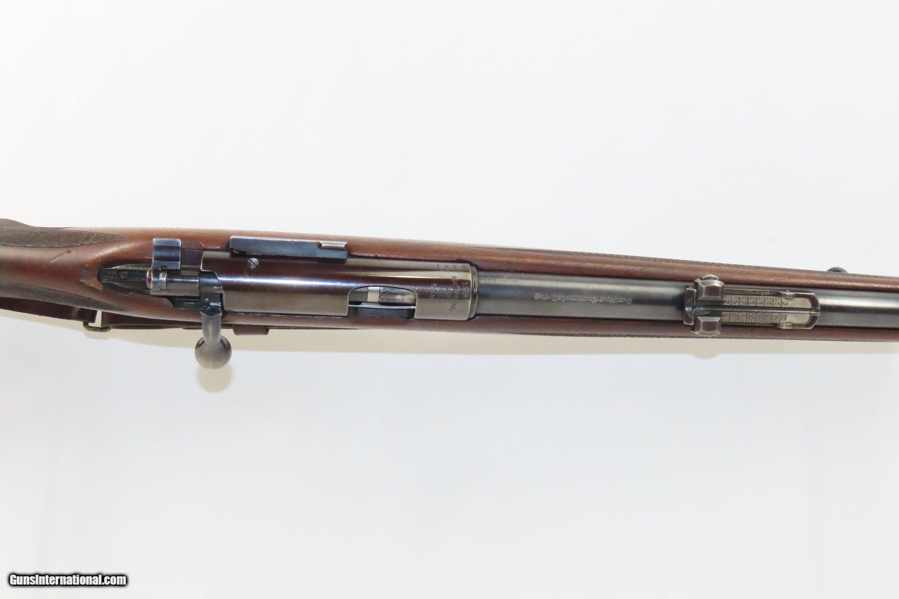 Description: 1935 mfr. WAFFENSTADT Deutsches SPORTMODELL .22 LR BOLT ACTION Rifle C&R DSM-35 German K98 TRAINING Rifle w/SLING Here we present a German Mauser Deutsches “Sportmodell” Rifle in .22 LR, made circa 1935 in Suhl, Germany. The DSM became one of the most common of the German "training" rifles leading into World War II. Modeled after the K98, this training rifle has a tangent rear sight graduated from 25 to 200. The top of the chamber is dated “1935” and “Waffenstadt Guhl” with a coat of arms device. “BUG” proofs. The barrel is marked “5.4mm” and the type of steel: “ROECHLINGSTAHL”. The top of the barrel is marked “Deutches Sportmodell”. The overall condition is fine. Original finish. Excellent action. Bright bore. The stock is in fine shape with sharp checkering. Markings are legible. Numbers match. The leather sling is in good shape. This firearm is classified as a Curio & Relic. Barrel is 21 inches. Caliber: .22 Long Rifle Rimfire (5.4mm) Overall condition as seen in photos. Very Fast. Very Safe. FREE SHIPPING. Will need to be sent to your local FFL or C&R licensee. This firearm is classified as a Curio & Relic. Guaranteed AUTHENTIC & Includes CERTIFICATE OF AUTHENTICITY. ancestryguns $1200 #233769 SOLD Curio/Relic: Yes |