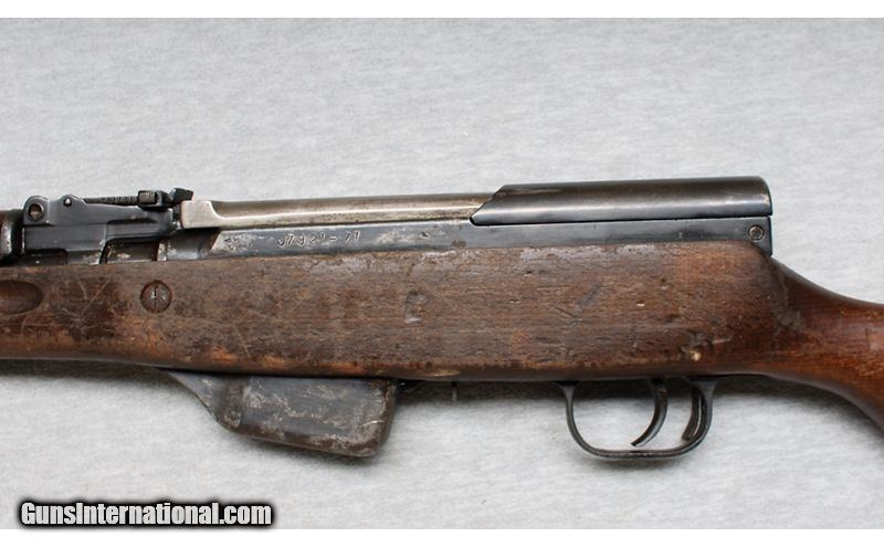Description: Albanian SKS in 7.62 x 39. This Albanian SKS is a rather rare variant of the SKS rifle. Though it shares most features of other SKS rifles, it does have features that set it apart. It has a wooden upper handguard that extends the full length of the gas tube. It also has an oddly shaped magazine body extending below the rifle. The bolt carrier handle is more like that of an AK-47 than other SKS rifles. It has dual storage compartment doors, rather than one, and it has a rear sling swivel mounted on the left side of the stock. This model has a under folder bayonet. 7.62x39mm SOLD Chambers: 7.62 x 39 Metal Condition: Good with light surface corrosion Wood Condition: Rough Condition with crack on right side near action Bore Condition: Bright with good rifling Barrels: 20 inches Triggers: Factory Stock Dimensions: LOP 13 Inches Fore End: Smooth Hardwood Butt Pad: Metal Plate Item Location: La Vista, NE |