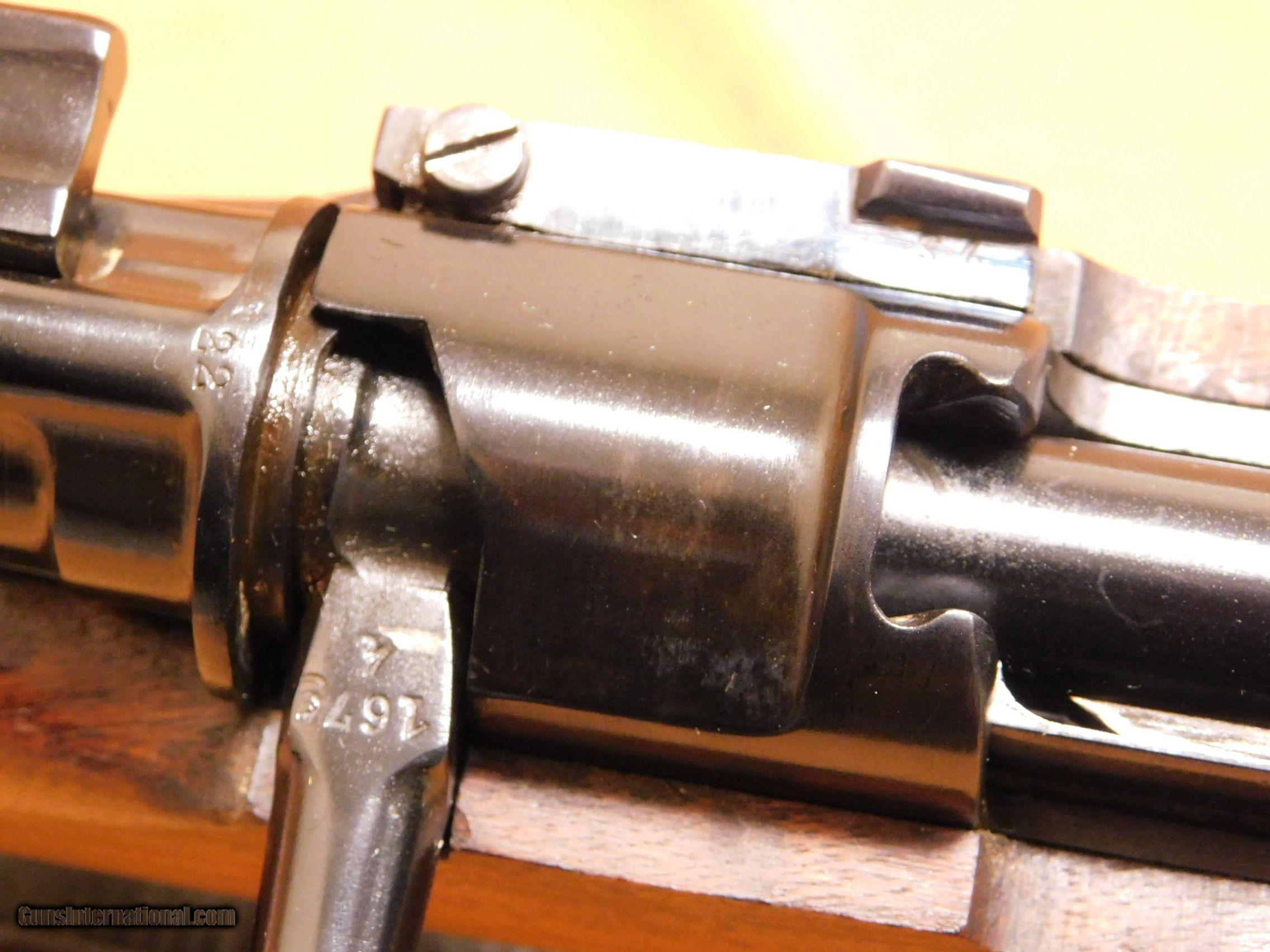 Description: This is an interesting Gew 98 that was reworked by Imperial Germany for the Weimar Republic circa 1935, as indicated by the "S/42 g" marking on the updated tangent rear sight. The rifle's stock also has a shell-and-flame cartouche with "mp 8" on the right of the butt stock. This indicates it was sold by Spain at some point in its history, probably around the Second World War or later. The barrel was manufactured by Simpson and has Weimar proofs. It is in like-new condition after the re-work. The bolt sleeve matches the receiver numbers and all the other parts are typical, rework mismatched. The rifle has an excellent bore and an interesting history. All items are also available for sale in our brick & mortar store and are subject to prior sale. Think long, think wrong. We are always buying unique and collectible single firearms and collections. Please give us a call at 859-278-8370 to discuss what you have available. We also offer free appraisals and guarantee TOP DOLLAR PAID for your unique and collectible firearms. Payment On firearms, we typically only accept credit cards or money orders/cashier's checks.