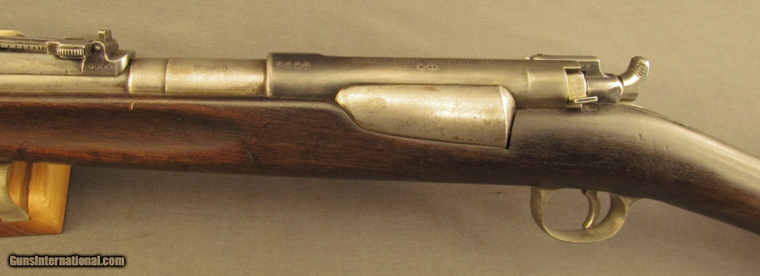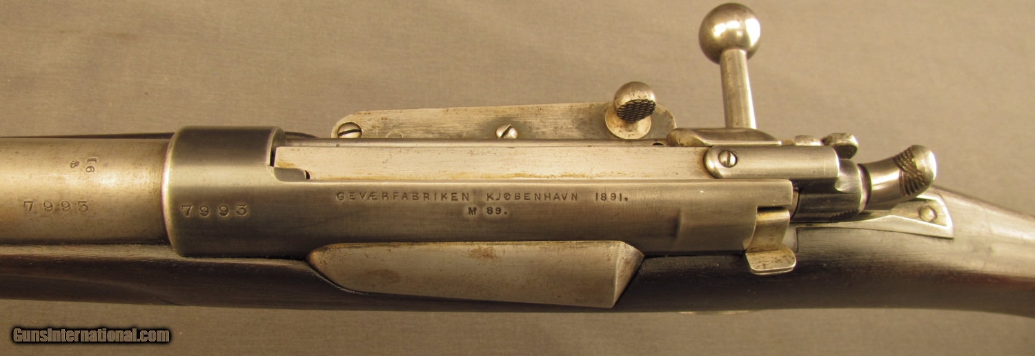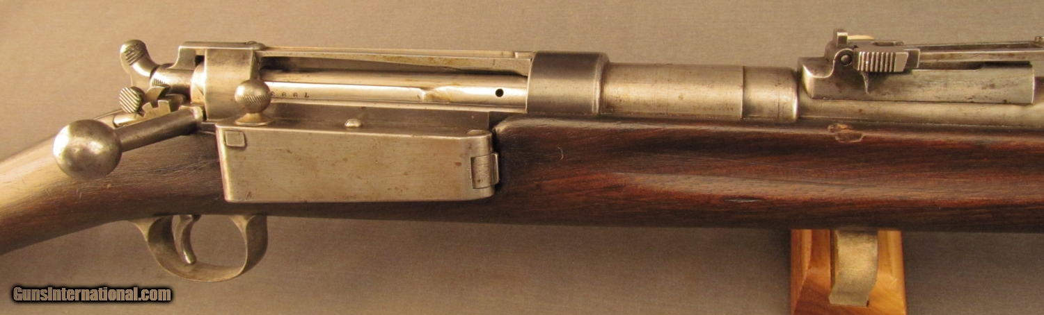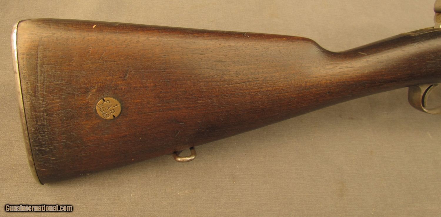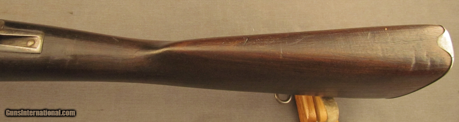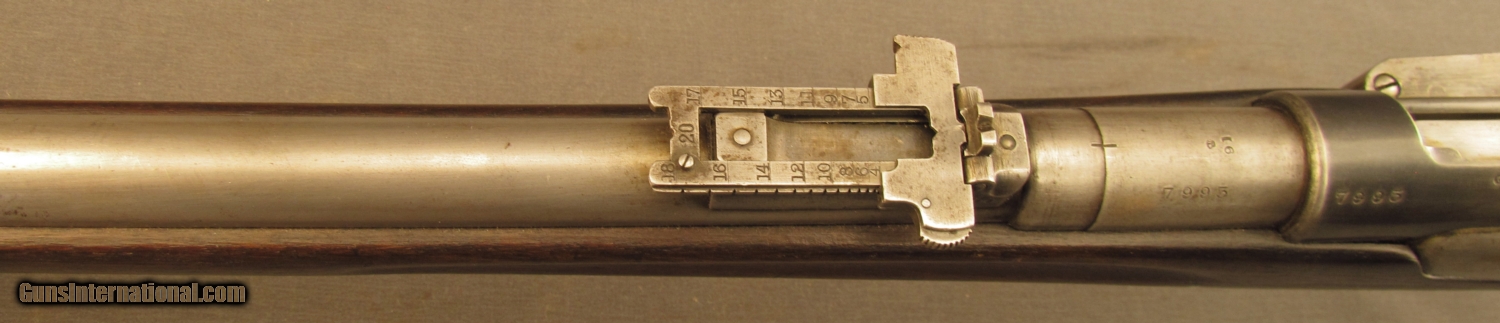 Description: Serial #7993, 8 x 58R Krag, 33” barrel with a fine, bright bore that has some minor freckling within the grooves. This is an 1891 dated, Copenhagen marked rifle that has all matching numbered parts. The metal retains about 25-30% of the original blue on the receiver and muzzle-end of the barrel jacket, but the balance has faded and blended smoothly and evenly into a mellow gray patina that continues onto the bolt. The walnut stock and handguard have been refinished to fine shape with a nice, re-applied military oil finish over light handling marks, and a series of light impacts at the toe of the butt. The Model 1889 Krag-Jorgensen is one of the scarcest. These are rather uncommon long guns no matter the variant, and this example is in very good plus-near fine condition overall. Antique SOLD Antique: Yes Manufacturer: Danish Model: Krag Serial Number: 7993 Caliber Info: 8mm Gauge Info: 8mm |