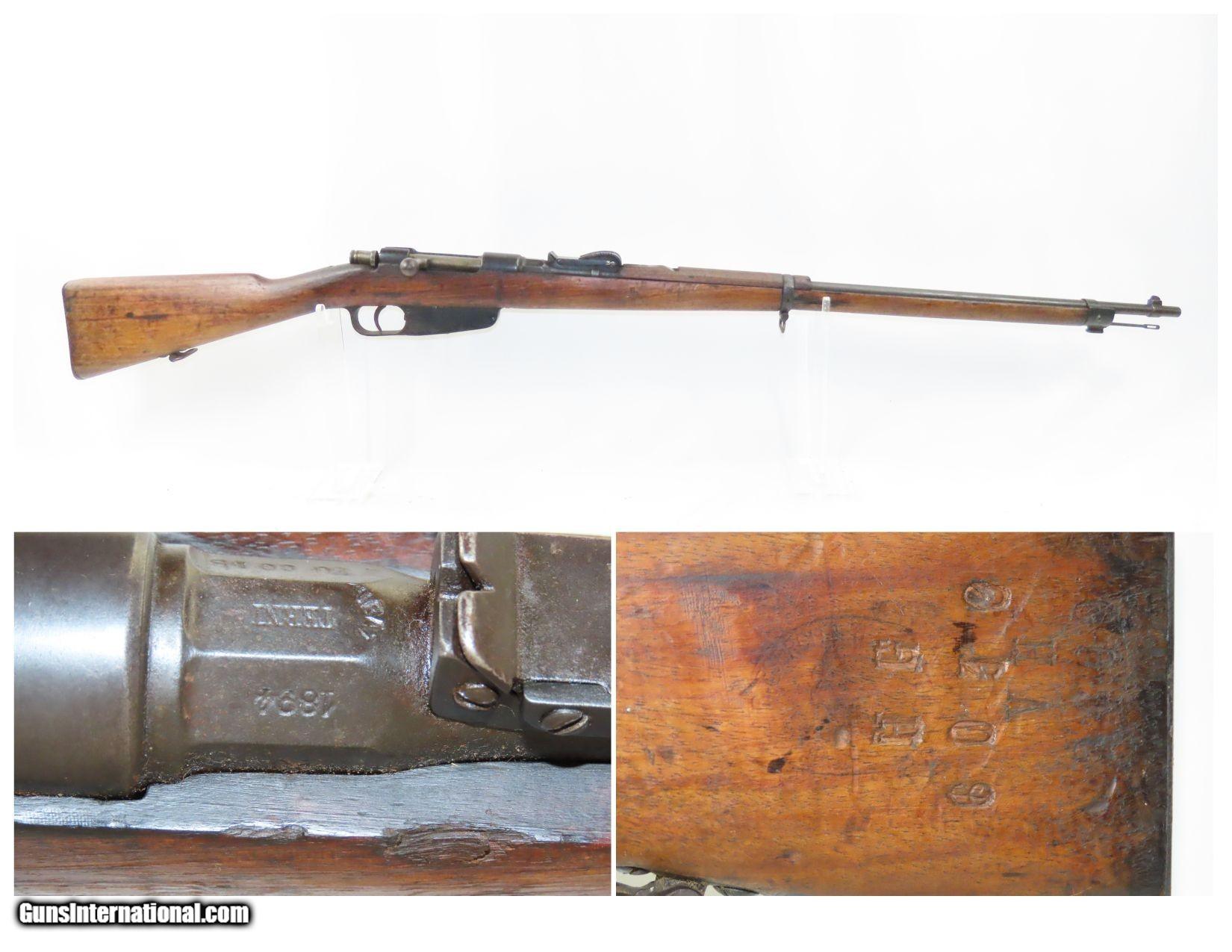 Description: Antique WORLD WAR I and II Italian TERNI ARSENAL Model 1891 CARCANO Rifle Italian Infantry Rifle Used in Both WORLD WARS Here we present an antique Terni Arsenal Italian Carcano Model 1891 Rifle, manufactured in 1894 during a production run between 1891 and 1919. The Terni Arsenal was a small arms factory located in Terni, Italy. The Terni complex was set up by a group consisting of the Italian steel and shipbuilders Odero and Orlandi, with technical and financial input from Vickers and Armstrongs of Britain to erect a Blast Furnace at Terni, and a connected “ordnance” works, for the manufacture of Guns (artillery) and small arms, in the late 1870s after the final unification of Italy with Rome as its capital in 1870. At the time, the centers of Small Arms and Artillery production were Turin (Torino), for the North, and Torre Annunciata (near Naples) for the South, both areas having been independent kingdoms prior to the re-unification struggles of the 1860s. The overall condition is good. Robust action. Semi-bright bore. Solid stock with an average amount of wear (minor dents and dings). Legible markings. “1894” dated. The magazine is missing. Own the original! This is a legitimate antique and not a reproduction. Barrel is 30-1/2 inches. Caliber: 6.5mm Italian Overall condition as seen in photos. Very Fast. Very Safe. FREE SHIPPING WORLDWIDE. Delivered directly to your door by express mail! Guaranteed AUTHENTIC & Includes CERTIFICATE OF AUTHENTICITY. ancestryguns $1200 #217228 SOLD Antique: Yes |