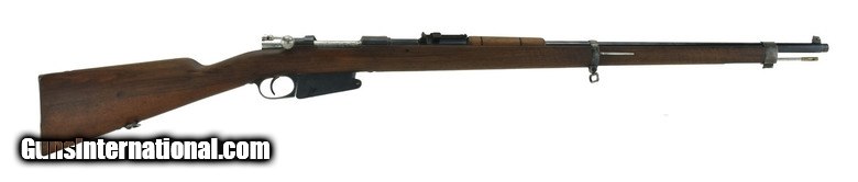 Argentine Model 1891 7.65 caliber rifle. Serial numbers are matching, including the cleaning rod. Made by Loewe pre-1898. Bore is excellent Crest has been ground off, which is common on these rifles. Very good overall condition.
