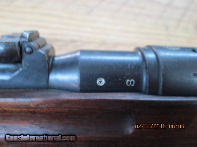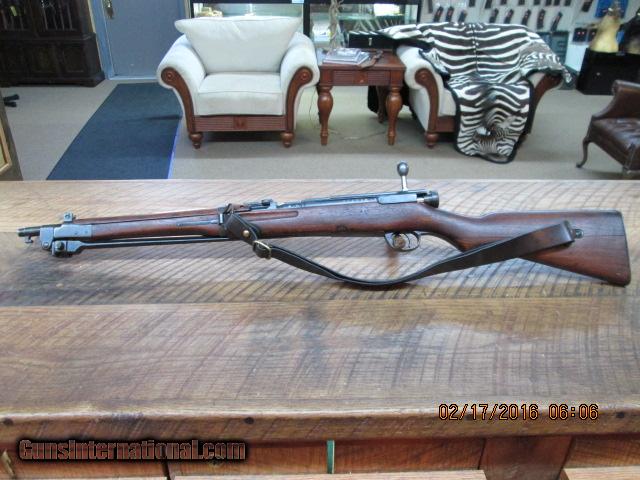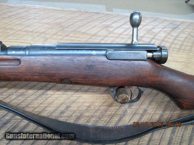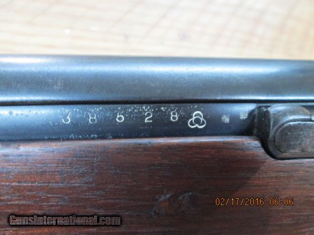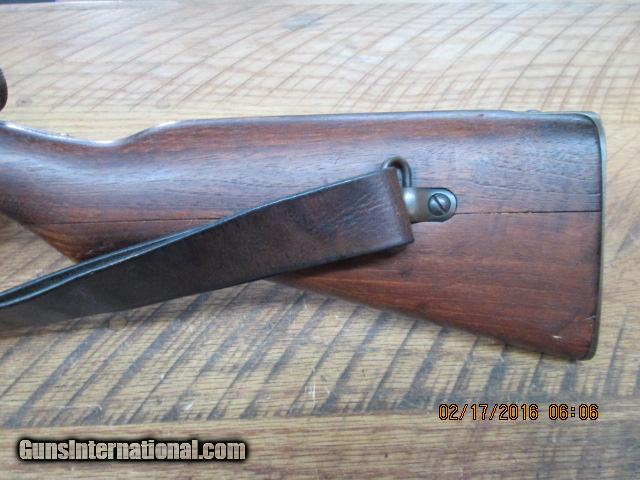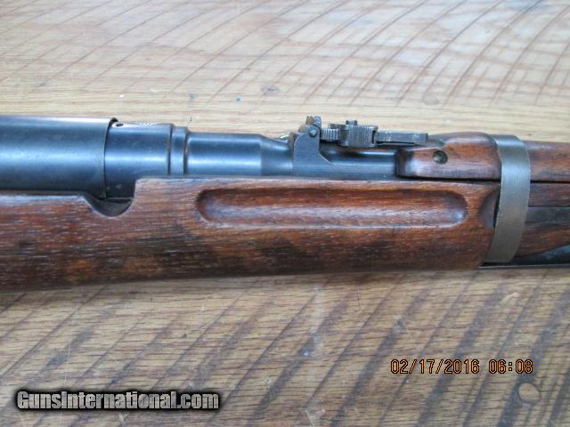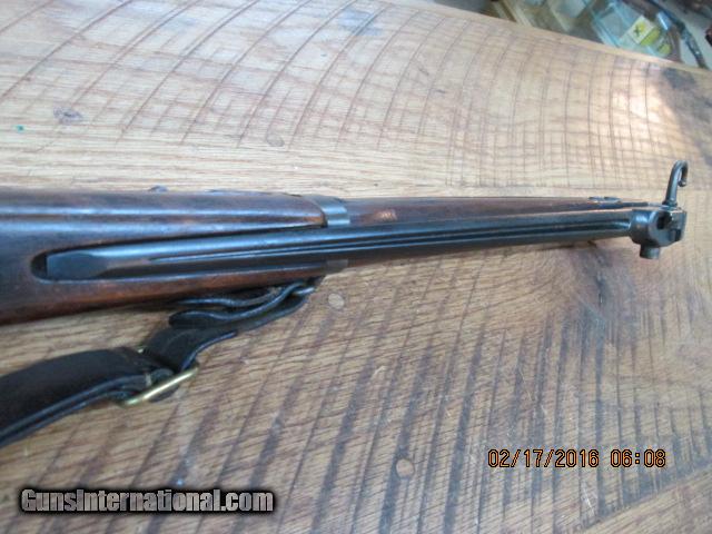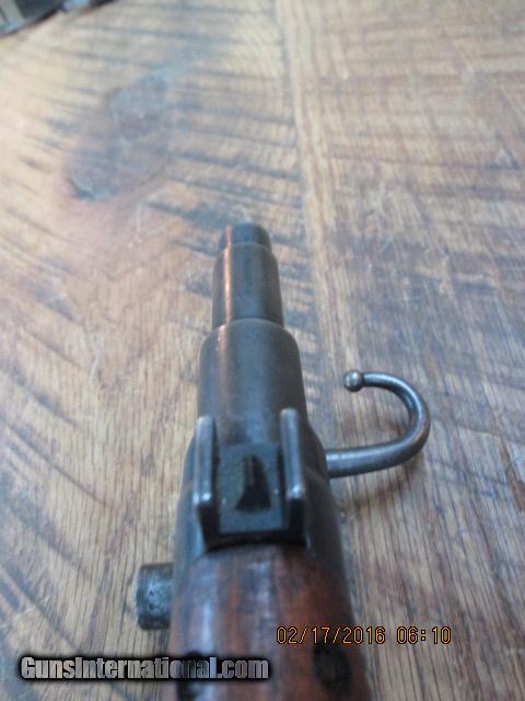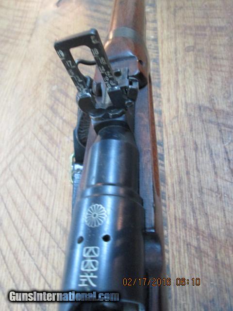 Description: ARISAKA TYPE 44 CARBINE,FOLDING BAYONET 6.5 JAP CAL.1 ST VARIATION CARBINE FROM KOISHIKAWA ARSENAL,TOKYO. 95% PLUS ALL ORIGINAL AND MATCHING CARBINE.19" BARREL WITH EXCELLENT BORE,INVERTED V WITH NARROW GUARD FRONT SIGHT AND OPEN V WITH FOLDING LEAF GRADUATED IN 100 METER INCREMENTS FRON 400 METER TO 2000 METERS.RECEIVER HAS FULL ROYAL CHRYSANTHEMUM AND CHARACTERS STAMPED ON TOP.FACTORY BOLT DUST SHIELD.TWO-PIECE BUTT STOCK WITH FULL LENGHT HANDGUARD,SLING SWIVERS AND PERIOD LEATHER SLING ALL IN EXCELLENT CONDITION.ALL ORIGINAL FACTORY METAL BLUE AND MATCHING NUMBERS.A SUPER EXAMPLE OF A M44 CARBINE FROM THE EARLY 1900'S.S/N 385XX. 1595.00 PLUS 40.00 SHIPPING.CHECKS TAKE 10 DAYS TO CLEAR,M/O'S TAKE 5 DAYS TO CLEAR,NO CREDIT CARDS TAKEN.CALL DANNY AT 828=698=8804 IF NEEEDED.GOD BLESS! SOLD Curio/Relic: Yes |