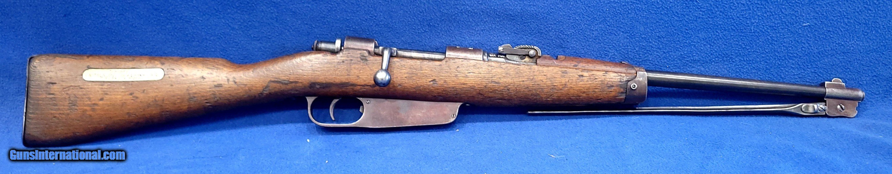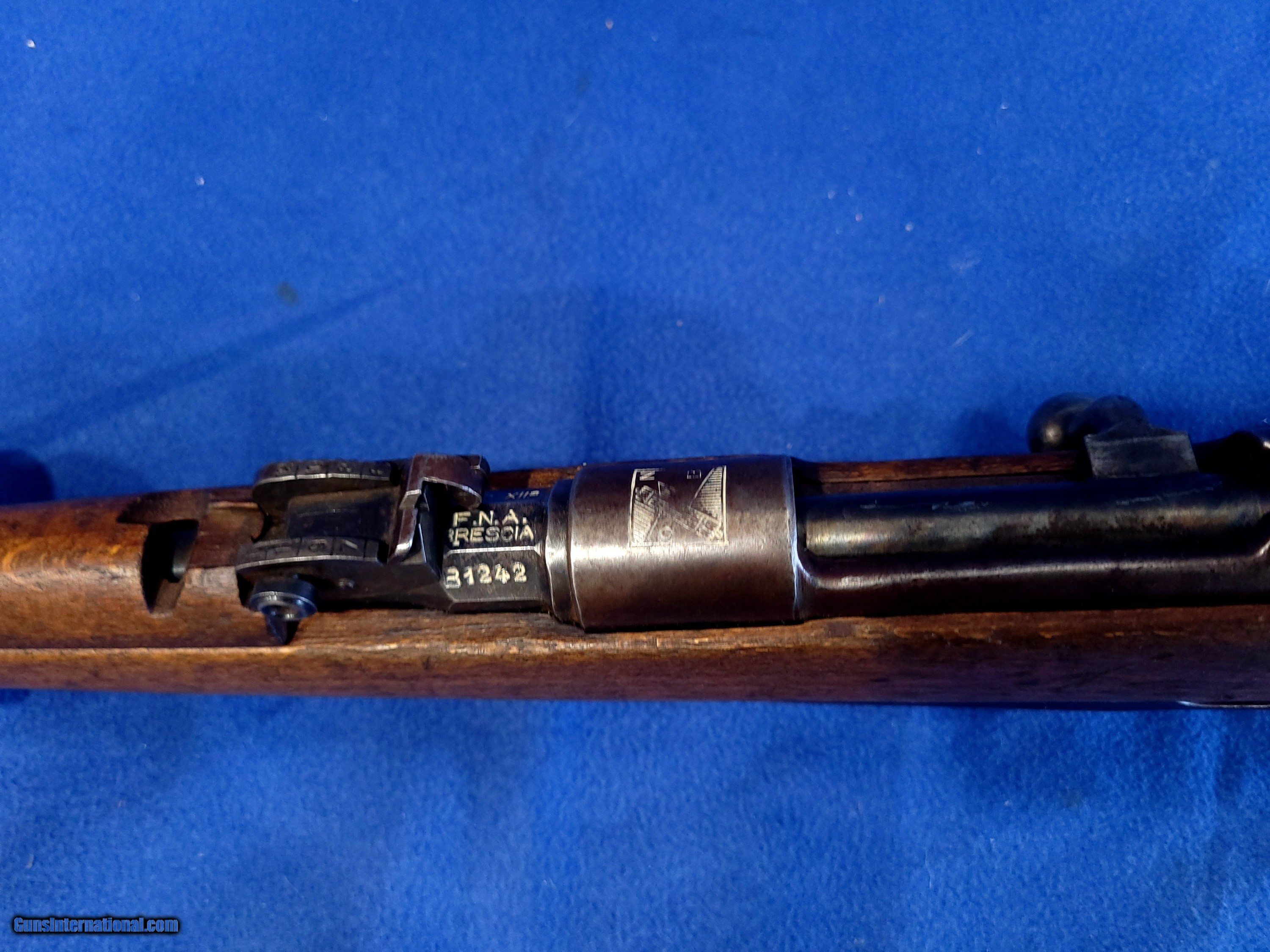 Description: AWESOME! FNA BRESCIA CARCANO "BALILLA" CARBINE MFG. 1934, CAL. 4.5MM BLANKS. THIS RIFLE IS 3/4TH THE SIZE OF ACTUAL CARCANO MOSCHETTO MODELLO 1891 ALSO KNOWN AS THE CAVALRY CARBINE. TYPICALLY THESE GUNS WERE ISSUED TO BOYS BETWEEN THE AGES OF 6 AND 12 TO BE USED AS DRILL AND TRAINING RIFLES FOR THE ITALIAN FASCIST YOUTH NAMED OPERA NAZIONALE BALILLA (ONB). "BALILLA" WAS A NICKNAME GIVEN TO THE RIFLES AS IT WAS THE NICKNAME GIVEN TO A YOUNG BOY IN THE 18TH CENTURY WHO KICKED OFF A REVOLT AGAINST THE AUSTRIAN OCCUPIERS OF THE TIME. "TENENTE/CASTEL NUOVO DELLE LANZE CARLO/1 MEDAGILA D'ORO" IS INSCRIBED ON A PLAQUE ON THE SIDE. HE WAS WAS A ITALIAN LIEUTENANT WORLD WAR ONE NATIONAL HERO. HE WAS MORTALLY INJURED AT AGE 21 WHILE HOLDING OFF THE ENEMY WITH HIS MACHINE GUN NEST. PASSING AWAY IN A AUSTRIAN POW HOSPITAL SHORTLY AFTER. HE HAD BEEN POSTHUMOUSLY AWARDED A GOLD MEDAL AND THE SILVER MEDAL. BOTH WERE THE HIGHEST MEDALS AVAILBLE TO AN ITALIAN SOLDIER FOR HEROISM. ADDITIONALLY THERE IS A STREET IN TURIN ITALY NAMED AFTER HIM. WE ARE INCLUDING WITH THE GUN TWO ONLINE ARTICLES ABOUT HIS LIFE AND HIS HEROIC MILITARY ACTIONS THAT EARNED FROM WHERE HE EARNED HIS MEDALS. THE RIFLE SHOWS WEAR, AS IS THE CASE FOR MOST DRILL RIFLES BUT IS COMPLETE AND FULLY FUNCTIONAL. THE STOCK HAS A FEW DINGS SCATTERED AROUND WITH OVER 70% OF THE FINISH REMAINING WITH NO CRACKS OR CHIPS. THE BOLT STILL RETAINING OVER 80% OF THE CASE HARDENING. BLUEING ON THE BARREL IS OUTSTANDING STILL FOR THE AGE. THE BAYONET IS A LITTLE LOOSE BUT WILL STILL HOLD IN PLACE. THE BORE HAS CRISP RIFLINGWITH A LITTLE BIT OF SCATTERED FROST THOUGHOUT. INVESTMENT PRICED AT..... $895*** ***100% OF THE GUN'S PURCHASE PRICE IS SATIFACTIONGUARANTTEED. To purchase this firearm or if you want to request more information contact us at: Email ckguns[at]ymail[dot]com Phone 201-512-0002 Cell 201-575-6838 FAX 201-215-4759 We accept most major credit cards. Prices shown are Discounted 3% for Cash or Check. The buyer must be familiar with all the laws governing the purchase and the ownership of firearms in their own city and state. The Yankee Armorer, Inc is not responsible for any failure to comply with or observe these laws. The Yankee Armorer, Inc will only ship after full payment and receipt of all required documents. Shipping: Add $35.00 for handguns, $45.00 for long guns. New Jersey buyers are subject to a 7% sales tax. The Yankee Armorer, Inc offers a 3 day inspection period with full refund upon return of intact firearm and in the original condition. The Yankee Armorer, Inc offers a no interest lay away program - 25% down; 25% in 30 days; 25% in 60 days; and full payment in 90 days. Any violation of this policy is subject to restocking and forfeiture of all payments. Any variation from this policy must be agreed to in advance. Unshipped Cancelled sales are subject to a 20% restocking fee. Be advised that all firearms sold by The Yankee Armorer, Inc. or the Gun Exchange, LLC (SELLER) are sold as collector’s items. They have not been fired or tested for safety and must be examined by a license gunsmith prior to use. By purchasing any item from the (SELLER), you are agreeing to hold the (SELLER) free from any damages or lawsuits of any nature. Any item left for transfer or storage will be charged to $25.00 per month, per item from the day of its receipt. Any variation from this policy must be agreed to in advance. Store hours 10:00 am to 5:00 pm Tuesday -Saturday. It's always best to call for appointment. Store 201-512-0002, cell 201-575-6838. SOLD |