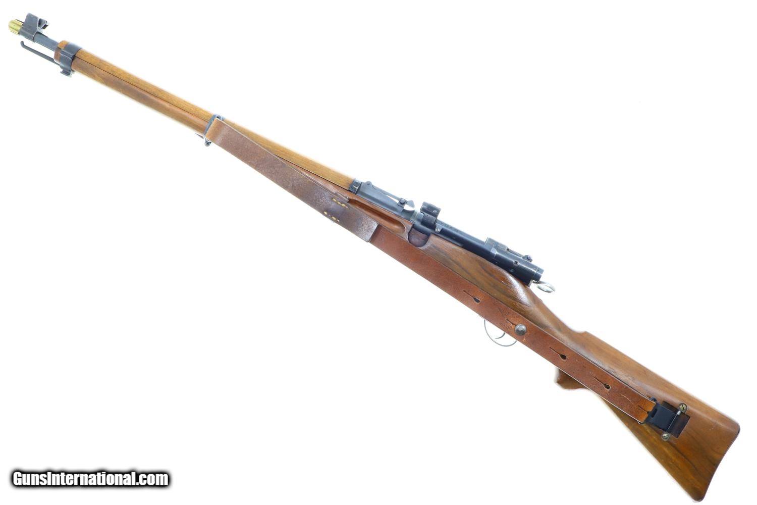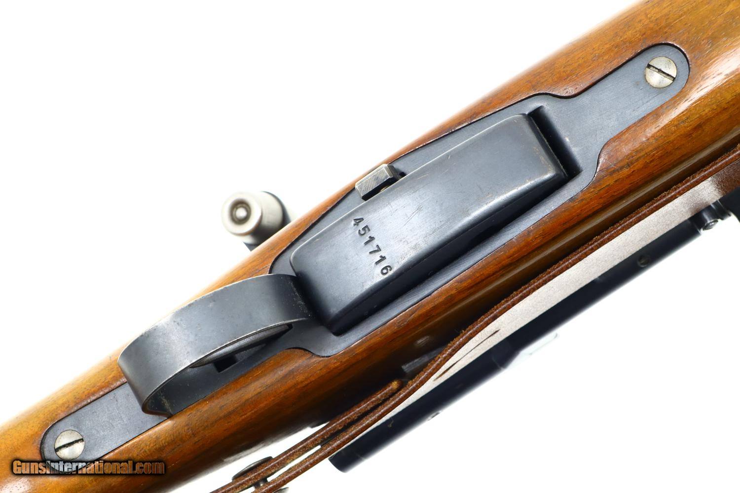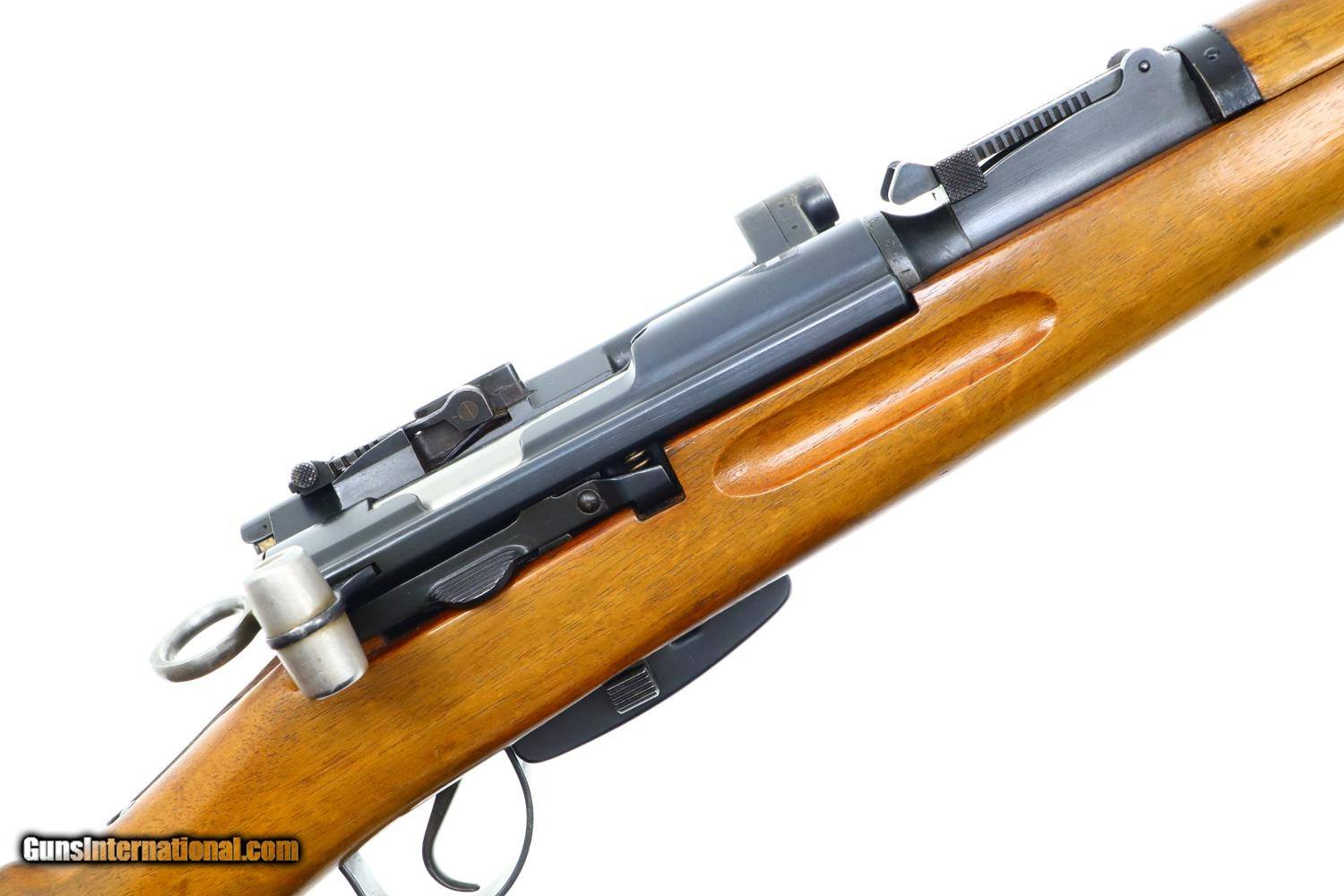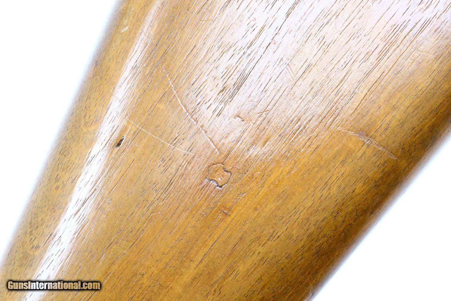 Description: Wonderful Swiss Bern K31/43 Military sniper rifle with sight gradations 1-7 and the far more desirable 2.8 power scope, this example made in 1943. Matching barrel, receiver, bolt, and magazine. Combination brass/steel muzzle cap and military marked sling dated 1963. Synopsis: Excellent Swiss Bern K31/43 Military sniper rifle, 451716, I-1143 Condition: VG-EXC original blue with thinning and sharp edge wear as one might expect from a military rifle that has seen relatively light use. The stock has been lightly revarnished but does not appear to have been sanded. Slightly hazy optics as typical for the K31 sniper rifles but much clearer than the vast majority of these rifles. Bright bore with sharp rifling. Perfect manual mechanics. Excellent later-dated sling. A beautiful rifle that should please the most discerning collector. ~~Insured shipping fee of $50; most packages shipped using FedEx 2nd Day.~~ SOLD Curio/Relic: Yes Manufacturer: Bern Serial Number: 451716 Caliber Info: 7.5x55 |
