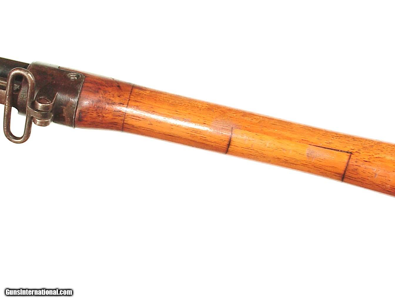 Description: .303 caliber, 21" barrel fitted for the 1888 sword bayonet. Receiver ring marked "V.R." under the crown "ENFIELD/1900/L.E.C./I*" Birmingham proofs on the barrel and receiver. In superb condition retaining nearly all of the blue, excellent wood, all matching. Excellent sharp bore. This carbine conforms exactly to the specifications found in Skinerton, {THE LEE ENFIELD STORY} page 391. Accompanied by it's 1888 pattern sword bayonet. SOLD Antique: Yes |