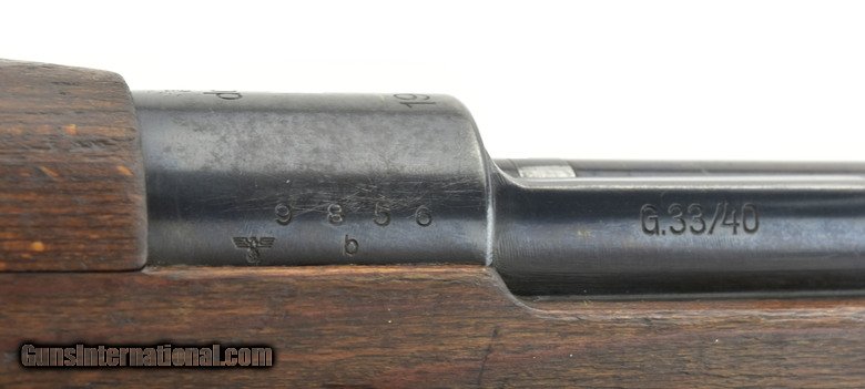Description: Brunn Dot Code G33/40 8mm caliber rifle. Desirable WWII German “mountain carbine”. Receiver is dated 1942. Floor plate is marked “Germany”. Serial numbers are matching. Bore is excellent. Very good overall condition.