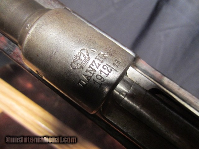 Description: DANZIG GEW 98 CALIBER 8MM. RECEIVER DATE 1912/15 ALL MATCHING PARTS EXCEPT FLOOR PLATE. STOCK,BUTT PLATE ,BOLT ASSY BARREL BANDS, FLOOR PLATE ASSY ALL MATCH. STOCK MAY HAVE HAD FINISH ADDED, SERIAL NUMBER ON WOOD AND PROOFS VISIBLE. BORE EXCELLENT. NEED MORE INFORMATION ALWAYS BEST TO CALL OUR OFFICE 716-941-3946 SOLD Curio/Relic: Yes |
