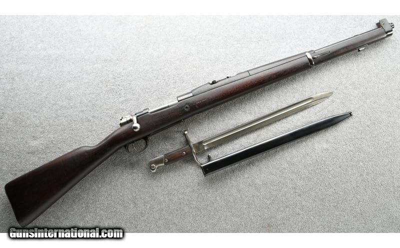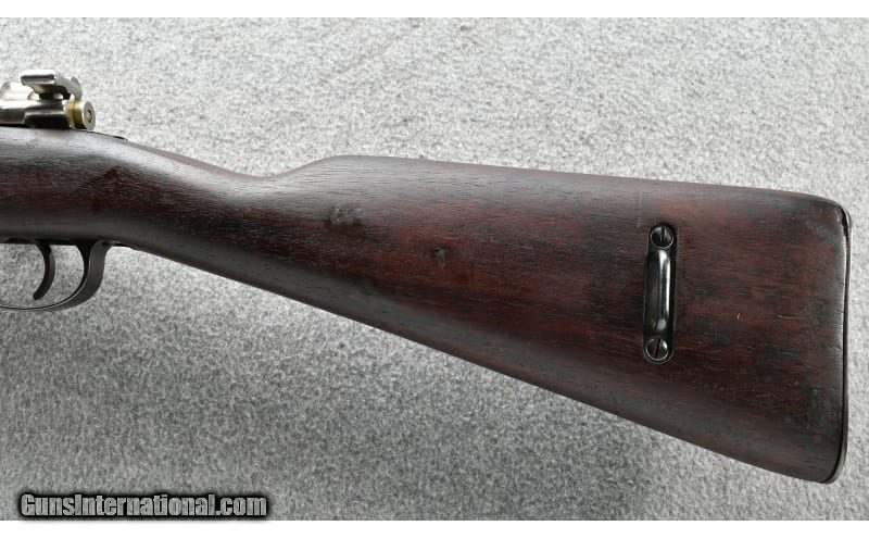 Description: The Argentine 1909 Cavalry Carbine is a shortened variant of the rifle 7.65x53mm Mauser SOLD Curio/Relic: Yes Chambers: 7.65x53 Argentine Mauser in a five round box magazine bolt action rifle Metal Condition: "Good, shows light use Wood Condition: Good with some light marks Bore Condition: Sharp rifling and bright bore Barrels: 22.25" Carbine Triggers: Single Stock Dimensions: 13.25" LOP Fore End: "Full length walnut with upper handguard, sling swivel and bayonet lug Butt Pad: Metal Weight: 8 lbs. 6 oz. Sights: "Protected post front, tangent leaf rear Item Location: Grand Junction, CO |