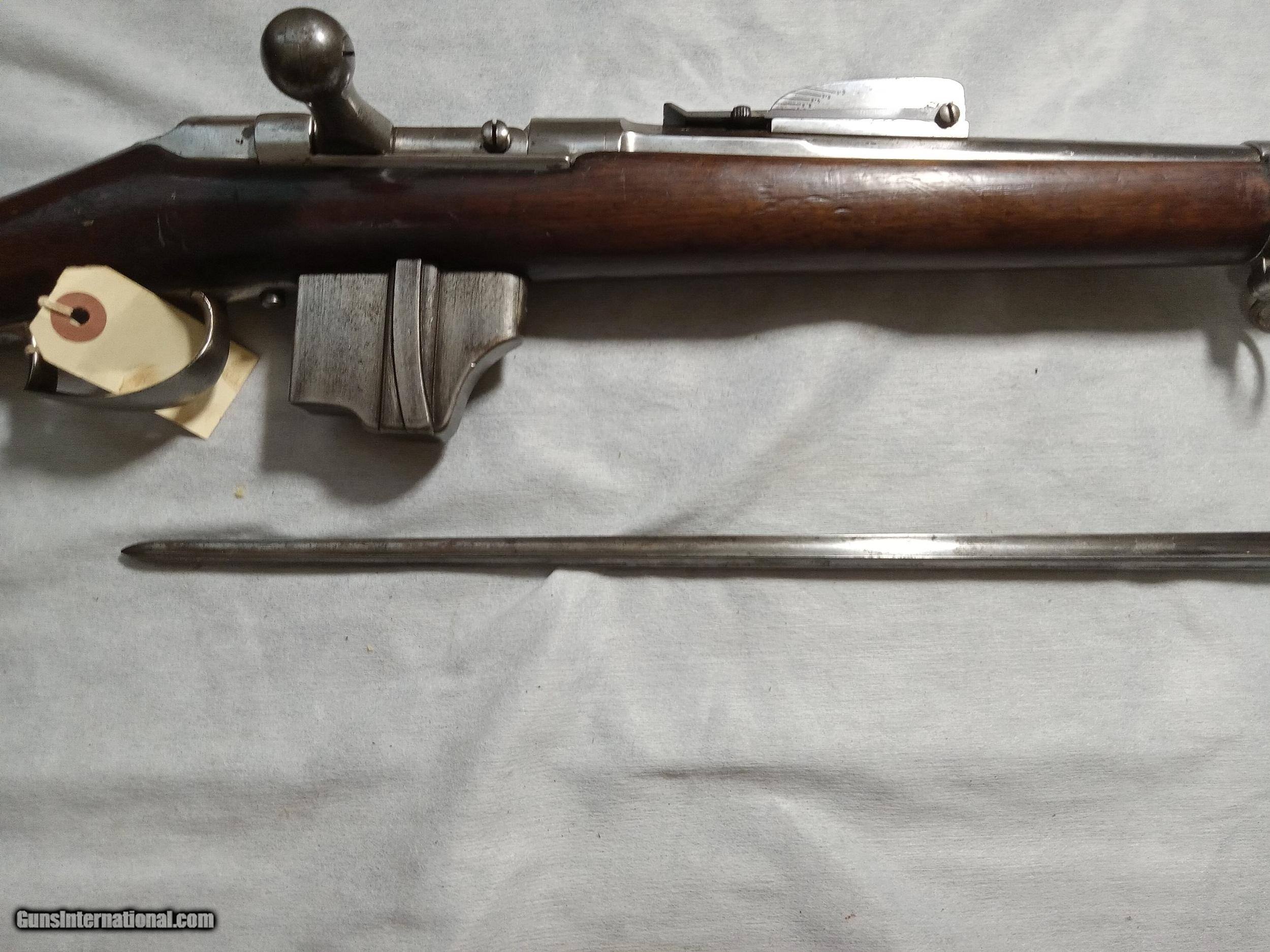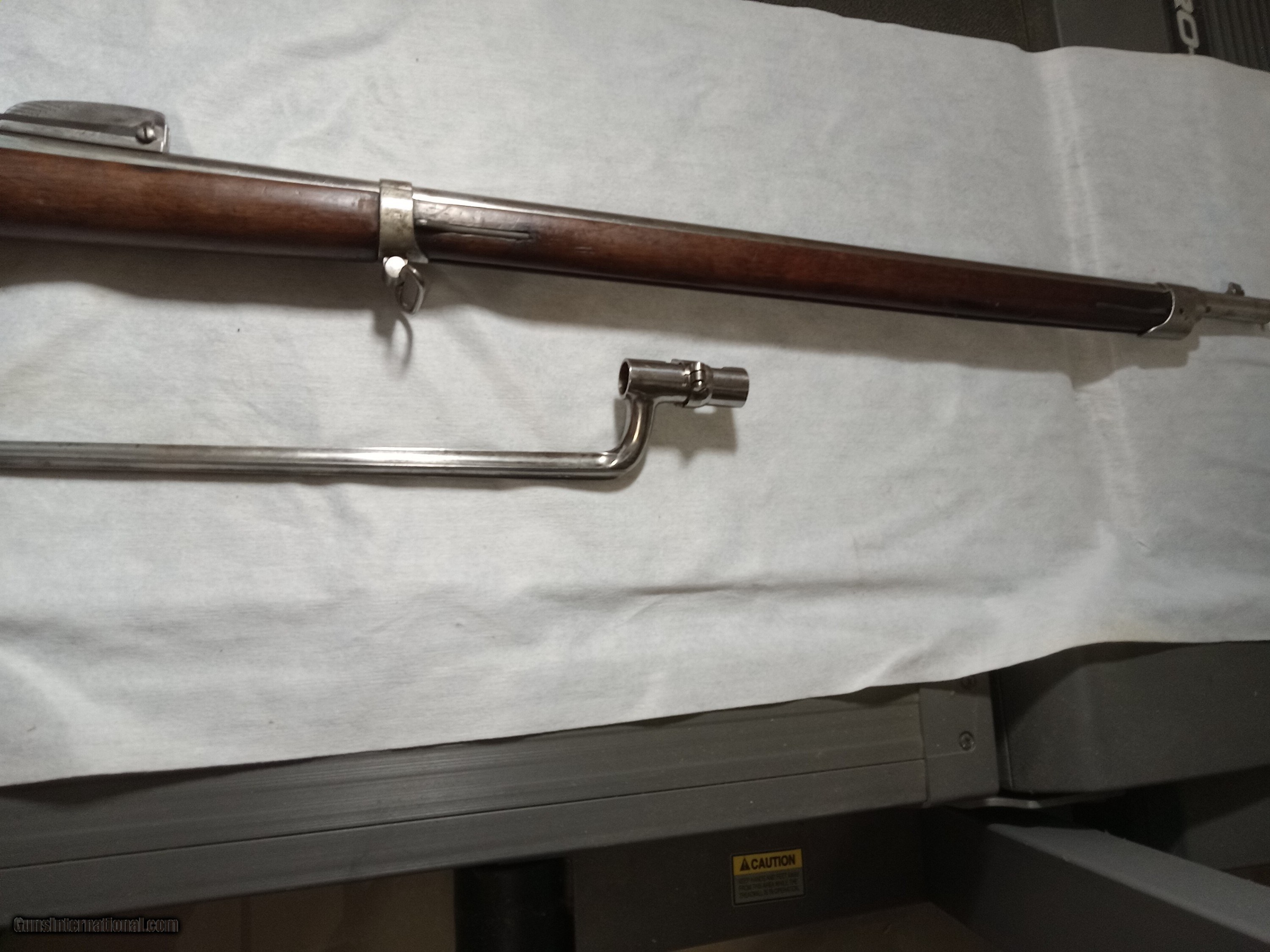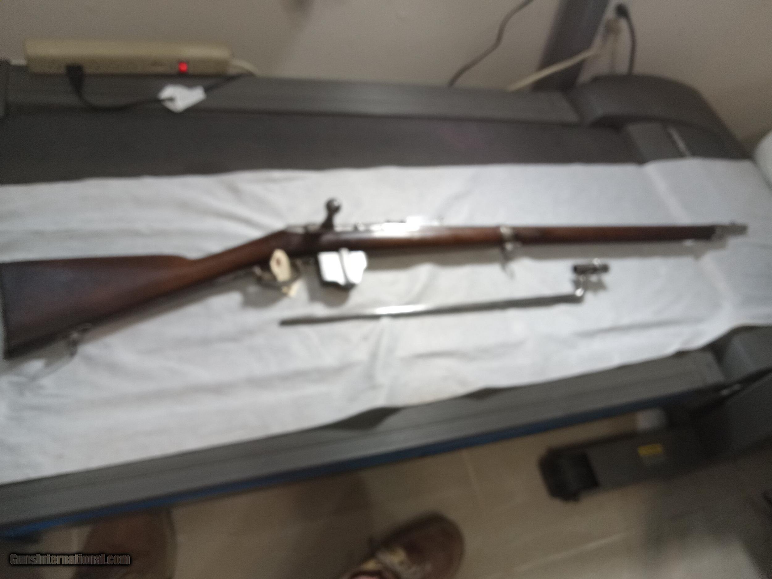 Description: dutch beaumont 1871/88 bore is excellent 11.4 mm very good wood shows to cartouches w/ bayonet 990.00 SOLD |
