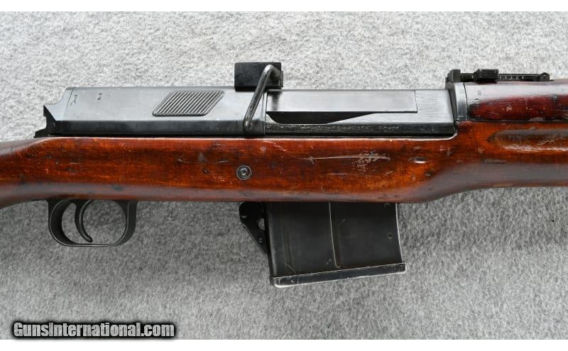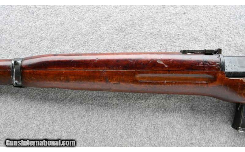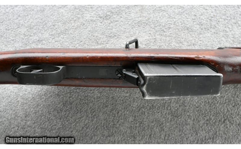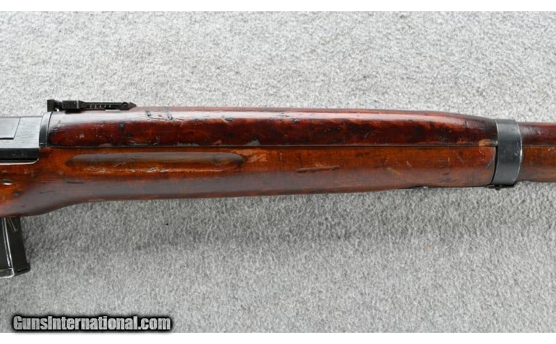 Description: After WWII, Sweden sold their Ljungman AG42B tooling and rights of manufacture to Egypt. Egypt, in turn designed and built the Hakim chambered in 8 mm Mauser, as they had a surplus of that ammunition. The Hakim has an adjustable gas port to cope with various types of 8 mm ammunition. This rifle appears in very good shape. 7.92x57mm SOLD Curio/Relic: Yes Chambers: 7.92x57 mm Mauser in a ten round detachable box magazine semi-automatic rifle Metal Condition: Good with some blue wear at the edges Wood Condition: "Fair, showing various dents and scratches through the finish Bore Condition: Bright and sharp Barrels: 25.1" with Muzzle brake Triggers: Single two stage military Stock Dimensions: 13.25" LOP Fore End: "Full length hardwood with grasping grooves, barrel band sling loop and bayonet lug Butt Pad: Stamped metal Weight: 10 Lbs. 4 Oz. Sights: "Hooded adjustable post front, Tangent leaf rear Item Location: Grand Junction, CO |