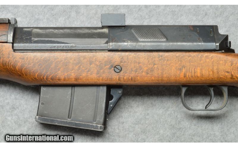 Description: Collecters take a look at this one. SOLD Curio/Relic: Yes Manufacturer: 1950-1960 Caliber Info: 8mm Mauser Chambers: Semi auto 10 round detachable magazine. Metal Condition: Good. Wood Condition: Two inch crack bottom of stock in front of mag well, one inch crack rear of mag well. Bore Condition: Good. Barrels: 26 inch rifled barrel. Triggers: Two stage trigger. Stock: Smooth wooden semi pistol grip stock. Stock Dimensions: 13 1/8 inch length of pull. Fore End: Smooth wooden fore-end is part of the stock. Butt Pad: Steel butt plate. Weight: 10 1/2 pounds. Sights: Blade front sight with a protective hood, rear battle sight adjustable for elevation. Markings are in Arabic. Item Location: Rapid City, SD |