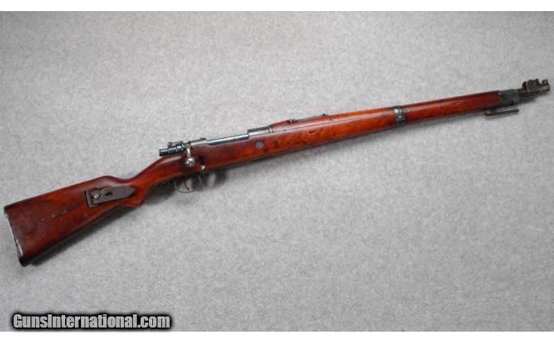 Description: Very nice for the period KAR 98. Chambered in 7.92x57, overall good condition. Wood has some oil soak and has numerous dings and dents. Metal parts are patinaed from age. SOLD Curio/Relic: Yes Caliber Info: 7.92x57mm. Chambers: Bolt action repeater. Metal Condition: Good, patinaed with age. Wood Condition: Good, numerous ding and dents. Some oil soakage. Bore Condition: Good, shiny. Barrels: 24", blued. Triggers: Single, blued. Stock: Wood, nearly full length. Stock Dimensions: 13" LOP. Fore End: Matching wood. Butt Pad: Factory metal butt plate. Weight: 8 lb. 12 oz. Sights: Factory iron sights. Extras: Muzzle cap. Item Location: Dundee, MI |