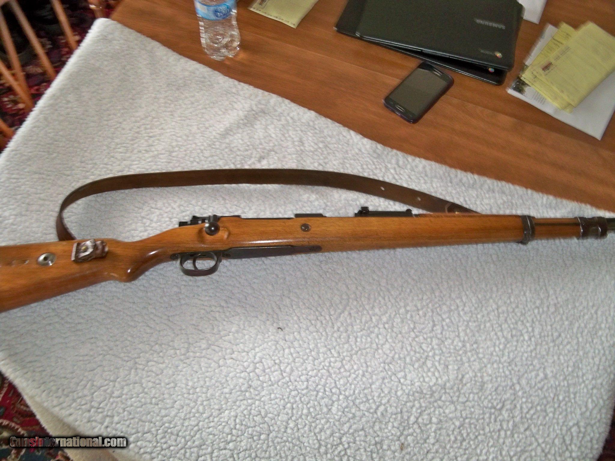 Description: A beautiful unmolested 100% original k98.It has all matching numbers,and original wood thats polished and stained solid walnut.Approx on;y 46,000 MFG.The bore on this is 100%.It also comes with the original sling.The trigger guard,bands,floor plate and follower are all milled.The Weimar eagles and waffwnamts are all very strong.The only thing I do not have is the 10" cleaning rods.This style rifle is one of the best made and looks about 95% or more condition.SHI $75 to your FFL or C&R.Call Pete at 518 4247039 SOLD Curio/Relic: Yes |