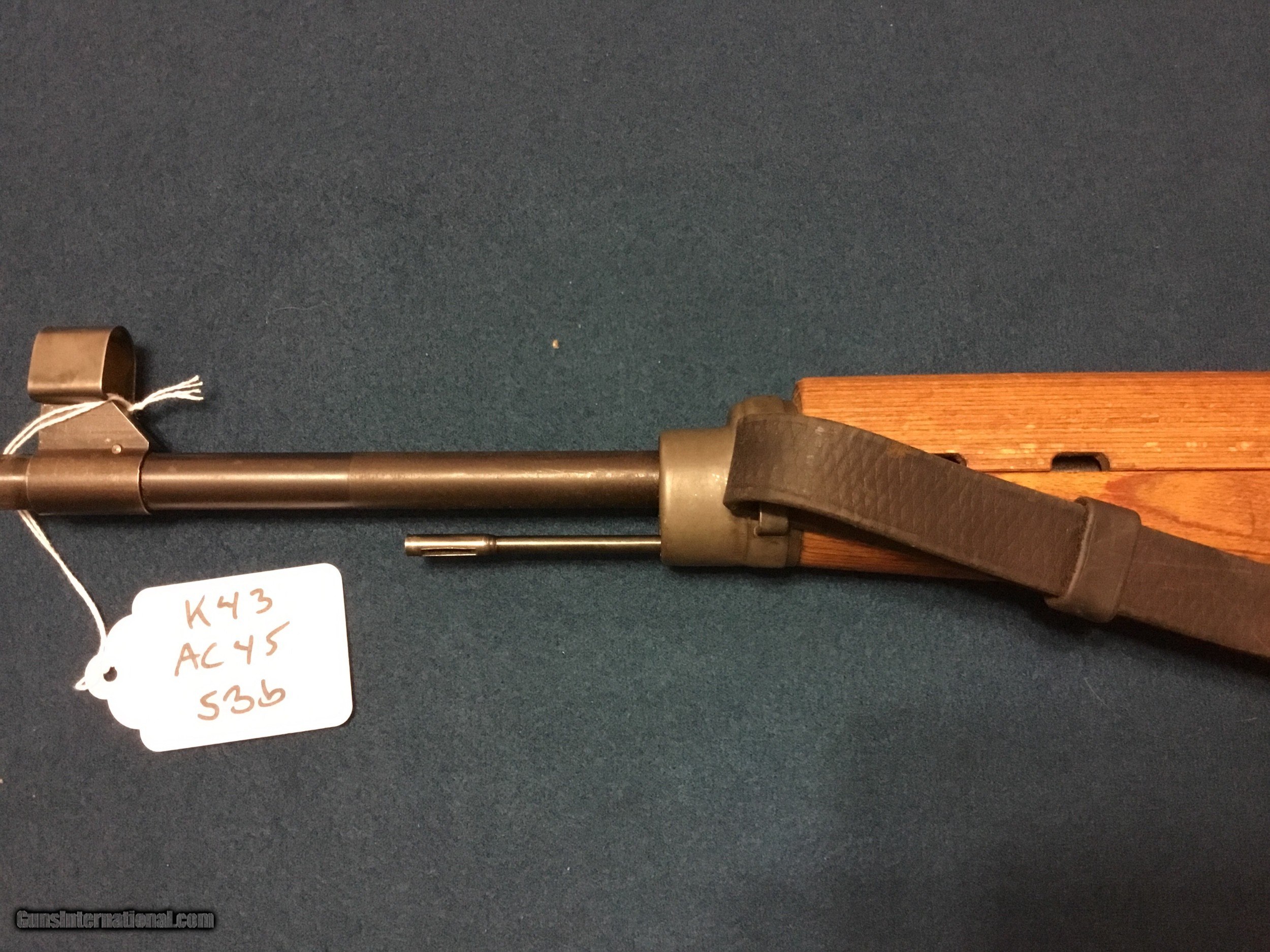 Description: Very good to excellent condition late war Walther ac45 dual lug K43 with a rare 2 digit serial number! All matching serial numbers, 53b. Beautiful late war stock with the rough finish. Phosphate metal finish. Bore and rifling are excellent. Period correct sling and an original magazine. I have not fired the gun but have chambered a round and it seats and ejects properly. No import marks. C&R FFL accepted. 3% for all credit cards. Personal checks will need to clear before shipment. Buyer pays actual UPS ground shipping and insurance also on returns. No California sales. Please email me if you have any questions and I will do my best to answer them. All firearms should be inspected by a qualified gunsmith before use. Thank you! Don’t miss out on an opportunity to own a rare piece of German WW2 history. SOLD Curio/Relic: Yes Manufacturer: Walther Model: K43 Serial Number: 53b Caliber Info: 8mm Condition: Very good Metal Condition: Very good Wood Condition: Very good |