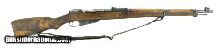Finnish M39 7.62x54R caliber rifle. Desirable Finnish Nagant rifle made in 1944. Bolt is matching. Bore is excellent. Wood has an arsenal repair on upper forearm wood. Comes with sling. Very good overall condition.