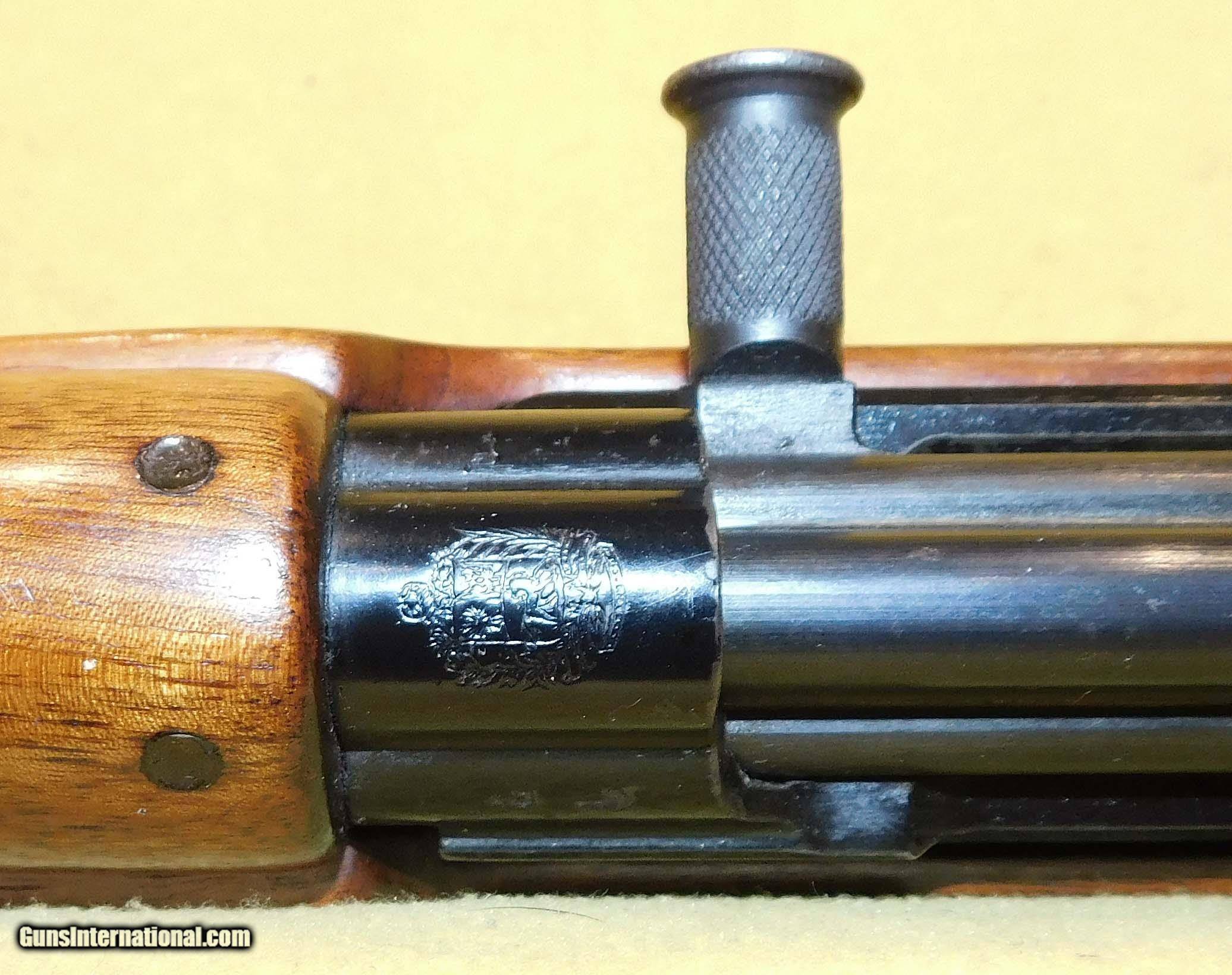 Description: FN (VENEZUELEN) SAFN-49 IN 7MM MAUSER CAL., WITH 22" BARREL. COLOR BLACK. CONDITION 97%. SERIAL NUMBER 7041. FN MODEL SAFN 49 (VENISWALIN) IN 7X57 MAUSER, MIRROR BORE, WOOD EXCELLENT, SCREW ON FLASH HIDER, THE SERIAL NUMBER 7041 SUGGESTS THIS CAME IN A EARLY SHIPMENT, 97% OVERALL CONDITION, OUR STOCK # D5375 SOLD |