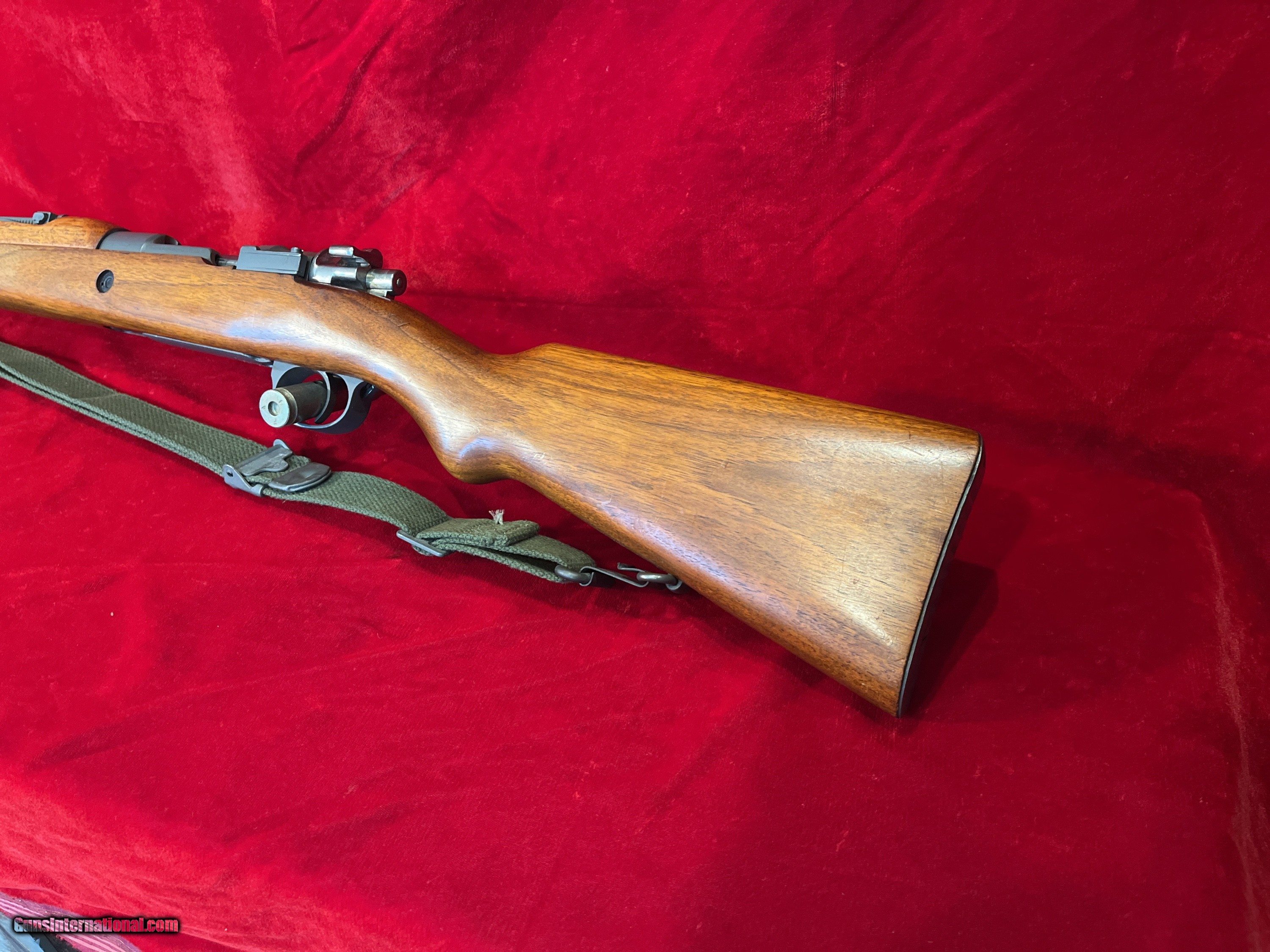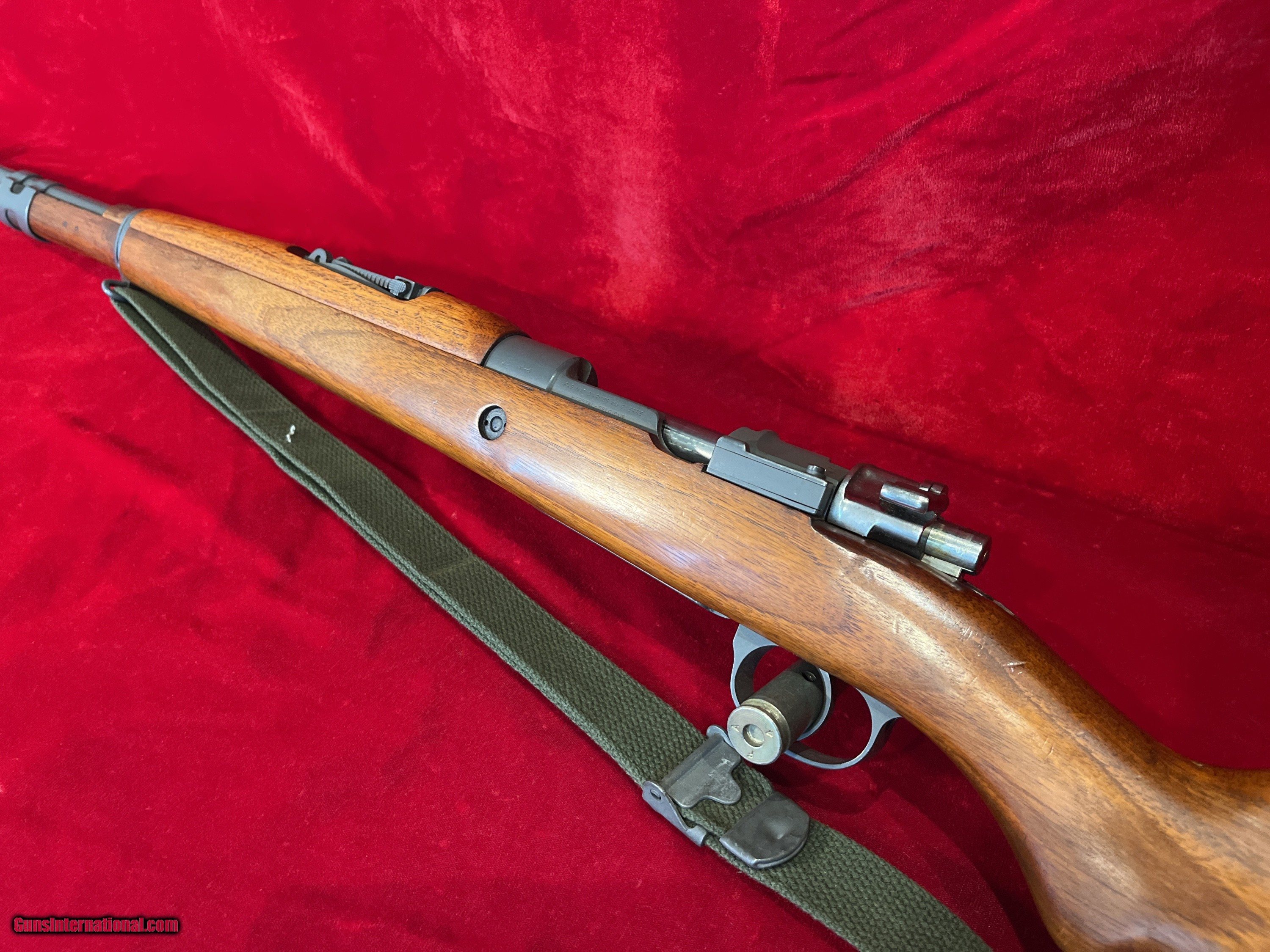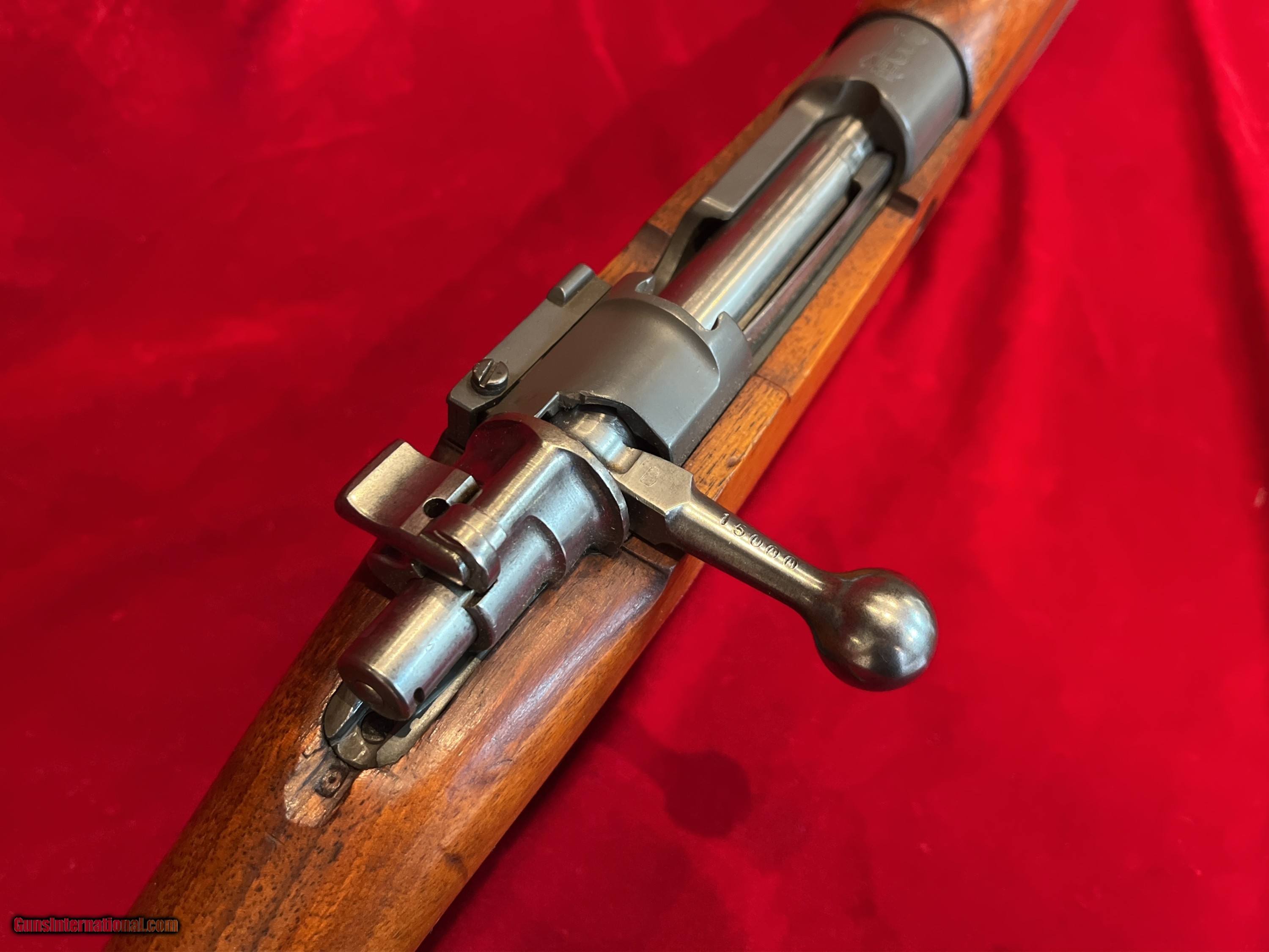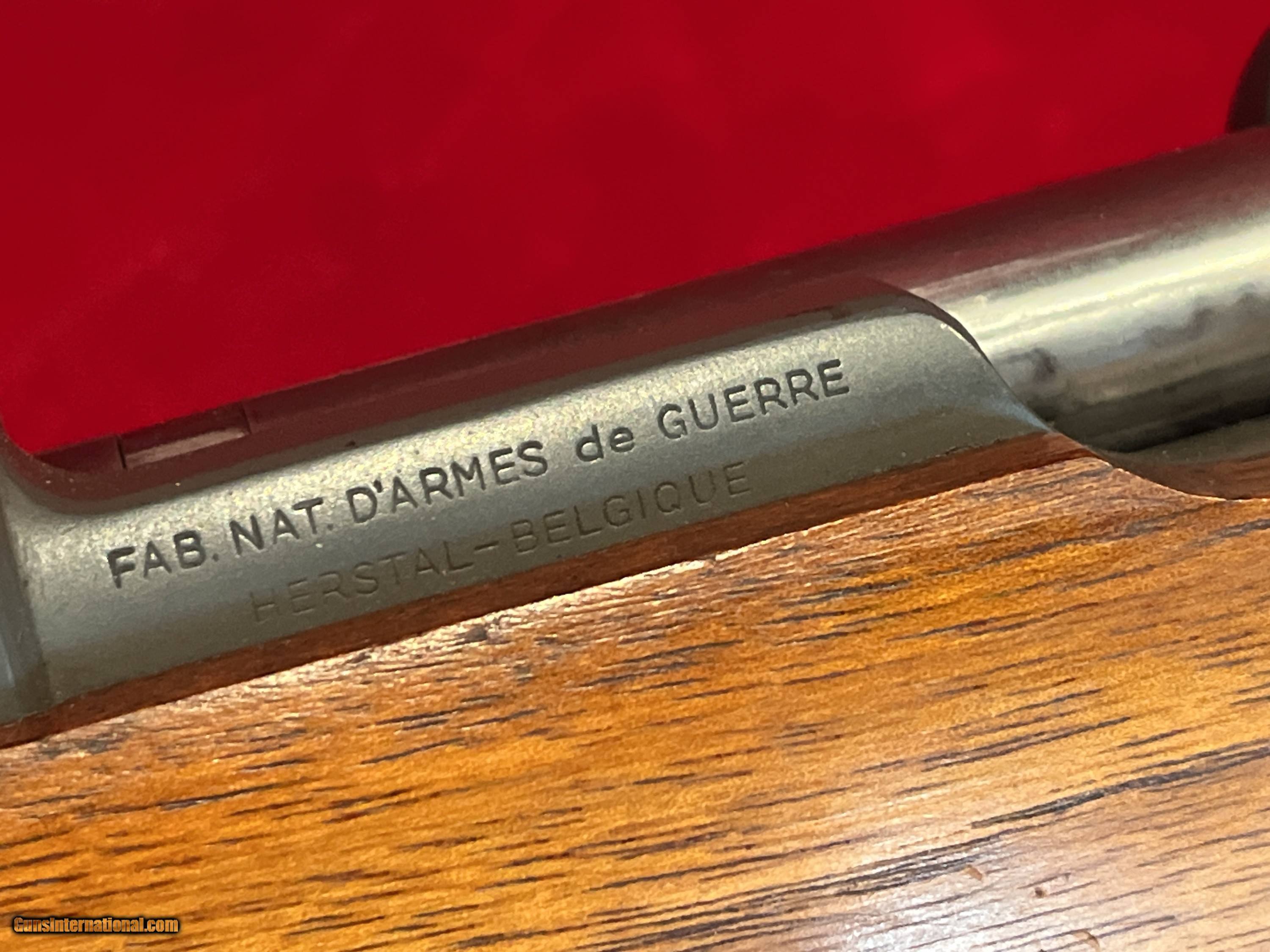 Description: FNH FABRIQUE NATIONALE ABL NAVY MAUSER MATCHING; ORIGINAL 30.06 (NOT CONVERTED) GORGEOUS WOOD GRAIN featured in A Vanderlinden's book Description: FNH FABRIQUE NATIONALE Mod 1952, Crown over "B"over ABL; King Baudouin crest on RECEIVER ring NAVY MAUSER, RARE, ORIGINAL CORRECT Military configuration in 30.06 (NOT Converted; the only FN made in 30.06!!) parkerized with Fantastic wood grain; MATCHING Receiver, Bolt and Wood Stock; This model is featured in FN Mauser rifles (by Anthony Vanderlinden). Less than 24,000 made! MUST SEE!!!. Superb, rare example made for the NAVY, of the beautiful FN ABL 1952 (on the receiver) Short Mauser Rifle 23'' barrel, supplied to Belgium in cal 30.06 with the factory machined notch in the receiver ring. The Belgian Navy used far less rifles than any other branches. Condition: Excellent quality and craftsmanship made by FNH. From my personal collection. Crisp markings; on the left side of the receiver " FAB. NAT. D'ARMES de GUERRE HESTAL-BELGIQUE" , Perron proof "s" inspector mark for Charles Daenen (19552-68), right side SN and the Crown B ABL 1952 on the receiver ring. This is a superb example; MATCHING, ORIGINAL, CORRECT MILITARY CONFIGURATION. A very clean gun without pitting, MATCHING numbered bolt handle 15000 (hard to find matching bolt handle); straight bolt is in the white as it is proper for this variant with a clean face with NO pitting, NO rings around the firing pin hole, with the proper proof markings, the lion "PV" stand for "Poudre Vive" (smokeless powder) meaning that it withstood excess pressure without deformation and the "Perron proof" as the final inspection. Ribbed buttplate in great condition. All metal in the same condition with the only slight scratches-handling marks. No cleaning rod present. NO import marking observed. The action is smooth and seem to be in good working order; cocks on close. Bore is smooth with strong rifling. The MATCHING numbered Wood Buttstock 15000 has an Outstanding grain and beautiful wood; it is solid, excellent condition with NO CRACKS, with a few scattered dings, scuffs, scratches-handling marks. The matching handguard is in great shape with a very few scattered minimal bruises, scratches-handling marks. It will take the M1903 30.06 stripper clips. Book pictures for reference only. Overall a very fine example of a well crafted FNH Crown B, ABL 1952, made Short rifle, MATCHING, parkerized, ORIGINALLY in 30.06 (less than 24,000 made) for the Belgian NAVY with a GORGEOUS wood grain. This would make a fine addition to your Mauser Collection!!! Shipping is 60 for UPS Ground with tracking. To purchase this firearm simply send me a message via GI with your contact info. I will respond via e-mail with all the information required to complete the purchase. If you must contact me via phone, please text. Keep in mind I am on the West coast and if you call me at 5AM before I've had my coffee we will be off to a rough start. I am an FFL. I will provide my FFL with the shipped item. Total price is sales price plus shipping price. SOLD |