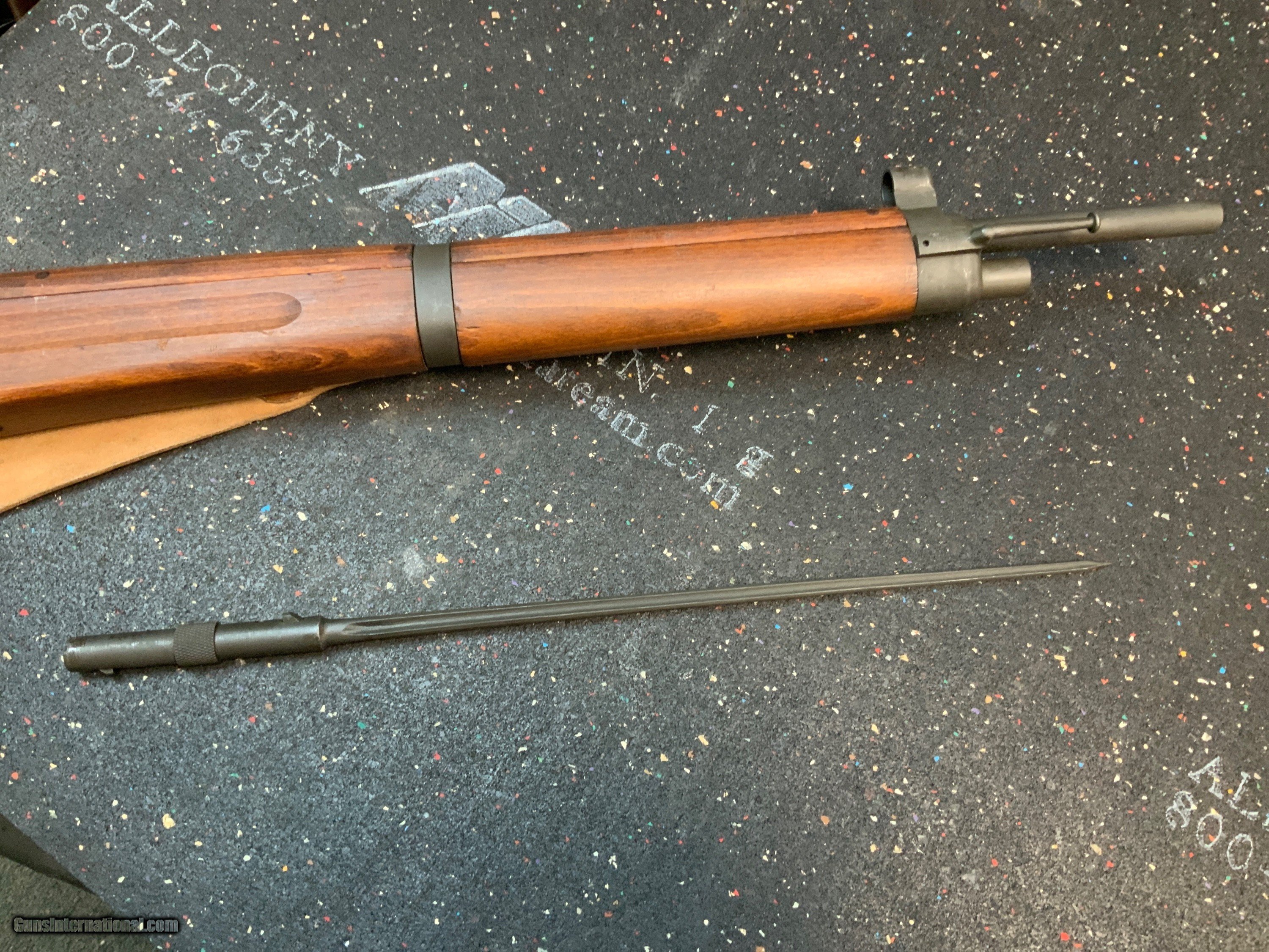 Description: MAS model 1936 bolt action rifle in 7.5 X 54 I assume. This rifle is minty and I would say unfired by the looks of the bolt face. Complete with bayonet and sling. If you are looking at this gun, you know more about it than I do. Pictures tell a story, and I will be glad to send more pictures if desired. French military rifle from WWII. Please add $60 for shipping and insurance to your FFL or C&R. SOLD Rifle Caliber: 7.5x54mm MAS Manufacturer: MAS Model: 1936 Condition: Excellent Metal Condition: Excellent Wood Condition: Excellent Bore Condition: Excellent Action: Bolt |