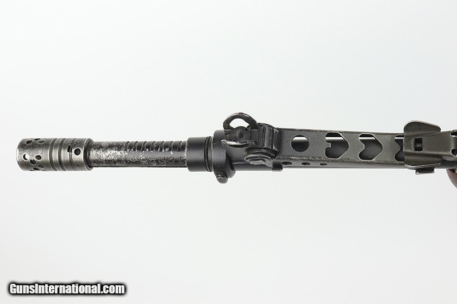 Description: This is a very nice example of a French military rifle known as the Model 1949-56 and produced by MAS, and includes an original mount/scope, spare magazine and scope case. The MAS 1949-56 is a reliable, accurate, easy to maintain semi-automatic rifle with a detachable 10-round magazine and a side rail designed to allow for attachable rifle scopes. The MAS 49-56 is the 1956 adaptation of the MAS-49, which was adopted as standard issue for the French army in 1949. The 49/56 improved upon the original model based on its usage in Algeria, Indochina, and the Suez Crisis. The 49/56 was made shorter and lighter, a knife bayonet was added, and the built in grenade launcher was altered to combine a compensator with a rifle grenade launcher that fired 22mm rifle grenades. The MAS-49/56 saw significantly more production than the original MAS-49 (275,240 versus 20,600) and saw action in French conflicts around the world until it was replaced by the FAMAS in 1979. This particular rifle is chambered for 7.5mm. It has original finish throughout and shows some general thinning in most areas, and some flaking of the finish on the barrel. Original sling is present and stock is in excellent condition with no major flaws. Light/small import mark on right side of receiver. Minty bore. The listing includes the sniper scope with mount, as well as the case. SOLD Curio/Relic: Yes Rifle Caliber: 7.5x54mm MAS |